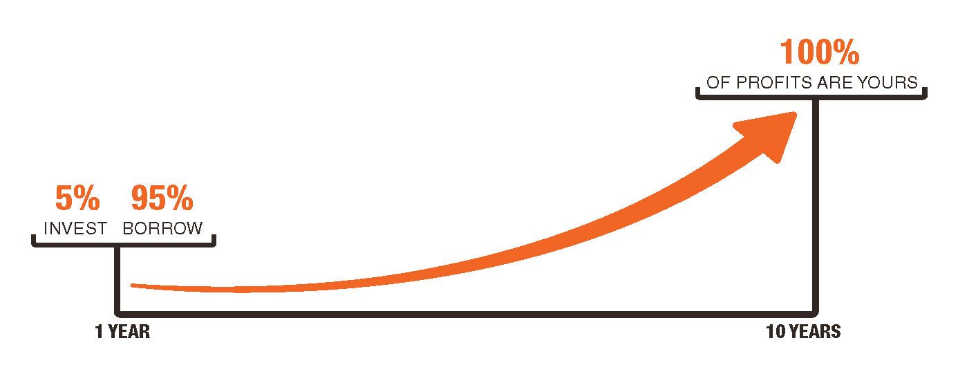 If you buy a home for $500,000 and invest 5% down, you’ve spent $25,000. If you work with a preferred lender, you can borrow 95% of the price to purchase, but keep all the profits when you sell.