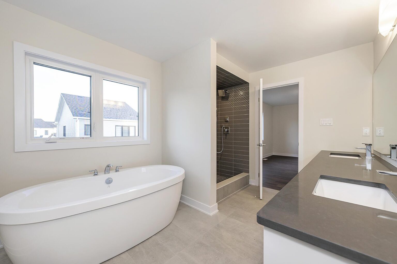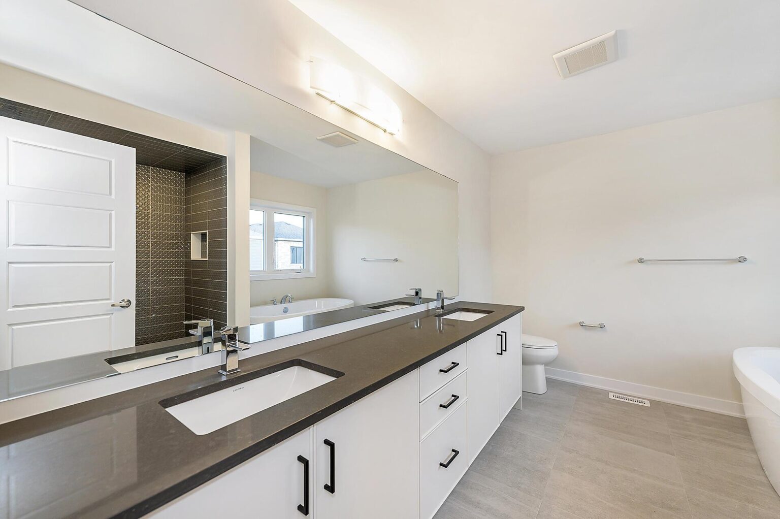 - Bathrooms: Shower potlight in ensuite 2, double vanity sink in ensuite 1, freestanding tub in ensuite, quartz countertop, cabinets and hardware in ensuite, ensuite 2, ensuite 3