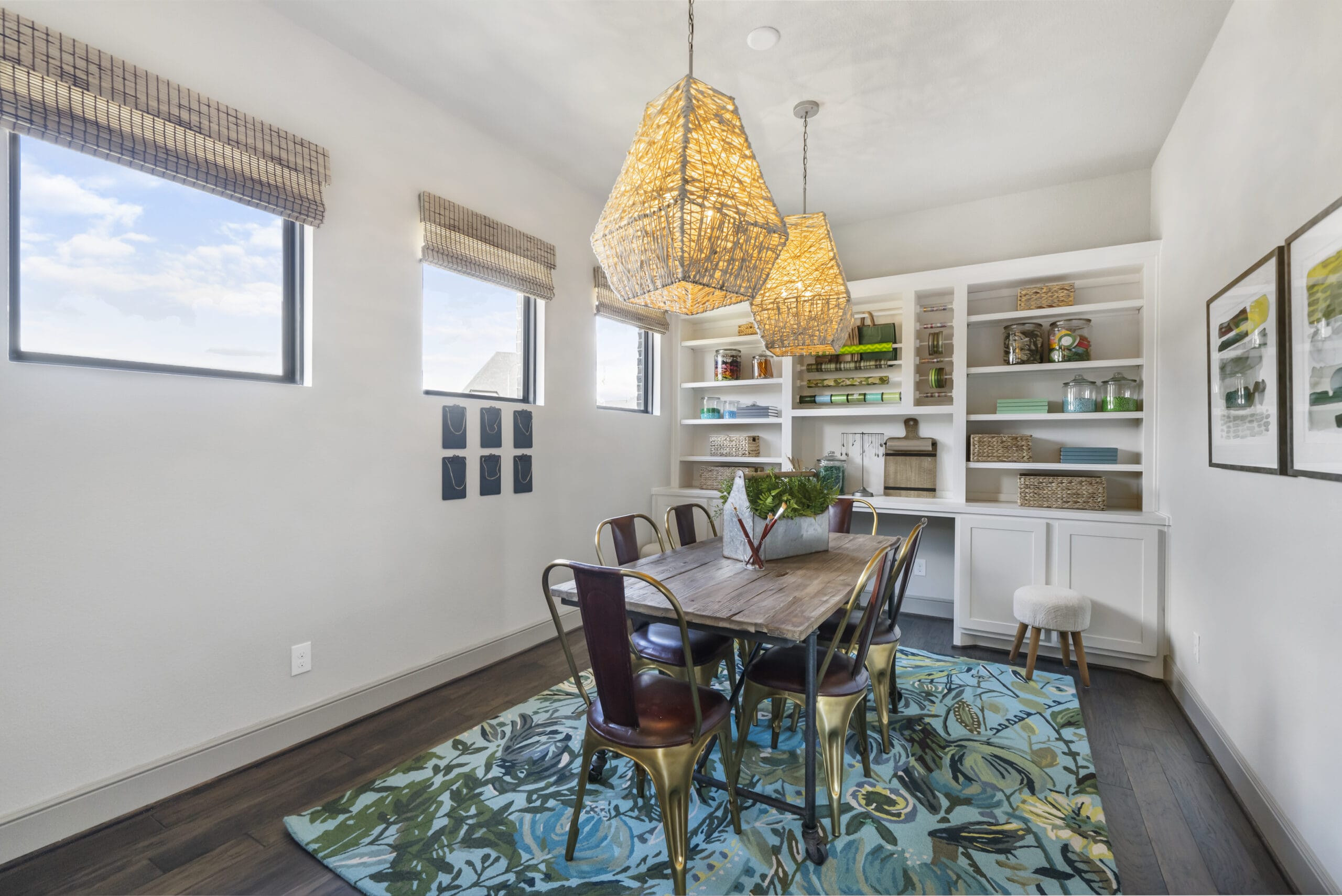 Give your kids their own designated place to complete homework, paint or draw with desks that are built into or resting against the wall. Place a round table in the middle of the room with a few seats around to encourage collaboration when family projects are underway or when board games are being played. Additional storage can be found underneath the bench where kids can read all afternoon, or along the floating shelves around the room.