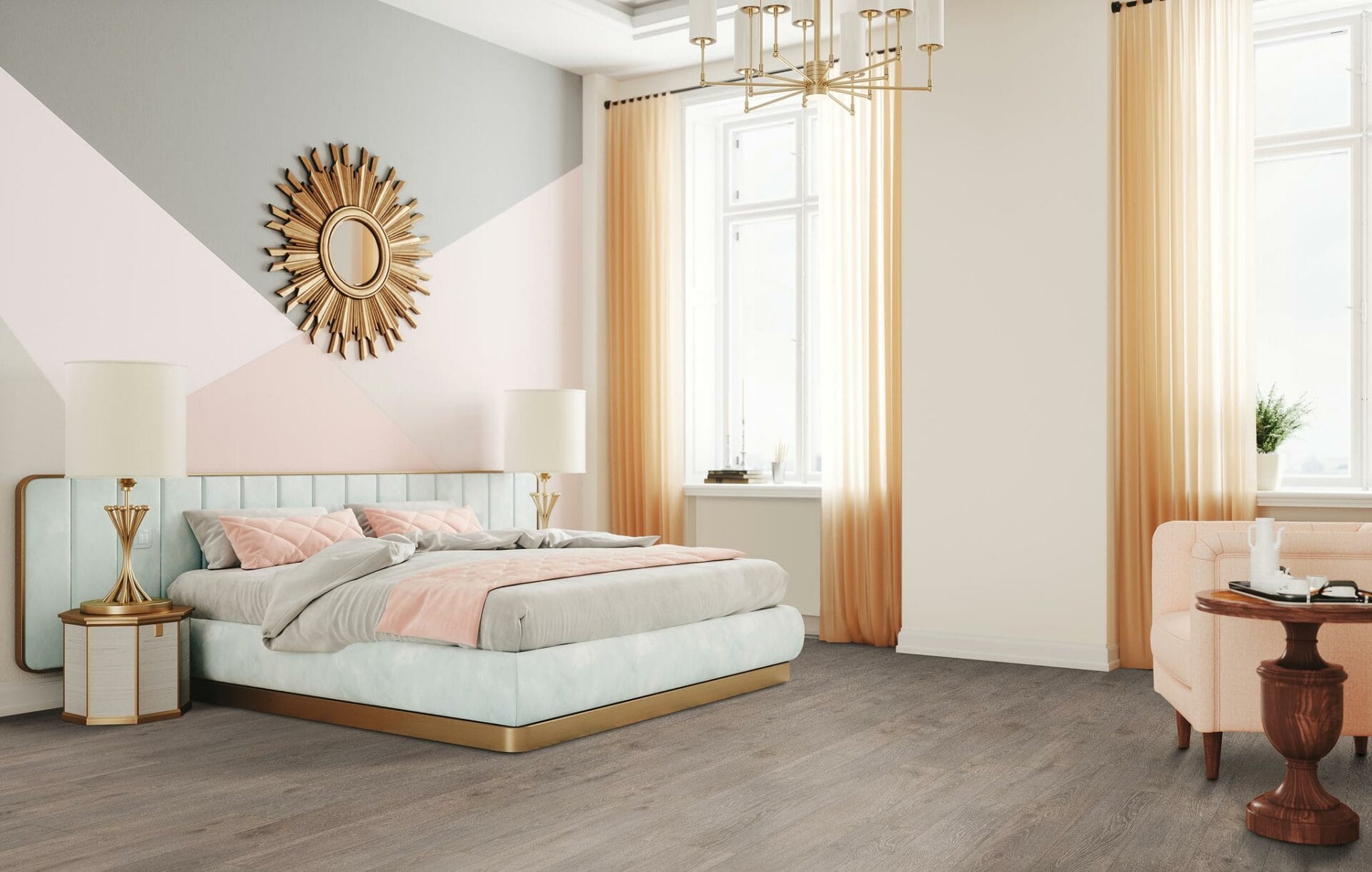 There are a plethora of options when it comes to laminate flooring, and the offerings from TORLYS are no exception. Their collection of laminates includes a wide range of grains that are hard to distinguish from hardwood. Laminate flooring will give you the look you want without breaking your budget, and includes features that top those of hardwood. But its capabilities don’t just stop there — in addition to mimicking hardwood, it can also take on the look of stone tiles. Opt for brushed or hand-scraped textures, finishes like glossy or matte, and choose various plank sizes too. “If you choose a more exotic looking floor with lots of detail, wider planks will highlight its unique features,” says Cam Bowen, VP Sales, Builder & Hospitality, North America at TORLYS. And for wood grains that are subtle? “Choose narrower boards,” he says.