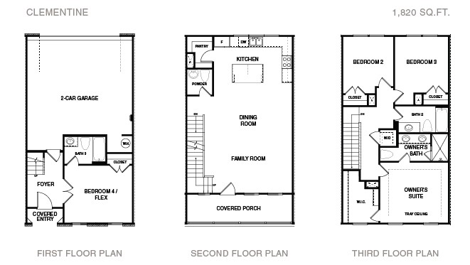 Step into the Clementine floor plan, a residence that combines spaciousness with modern design. Boasting 4 bedrooms and 3.5 baths, this home features an expansive open-concept layout, with a generously sized kitchen and a large island at its heart. The lower level welcomes you with an inviting entry foyer and a bedroom with an attached full bathroom, providing both accessibility and comfort. The main floor is designed for entertainment, showcasing a covered porch accessible from the family room and kitchen, creating an ideal space for gatherings. The top floor is dedicated to privacy, housing a primary suite with its own bath. Additionally, two more bedrooms and another full bathroom ensure ample space for family or guests. Convenience is key with a 2-car side-by-side garage.