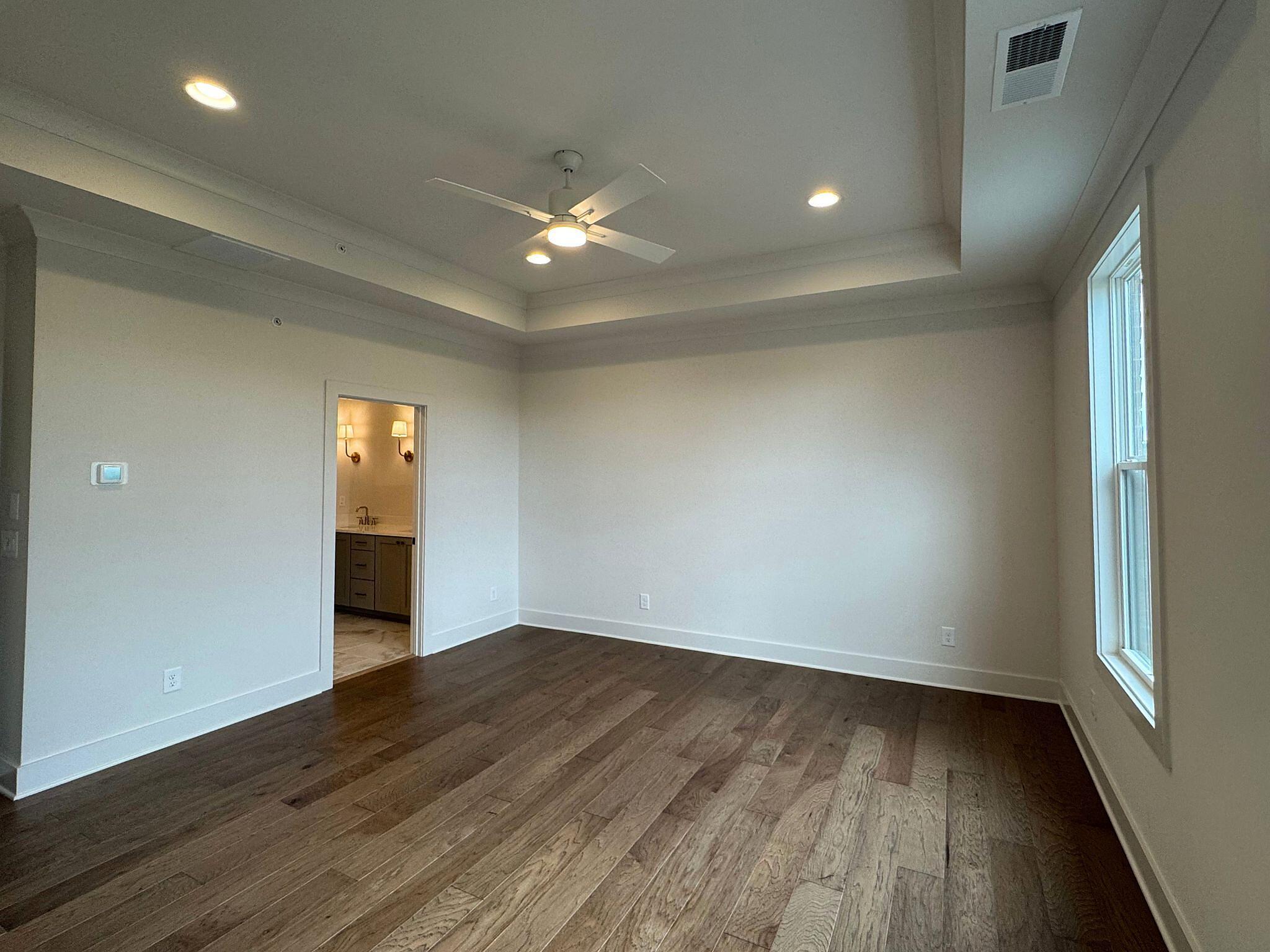 The Harleigh plan features amazing details with an abundance of space. This elevator-ready home opens its doors for so much creativity! The first floor features a bedroom perfect for an office or in-law suite with a full bath. The main floor features a spacious family room with fireplace opening out to your 2nd floor-covered porch overlooking the courtyard, an oversized island large enough to serve as a buffet, a chef’s kitchen with high-end stainless steel appliances, 42” stained/painted cabinets featuring soft close doors/drawers, walk-in pantry that’s alongside the butler’s pantry, the dining room is perfect for your oversized dining table, and a tech area perfect for your drop off station. The 3rd floor features a generous Primary Suite with a large walk-in custom-designed closet, a spacious bathroom with luxury tiles, large walk-in shower with bench, and a lavish soaking tub. There is a laundry room and 2 secondary bedrooms that share a full bath.