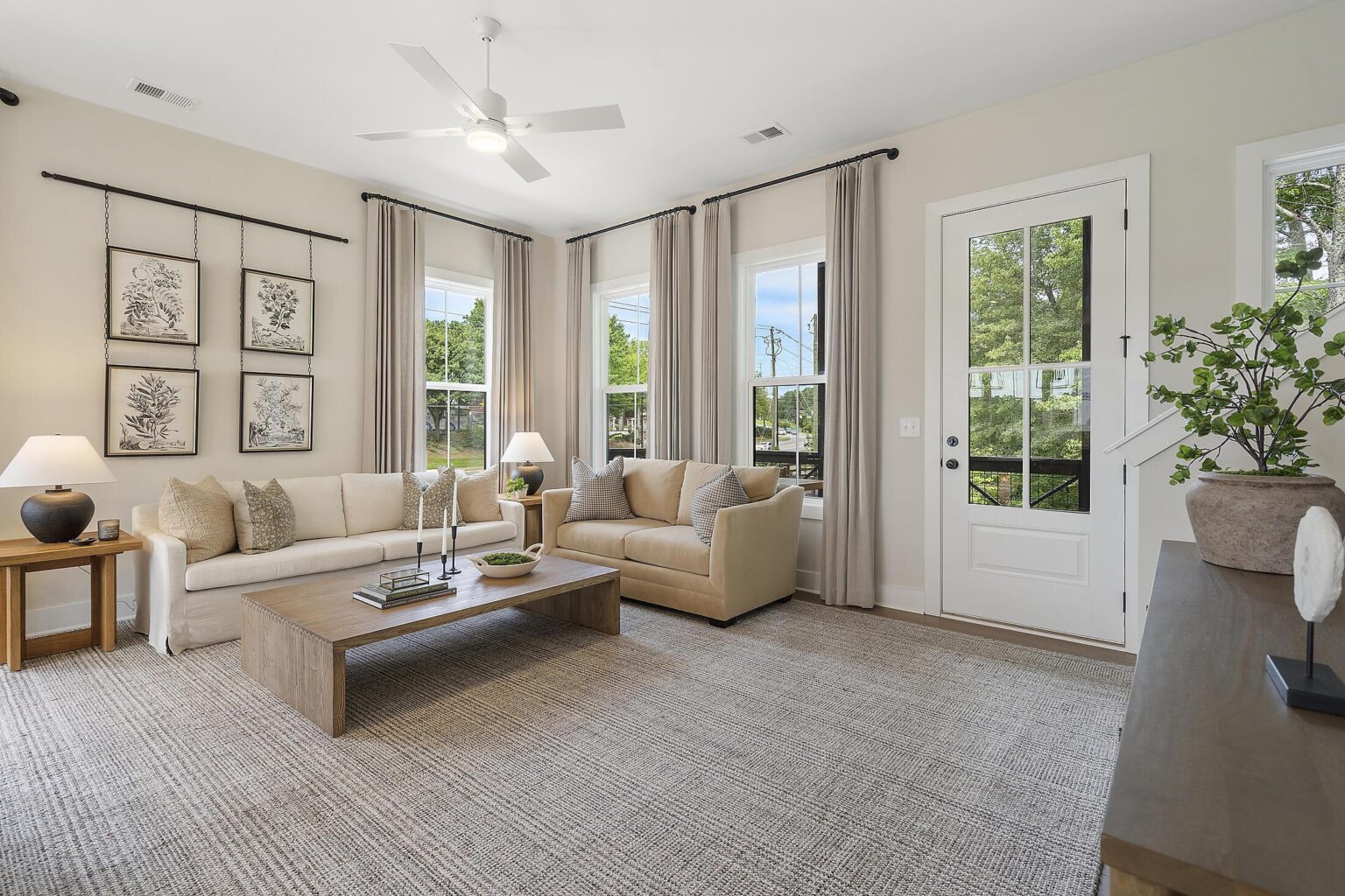 Step into the Clementine floor plan, a residence that combines spaciousness with modern design. Boasting 4 bedrooms and 3.5 baths, this home features an expansive open-concept layout, with a generously sized kitchen and a large island at its heart. The lower level welcomes you with an inviting entry foyer and a bedroom with an attached full bathroom, providing both accessibility and comfort. The main floor is designed for entertainment, showcasing a covered porch accessible from the family room and kitchen, creating an ideal space for gatherings. The top floor is dedicated to privacy, housing a primary suite with its own bath. Additionally, two more bedrooms and another full bathroom ensure ample space for family or guests. Convenience is key with a 2-car side-by-side garage.