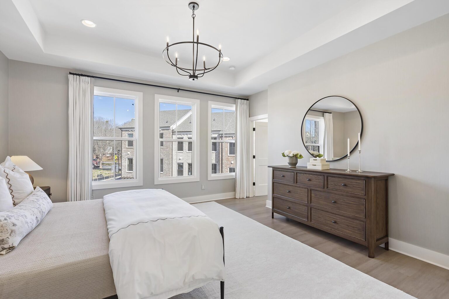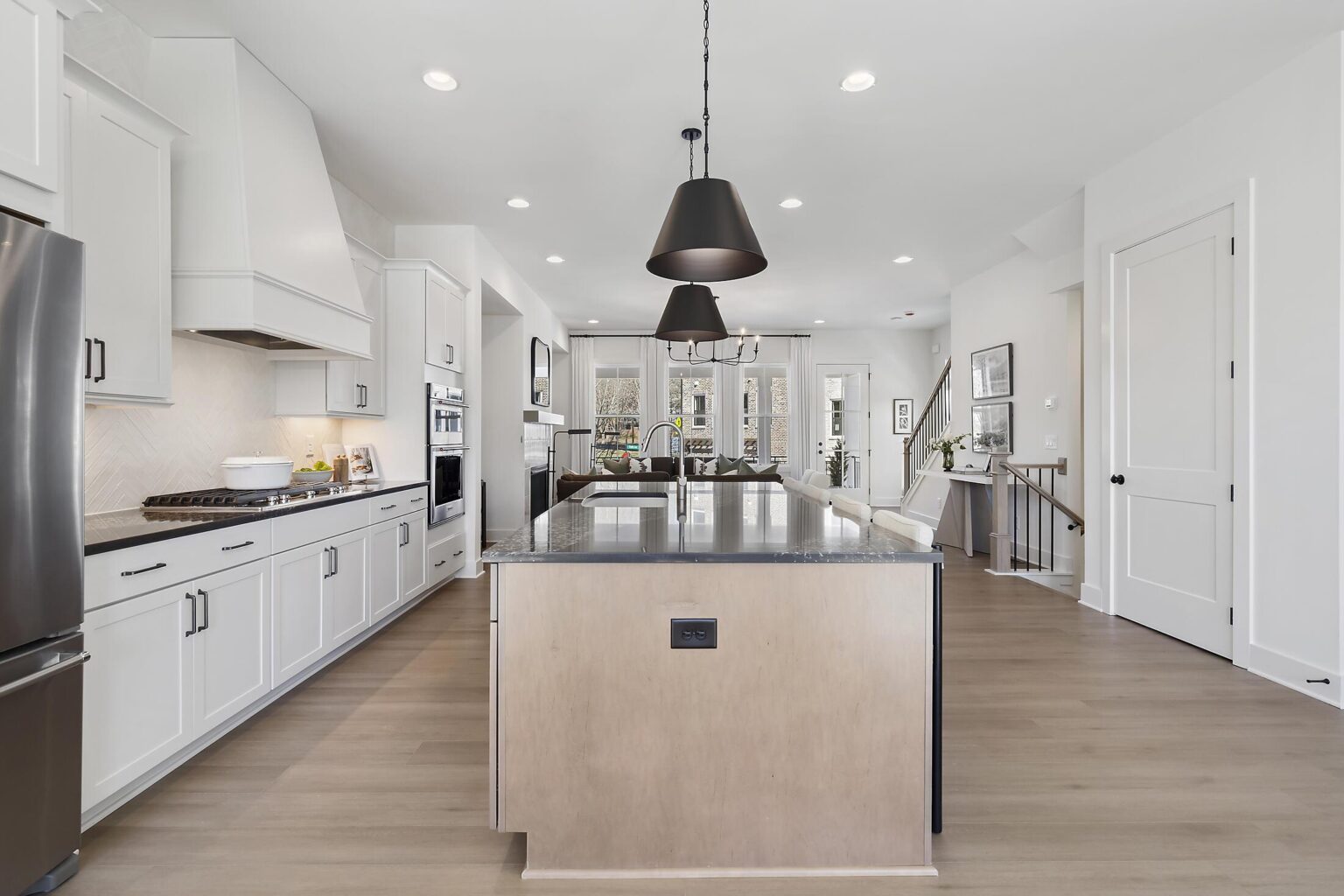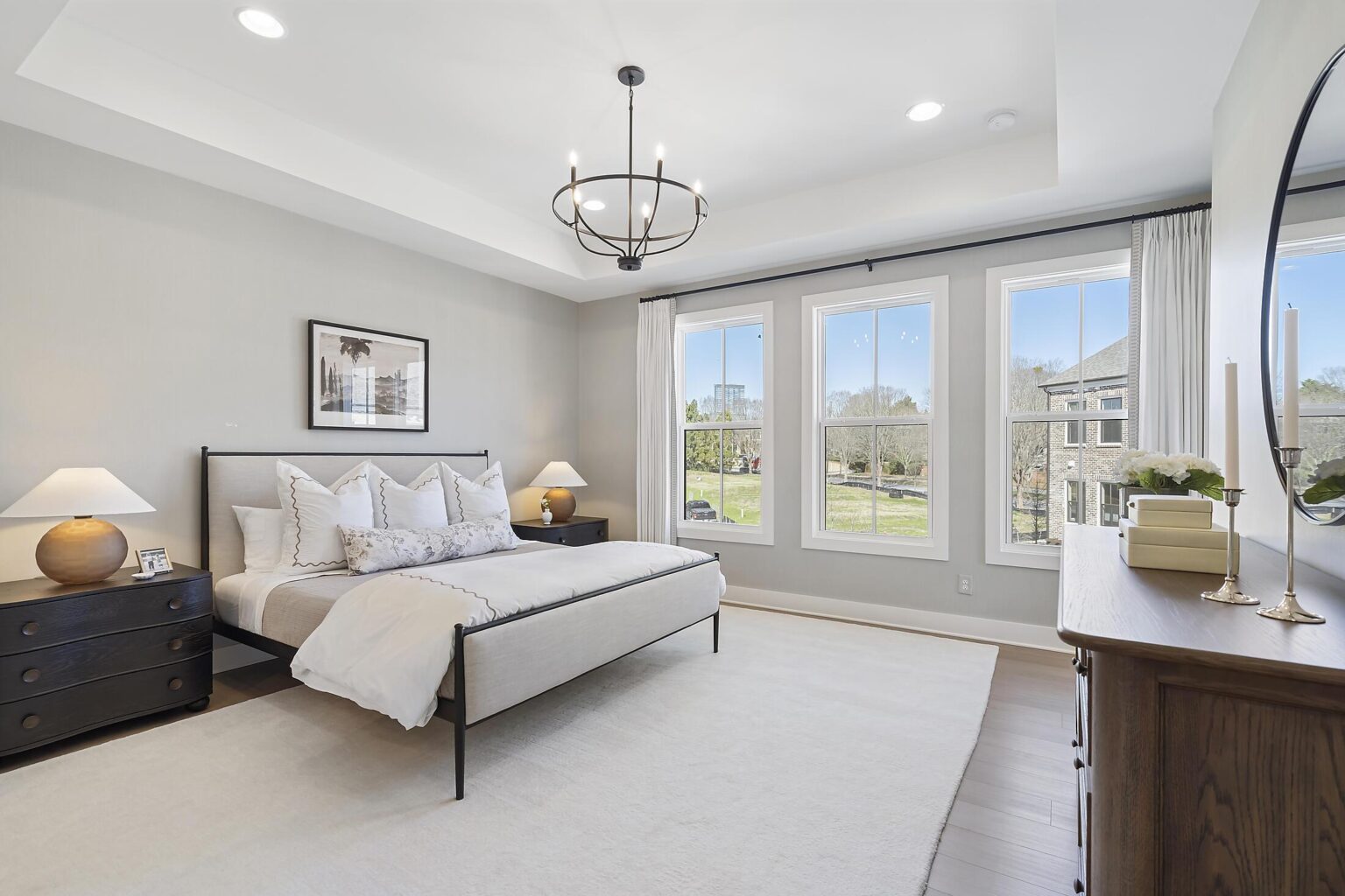 The Harleigh plan features amazing details with an abundance of space. This elevator-ready home opens its doors to so much creativity! The first floor features a bedroom perfect for an office or in-law suite with a full bath. The main floor features a spacious family room with fireplace opening out to your 2nd floor-covered porch overlooking the courtyard, an oversized island large enough to serve as a buffet, a chef’s kitchen with high-end stainless steel appliances, 42” stained/painted cabinets featuring soft close doors/drawers, walk-in pantry that’s alongside the butler’s pantry, the dining room is perfect for your oversized dining table, and a tech area perfect for your drop off station. The 3rd floor features a generous Primary Suite with a large walk-in custom-designed closet, a spacious bathroom with luxury tiles, large walk-in shower with bench, and a lavish soaking tub. There is a laundry room and 2 secondary bedrooms that share a full bath.