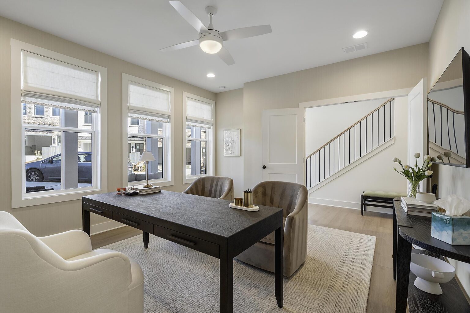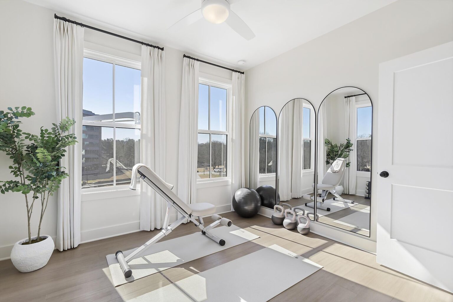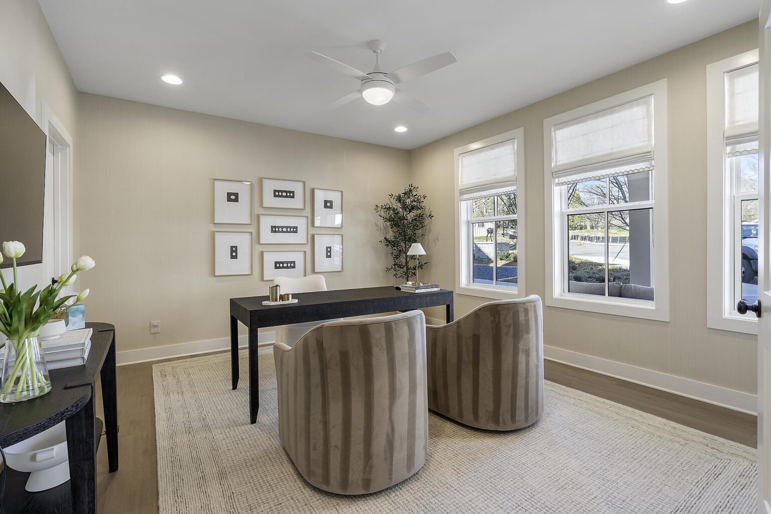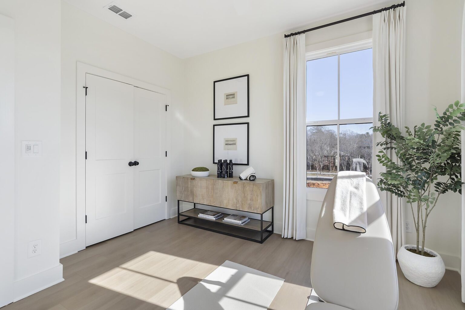 The Harleigh plan features amazing details with an abundance of space. This elevator-ready home opens its doors to so much creativity! The first floor features a bedroom perfect for an office or in-law suite with a full bath. The main floor features a spacious family room with fireplace opening out to your 2nd floor-covered porch overlooking the courtyard, an oversized island large enough to serve as a buffet, a chef’s kitchen with high-end stainless steel appliances, 42” stained/painted cabinets featuring soft close doors/drawers, walk-in pantry that’s alongside the butler’s pantry, the dining room is perfect for your oversized dining table, and a tech area perfect for your drop off station. The 3rd floor features a generous Primary Suite with a large walk-in custom-designed closet, a spacious bathroom with luxury tiles, large walk-in shower with bench, and a lavish soaking tub. There is a laundry room and 2 secondary bedrooms that share a full bath.
