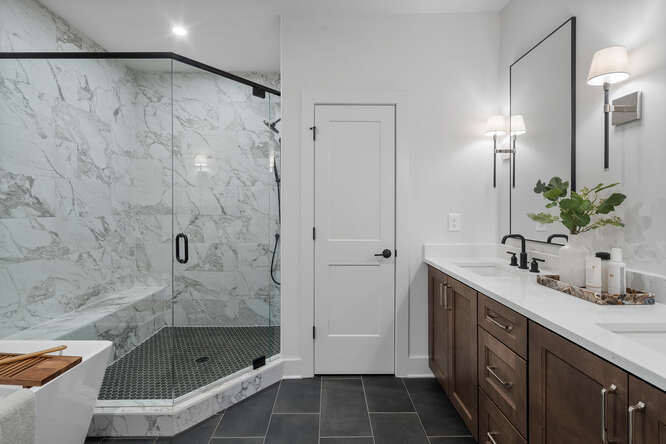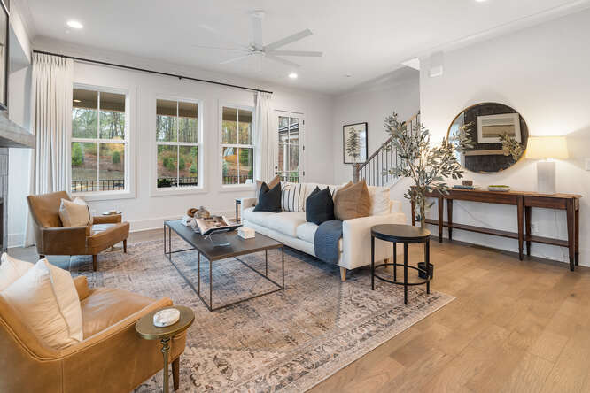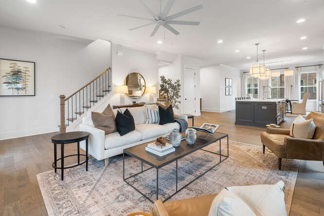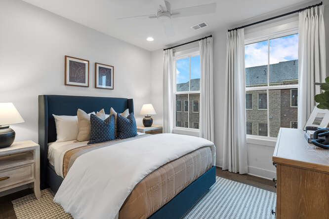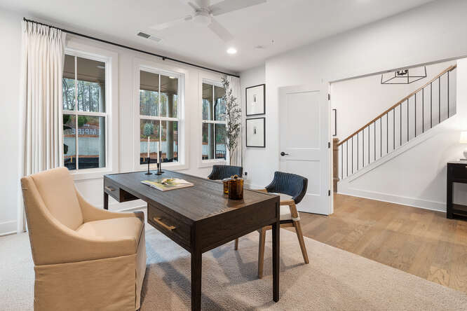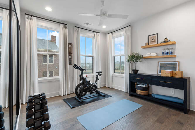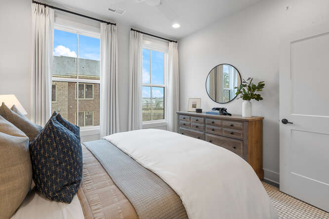 The Harleigh plan features amazing details with an abundance of space. This elevator-ready home opens its doors to so much creativity! The first floor features a bedroom perfect for an office or in-law suite with a full bath. The main floor features a spacious family room with fireplace opening out to your 2nd floor-covered porch overlooking the courtyard, an oversized island large enough to serve as a buffet, a chef’s kitchen with high-end stainless steel appliances, 42” stained/painted cabinets featuring soft close doors/drawers, walk-in pantry that’s alongside the butler’s pantry, the dining room is perfect for your oversized dining table, and a tech area perfect for your drop off station. The 3rd floor features a generous Primary Suite with a large walk-in custom-designed closet, a spacious bathroom with luxury tiles, large walk-in shower with bench, and a lavish soaking tub. There is a laundry room and 2 secondary bedrooms that share a full bath.