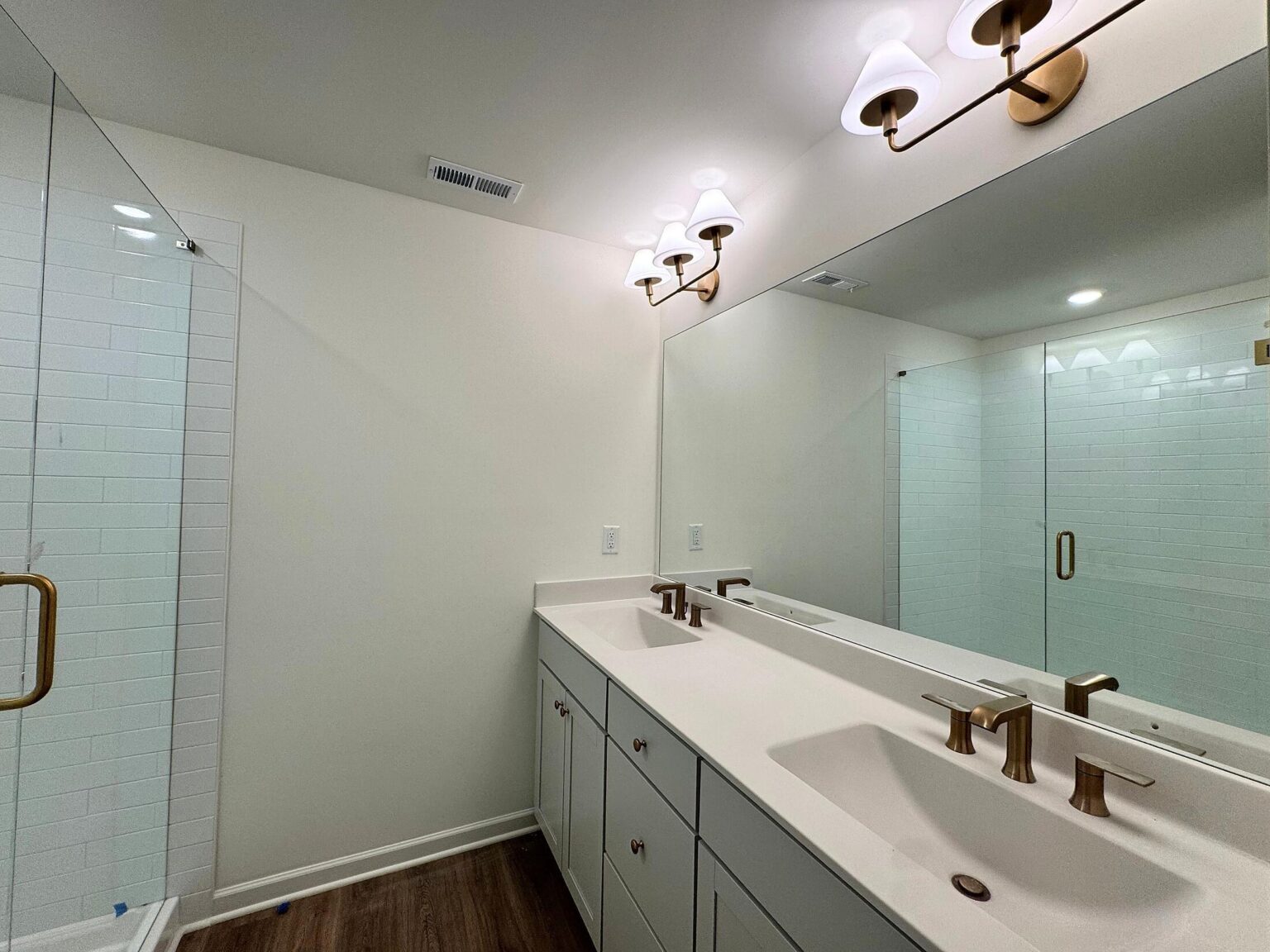 The third floor is home to the serene primary suite, boasting a walk-in closet and a spa-inspired ensuite with dual sinks and a walk-in shower. An additional bedroom with its own walk-in closet, a shared full bath, and a centrally located laundry area ensure everyday ease.