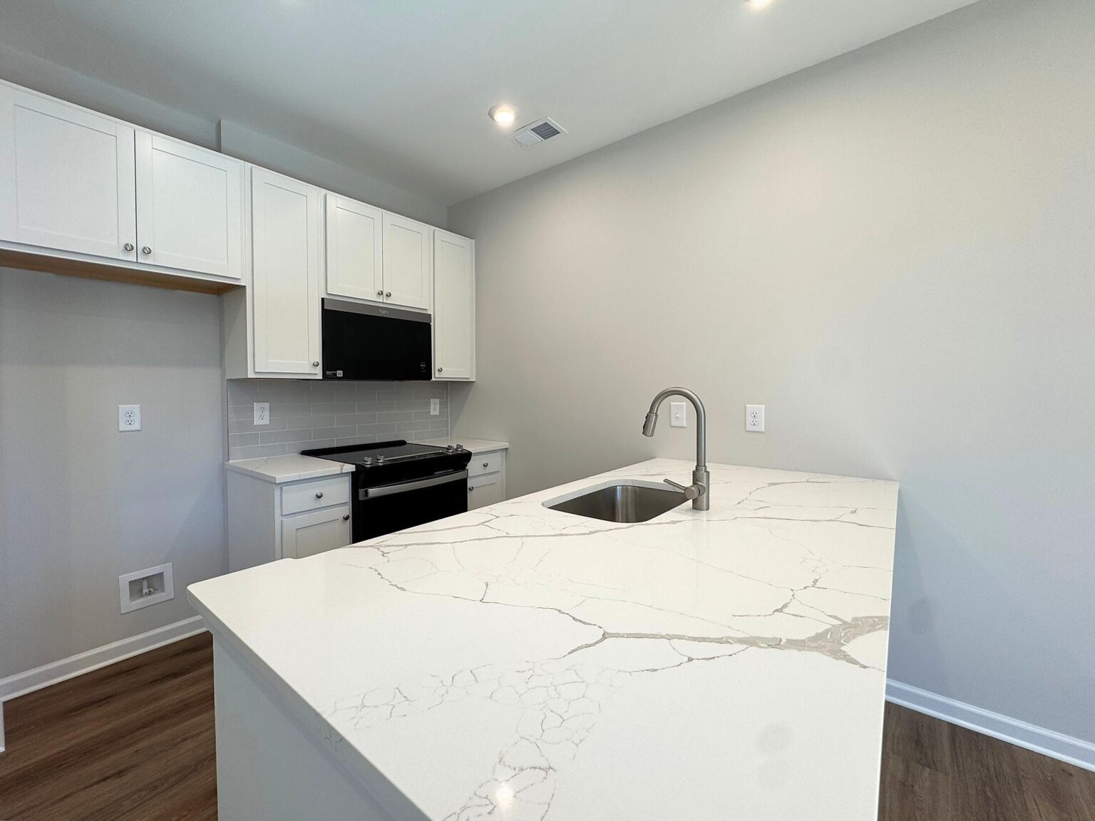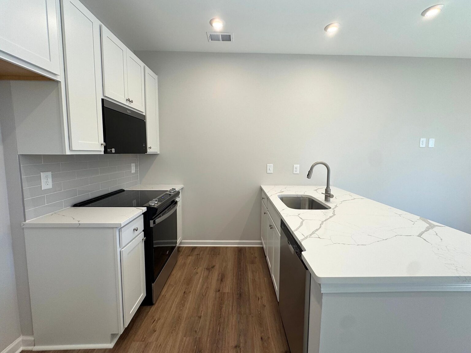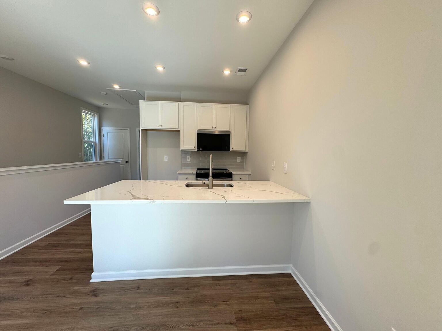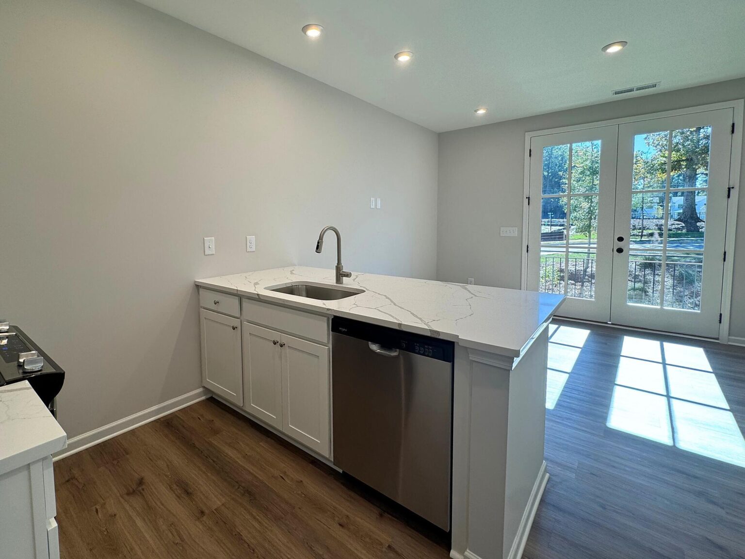 The second floor is the heart of the home, featuring a bright, open-concept layout where the galley-style kitchen flows seamlessly into the family room and dining area. French doors open to a balcony, extending the living space outdoors. The private owner’s suite is also located on this level, complete with a spacious bath and walk-in closet for a comfortable retreat.