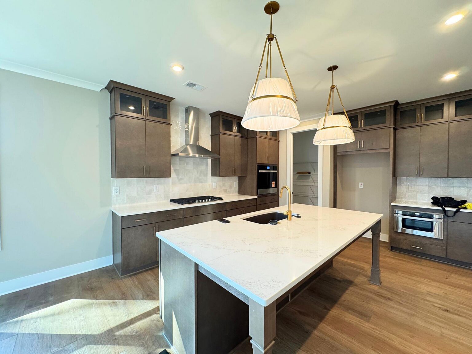 The kitchen is a standout with an oversized island and a spacious walk-in pantry, enhancing both style and practicality. The primary bedroom is a retreat with dual walk-in closets, and the covered porch invites you to enjoy the outdoors.
