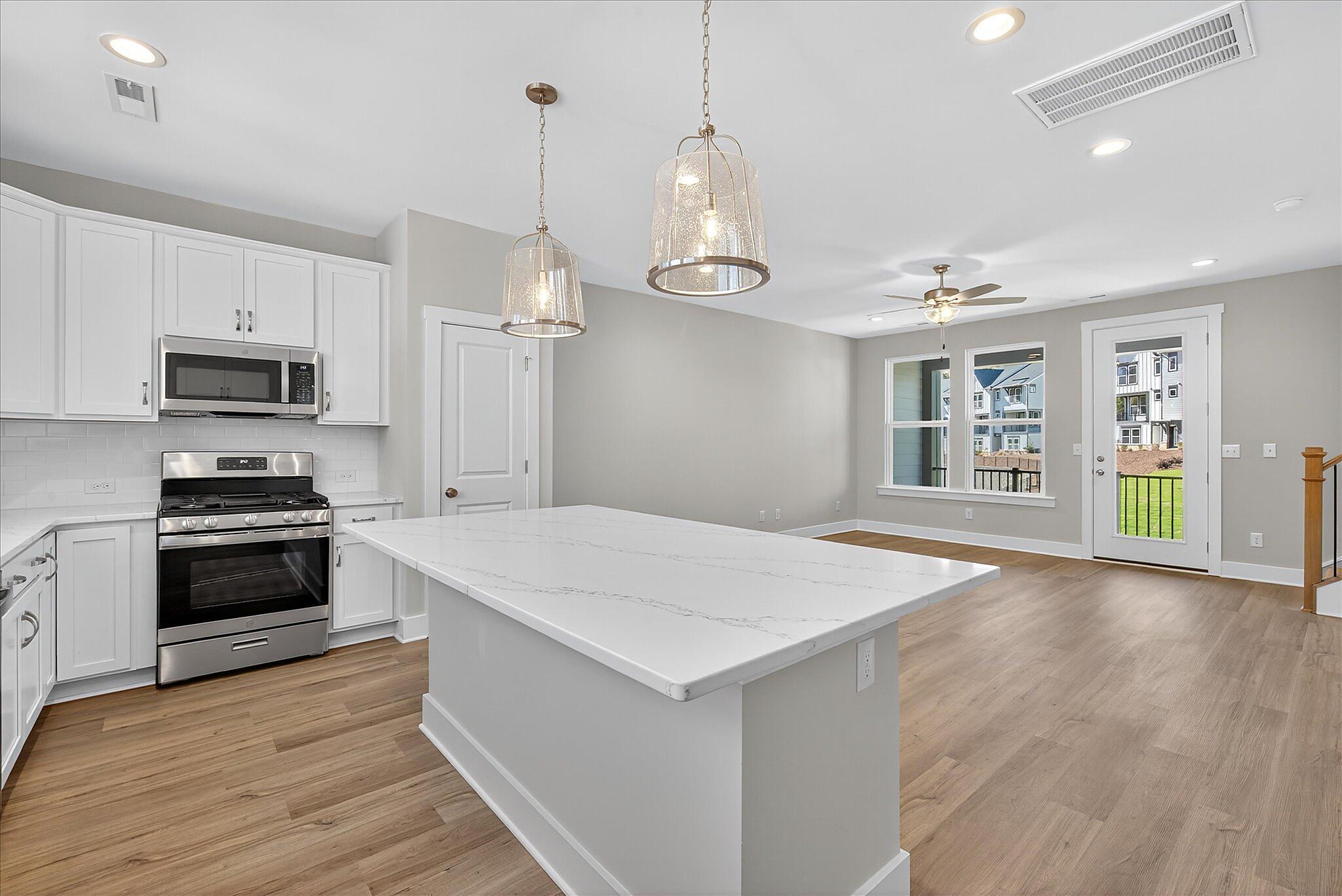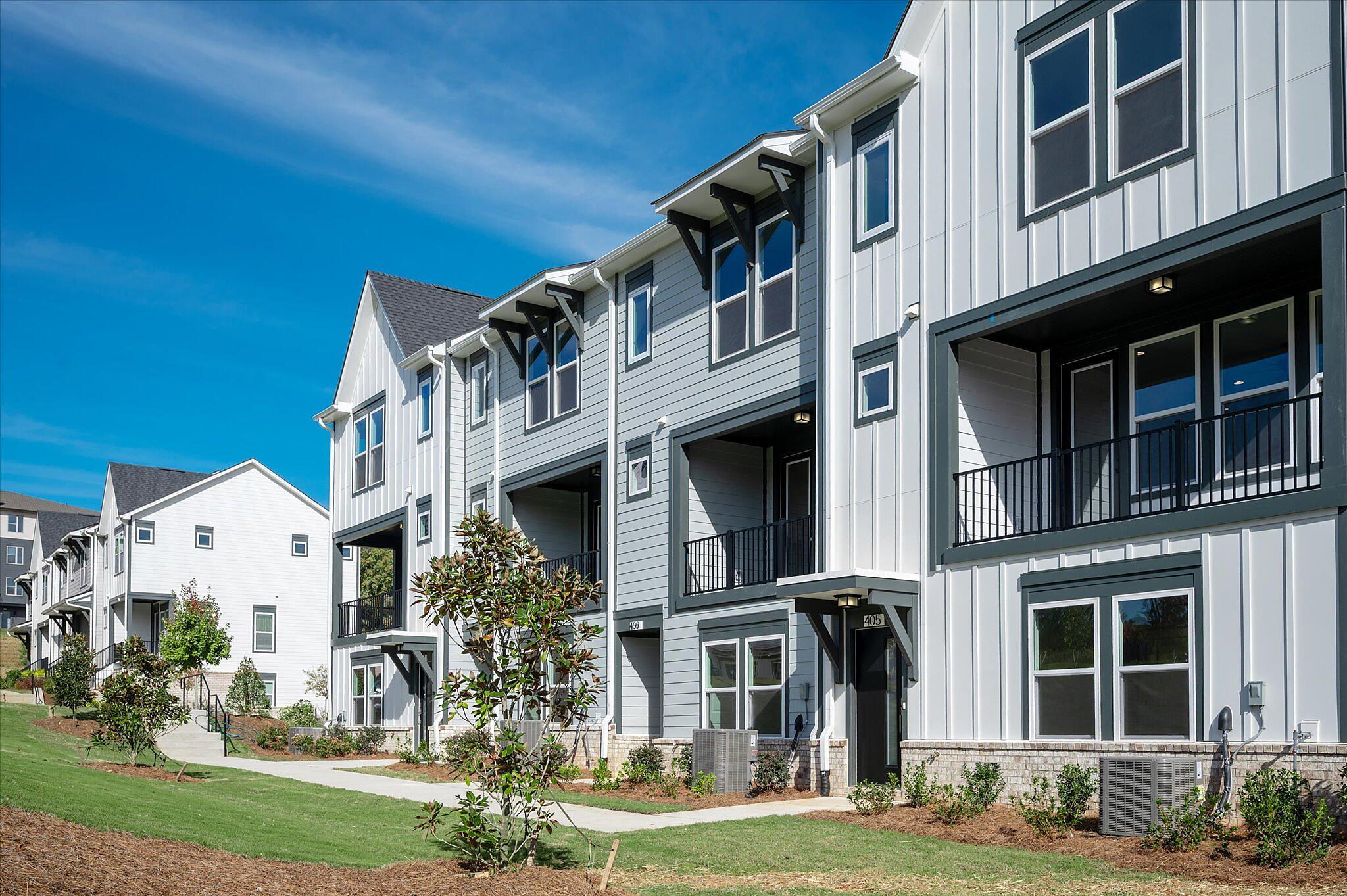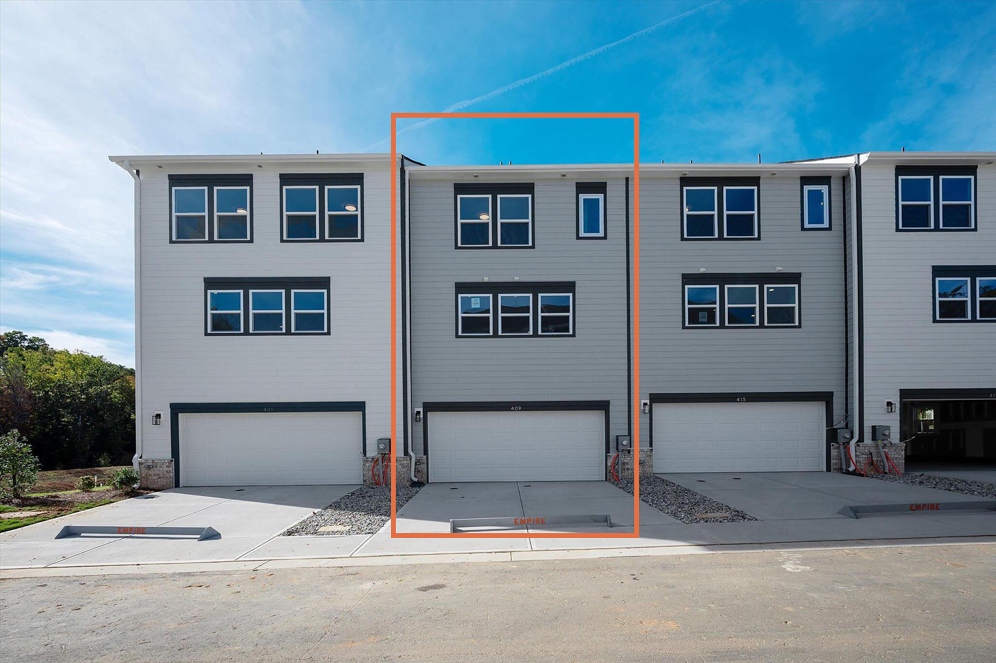 This new townhome in Charlotte offers a private bathroom with every bedroom, great for roommates or guests! The first-floor has a private guest suite, and the other bedrooms are on the third floor; the primary bedroom has a walk-in closet and bathroom with large tiled shower. Enjoy quartz counters throughout, with tiled floors in all bathrooms. The second floor offers open-concept living, with a covered terrace and the living/dining/kitchen flowing together. The kitchen features a large island with space for barstools on both sides; use this as your main dining table! Kitchen also includes 42″ white cabinets, double trash pullout cabinet, GE stainless steel appliances with gas range, large undermount sink, and Moen faucet. Laundry closet is large enough for a full-size stacked washer/dryer. LVP flooring throughout the first and second floors. This townhome is walking distance to the paved Toby Creek Greenway, and only minutes to UNC Charlotte, IKEA, I-85, and so much more. 3 bedrooms, 3.5 baths, and a 2-car garage.