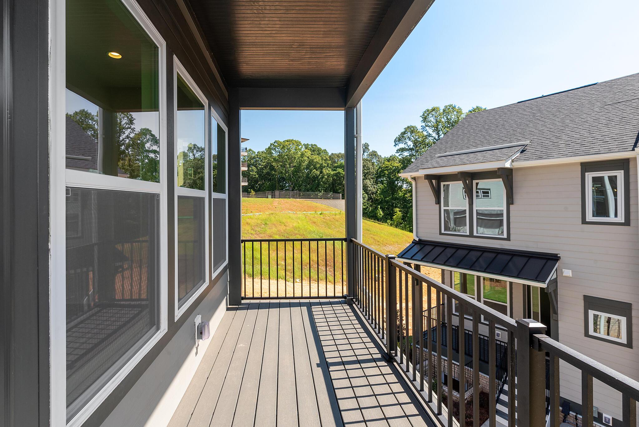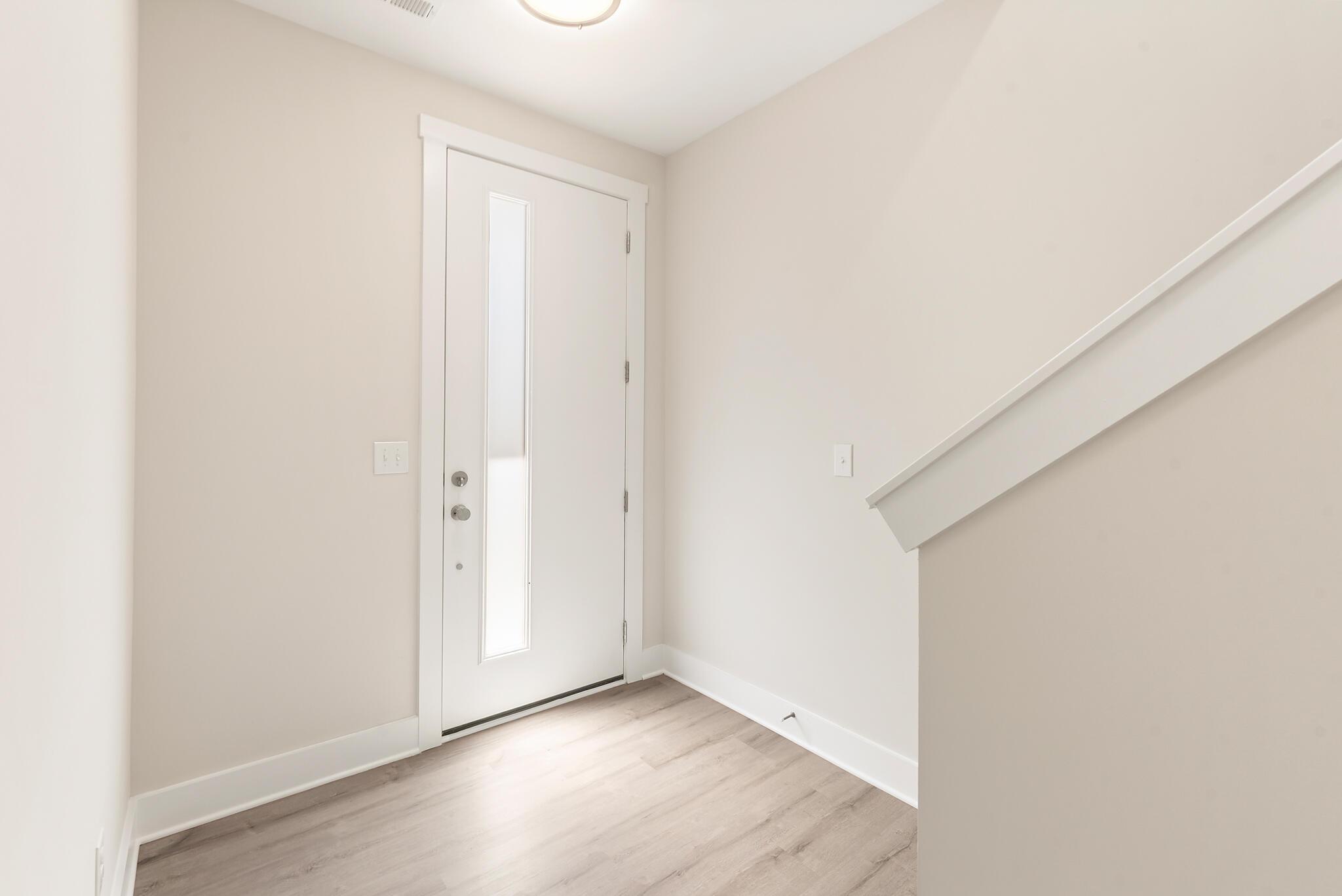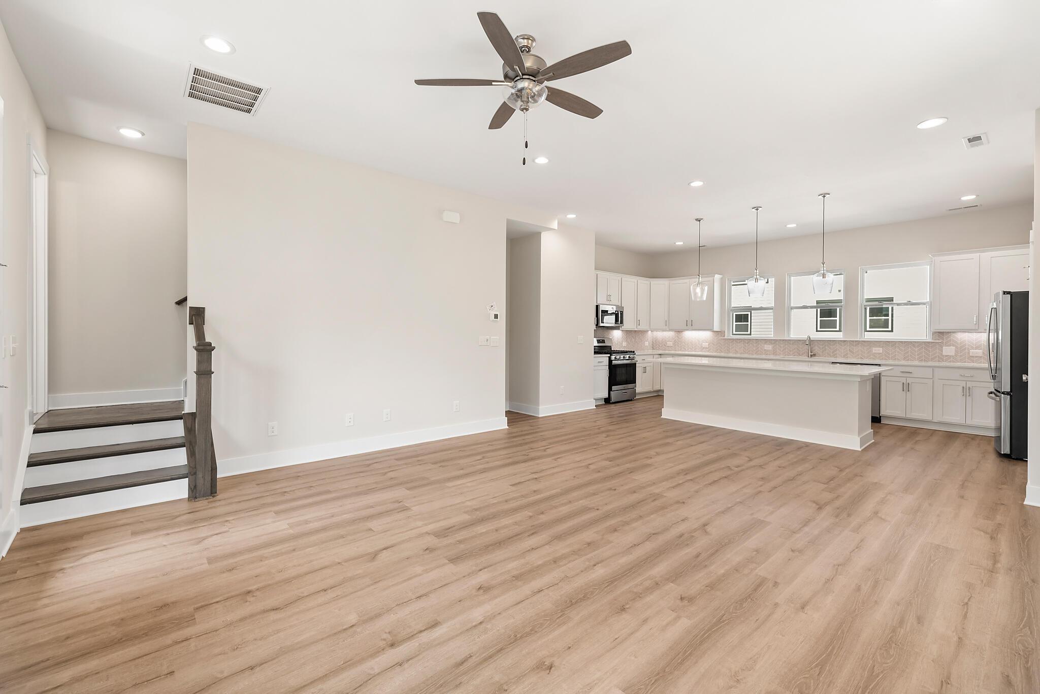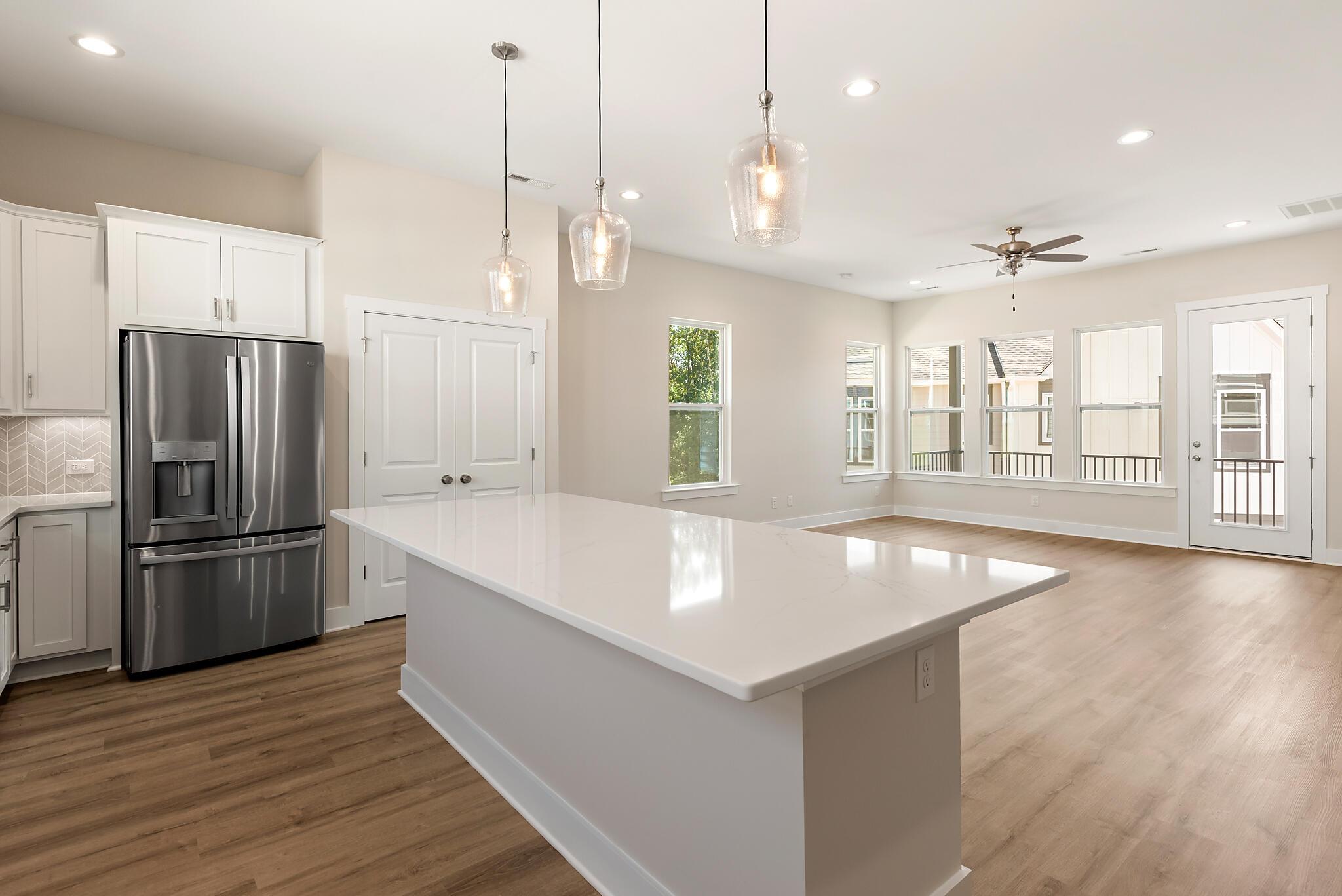 This is a spacious end-unit townhome with extra windows & upgrades throughout, plus ALL appliances! There is a private guest suite on the first floor, with the other 3 bedrooms on the 3rd floor. The second floor boasts a private covered terrace, 10′ ceilings and an open layout for kitchen/dining/living space. Kitchen has quartz counters, 42″ white painted cabinets, brushed nickel hardware, under-cabinet lighting, double trash pullout, large stainless undermount sink, GE stainless steel appliances with gas range and French door refrigerator included. Premier Suite has a walk-in closet and private bath with raised-height vanity with quartz counters and white cabinets, tiled floor, and tiled shower with semi-frameless glass surround. Secondary Baths feature quartz counter, Iron painted cabinet, fiberglass tub/shower, tile flooring, brushed nickel hardware. LVP throughout the first and second floors plus the third-floor hallway. Tile in full baths and laundry. Oak treads on all stairs. 9′ ceilings on the 1st and 3rd floors. Laundry includes tiled floor and GE 2-in-1 washer/dryer combo. 4 bedrooms, 3.5 baths.