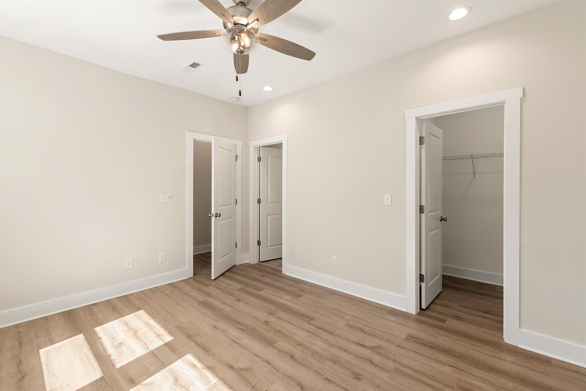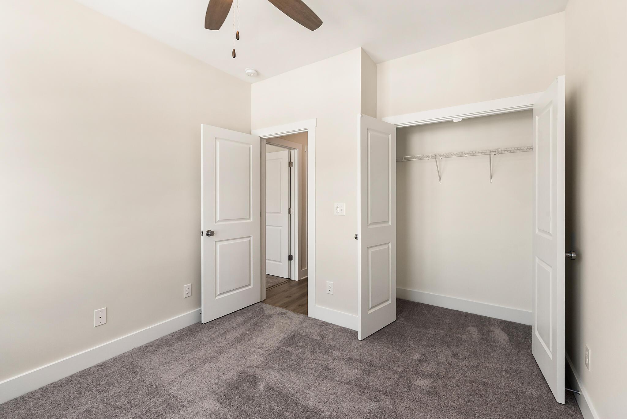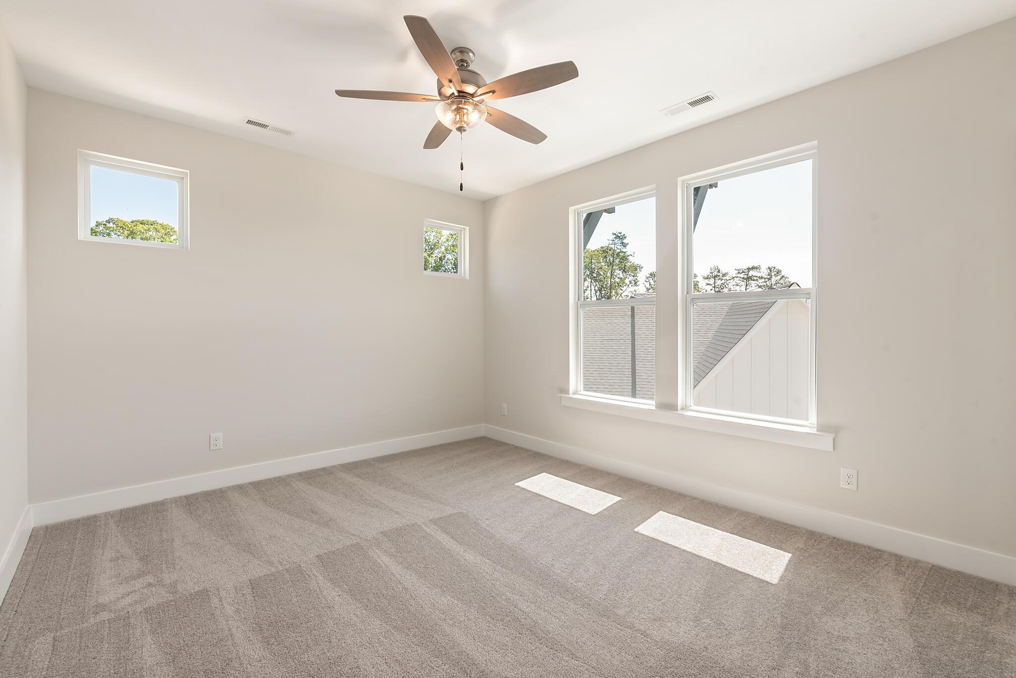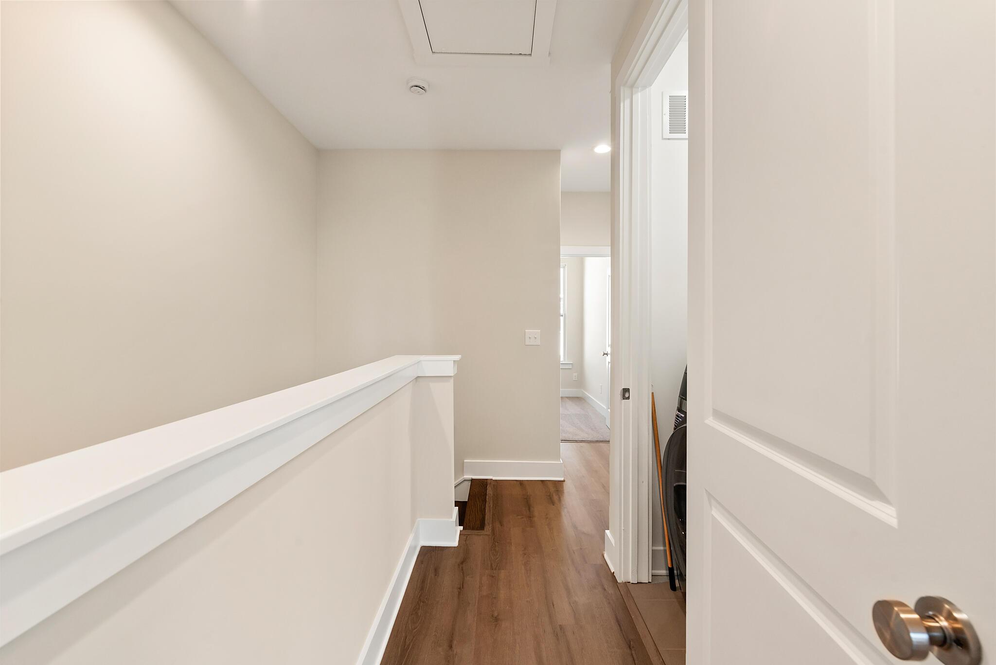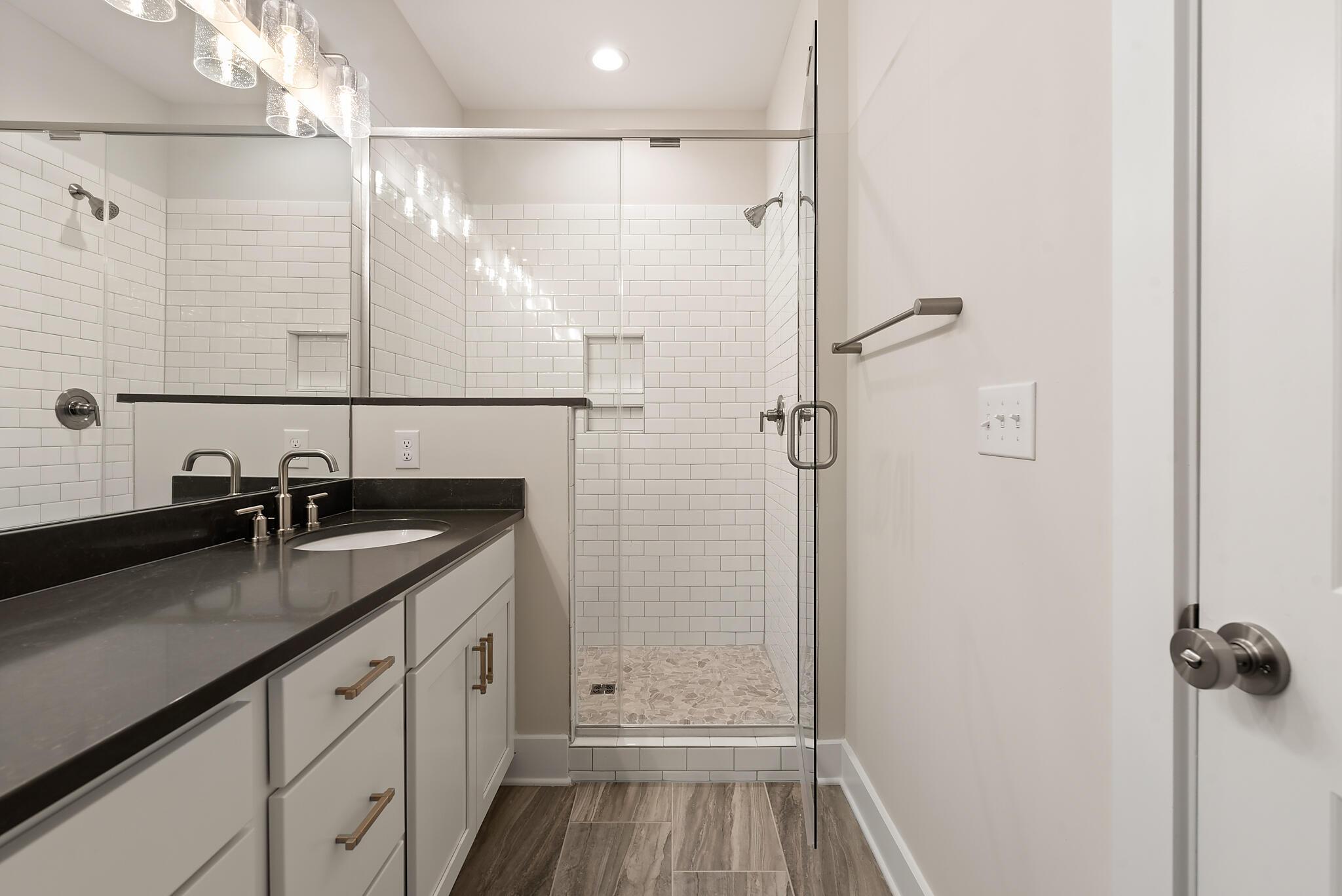 This is a spacious end-unit townhome with extra windows & upgrades throughout, plus ALL appliances! There is a private guest suite on the first floor, with the other 3 bedrooms on the 3rd floor. The second floor boasts a private covered terrace, 10′ ceilings and an open layout for kitchen/dining/living space. Kitchen has quartz counters, 42″ white painted cabinets, brushed nickel hardware, under-cabinet lighting, double trash pullout, large stainless undermount sink, GE stainless steel appliances with gas range and French door refrigerator included. Premier Suite has a walk-in closet and private bath with raised-height vanity with quartz counters and white cabinets, tiled floor, and tiled shower with semi-frameless glass surround. Secondary Baths feature quartz counter, Iron painted cabinet, fiberglass tub/shower, tile flooring, brushed nickel hardware. LVP throughout the first and second floors plus the third-floor hallway. Tile in full baths and laundry. Oak treads on all stairs. 9′ ceilings on the 1st and 3rd floors. Laundry includes tiled floor and GE 2-in-1 washer/dryer combo. 4 bedrooms, 3.5 baths.
