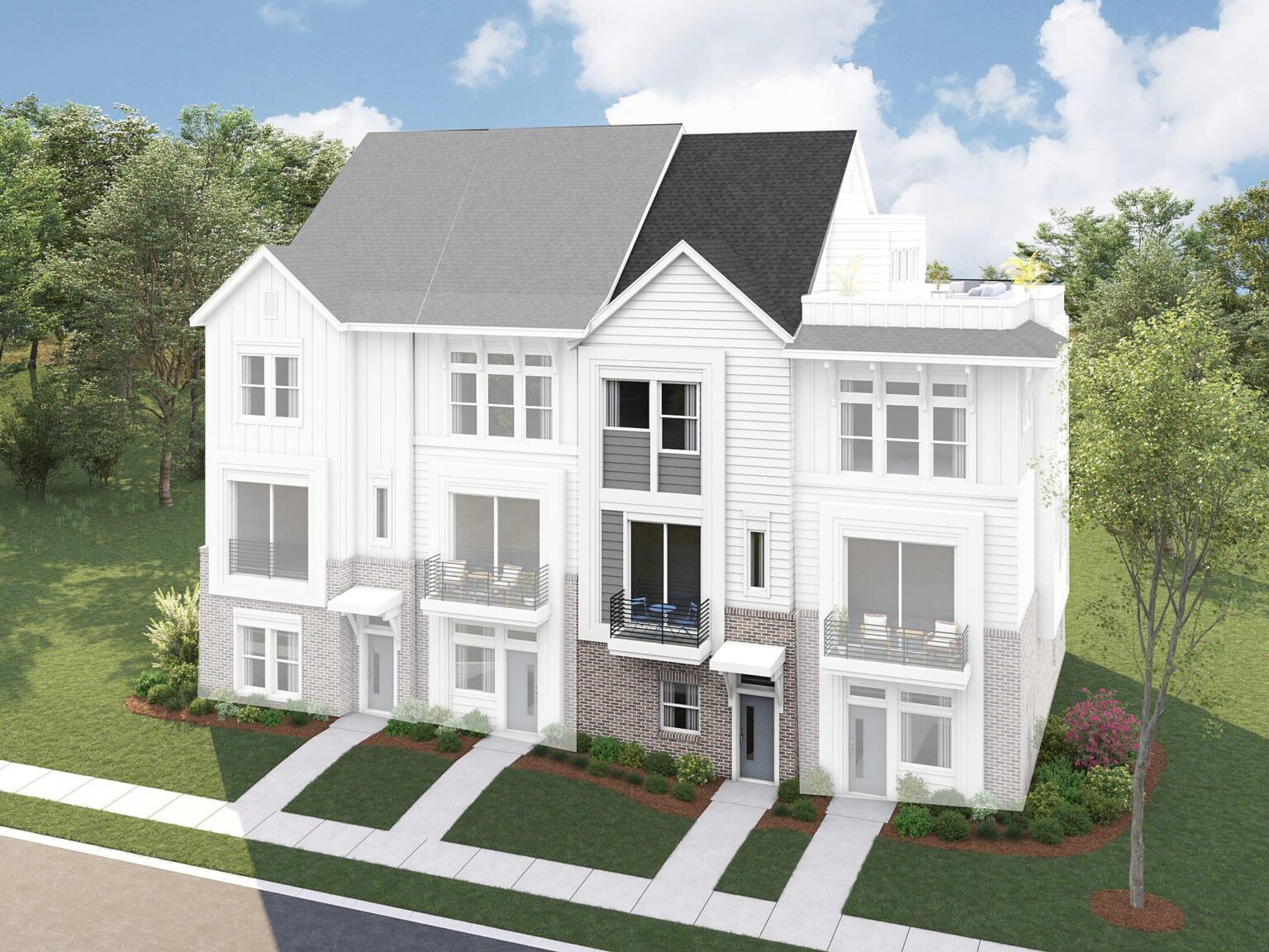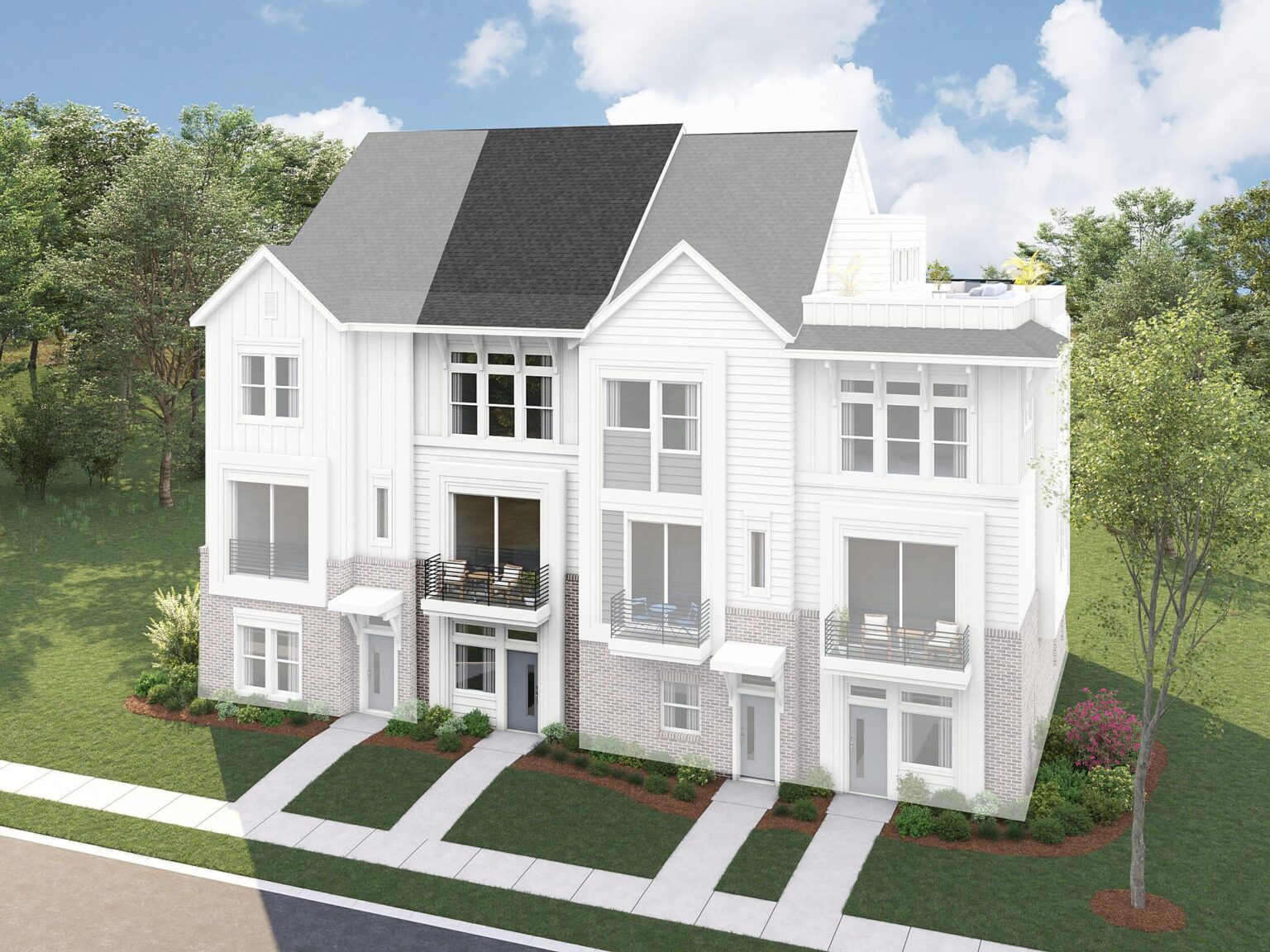 The Cambria is a 4-story townhome with 9' ceilings throughout, with the first floor offering a 2-car tandem garage. At Caswell, this will be an interior townhome only. The second floor includes the main living space, with every foot thoughtfully designed for maximum usage. Enjoy the spacious Kitchen, which includes an island, pantry cabinet, and sliding doors leading to a small deck. The third floor includes both bedrooms plus a stacked laundry closet. Use the fourth-floor Rec room as your home office, gym, or space to hang out; the spacious rooftop terrace just off the Rec room makes entertaining a breeze. A powder room will be included on the fourth floor in many of the homes at Caswell.