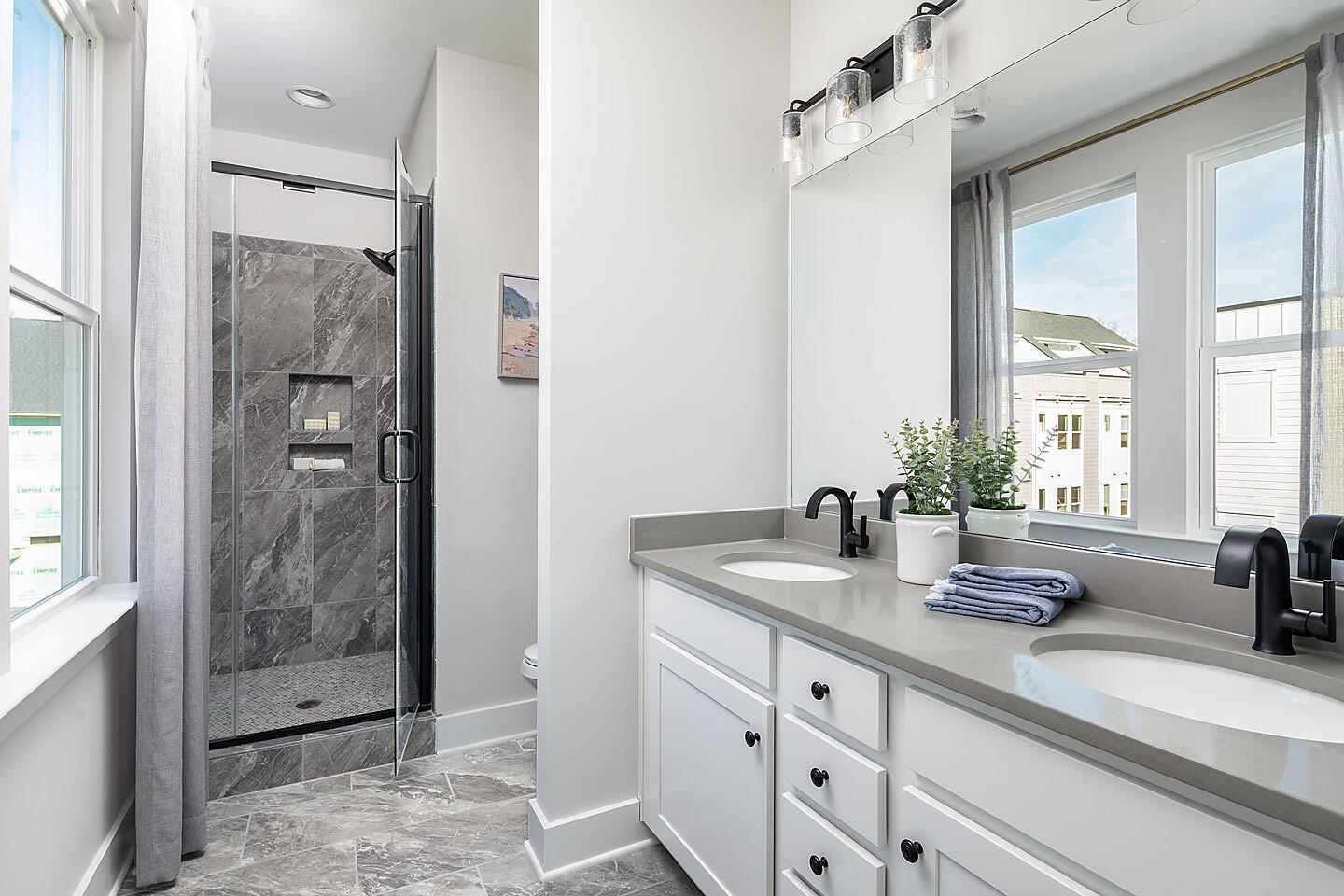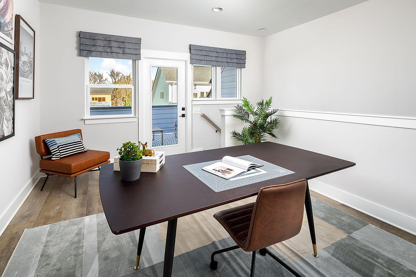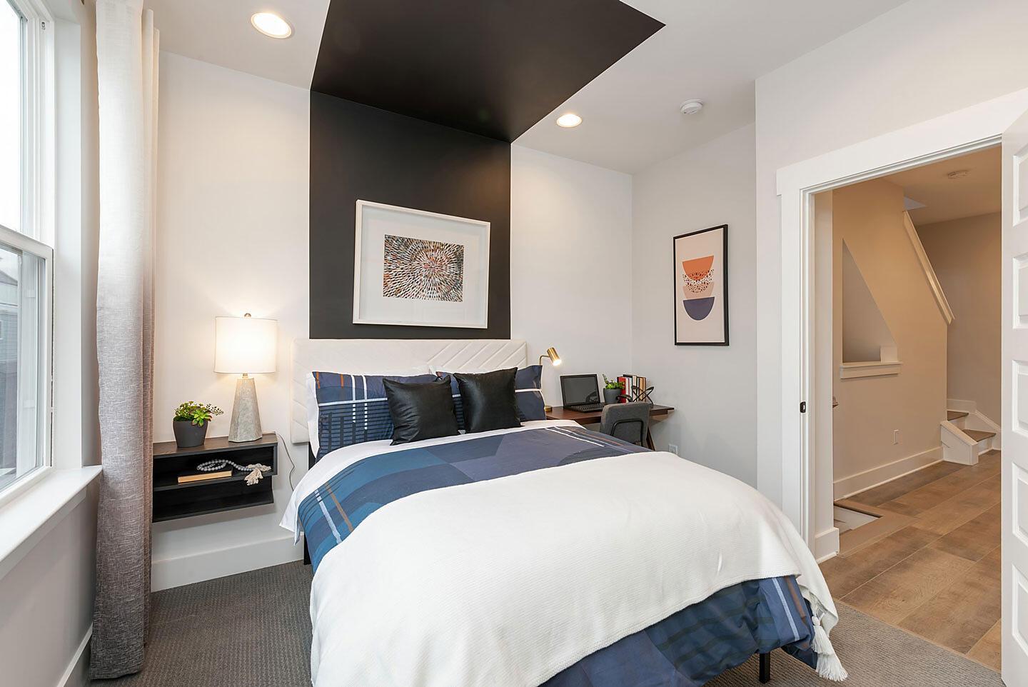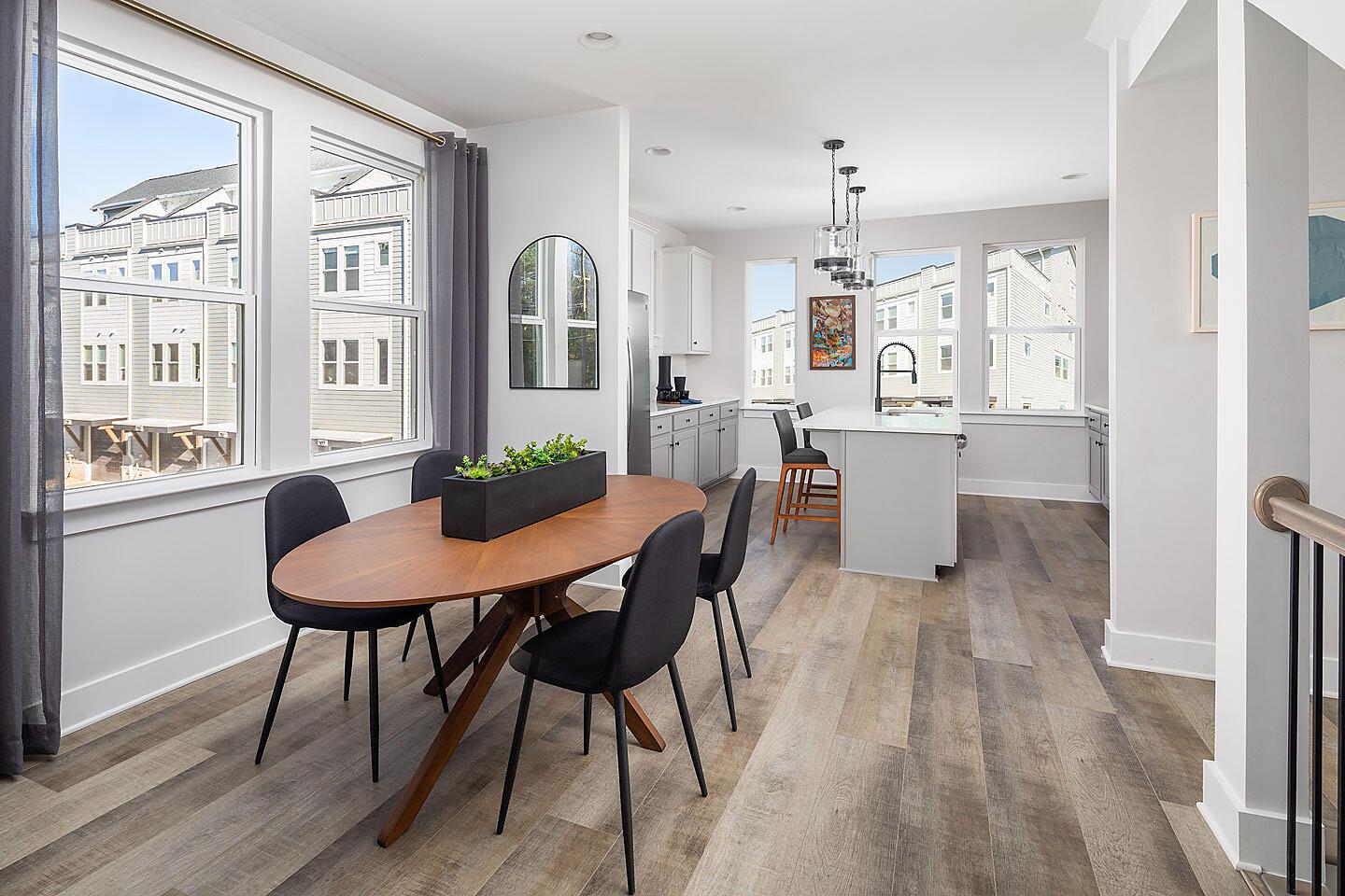 Only 1 remains! The Sorrento is an end-unit 4-story townhome with an attached 1-car garage and 9′ ceilings throughout. First-floor has a guest suite with private bath and walk-in closet. Enjoy abundant windows throughout! The second floor includes the main living space, with a clearly-defined dining area, powder, living room, and kitchen. The Kitchen has a pantry cabinet and island with space for bar stools. The third floor includes two bedrooms and a laundry closet. Head to the top floor for easy entertaining; the Rec room flows easily onto the rooftop terrace.