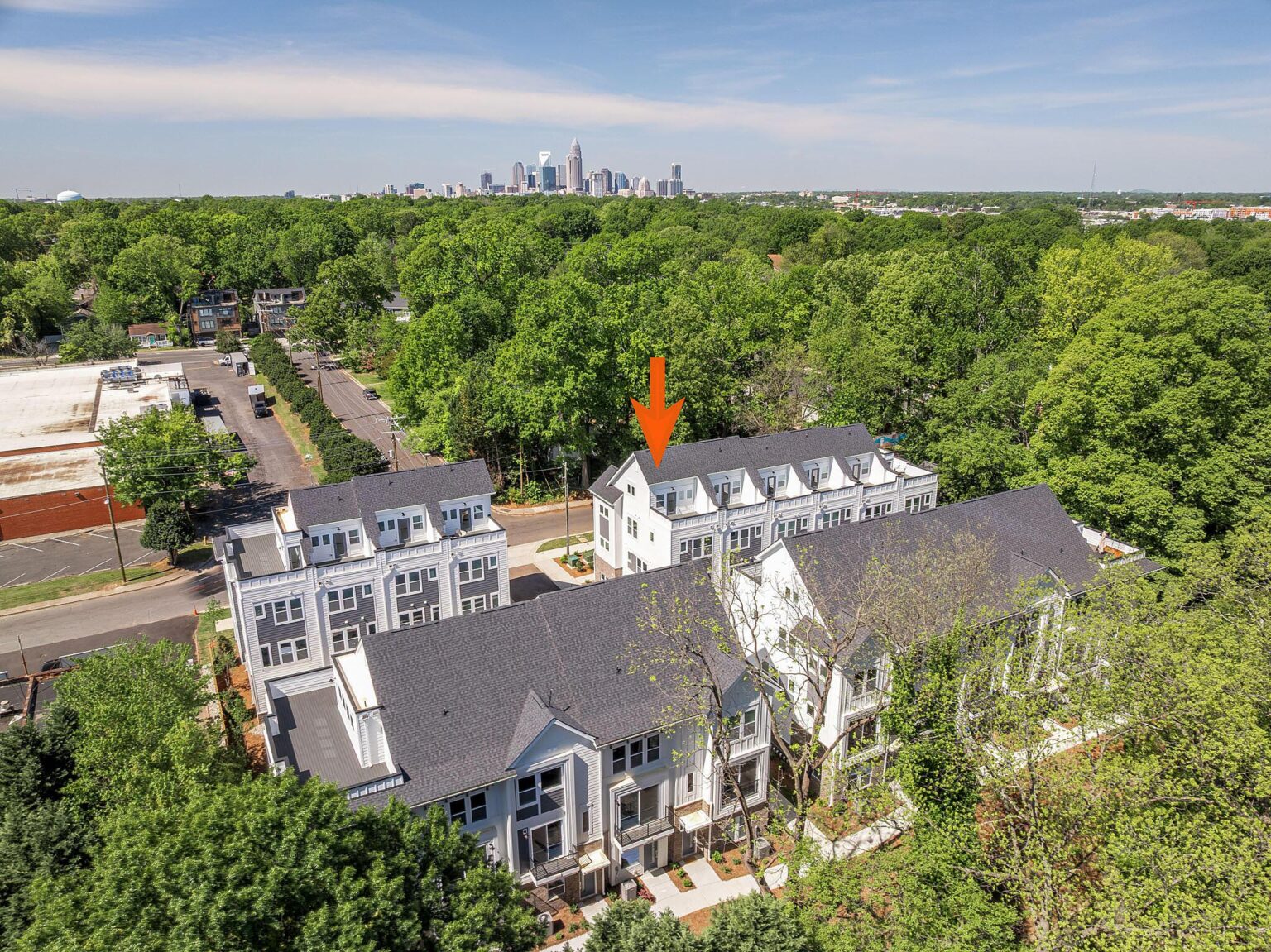 Last Sorrento home at Caswell! Spacious end-unit townhome with abundant windows in NoDa neighborhood of Charlotte, with 3 bedrooms plus a top-floor Rec Room with powder room, which can double as a 4th bedroom. First-floor guest suite w/ private bath & walk-in closet is also great for guests or a home office. Open second-floor is ideal for gatherings; large sliding doors w/ a Juliet-style balcony in the Living room allow in abundant fresh air. Kitchen has an island w/ trash pullout cabinets, 42″ cabinets for maximum storage, LED under-cabinet lights, pantry, quartz counters, tile backsplash, large stainless steel undermount sink, & GE stainless steel appliances with gas range & French door fridge. Laundry w/ GE stacked washer/dryer. Primary Bath with large tiled shower w/ semi-frameless glass, 2 sinks, dark grey cabinets & quartz counter plus tile floor. The guest bath has a quartz counter & tile floor. Great 4th floor w/ Rec Room w/ powder that opens to the large rooftop terrace. All stairs have stained oak treads & straight black wrought iron balusters. LVP floors throughout 1st & 2nd floor, plus 3rd floor landing & laundry, with tile in full baths. Other features include 9′ ceilings throughout and a garage. Easy access to N. Davidson Street, Plaza Midwood, Optimist Hall, and Uptown Charlotte. Walkable to several restaurants.
