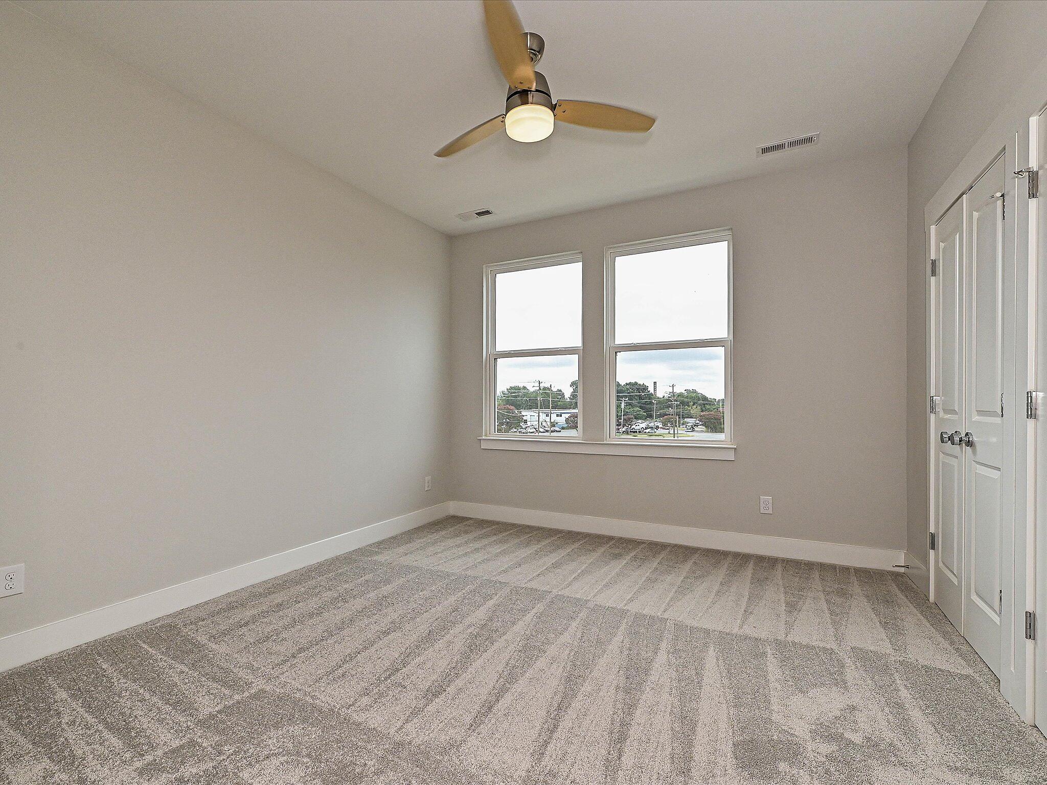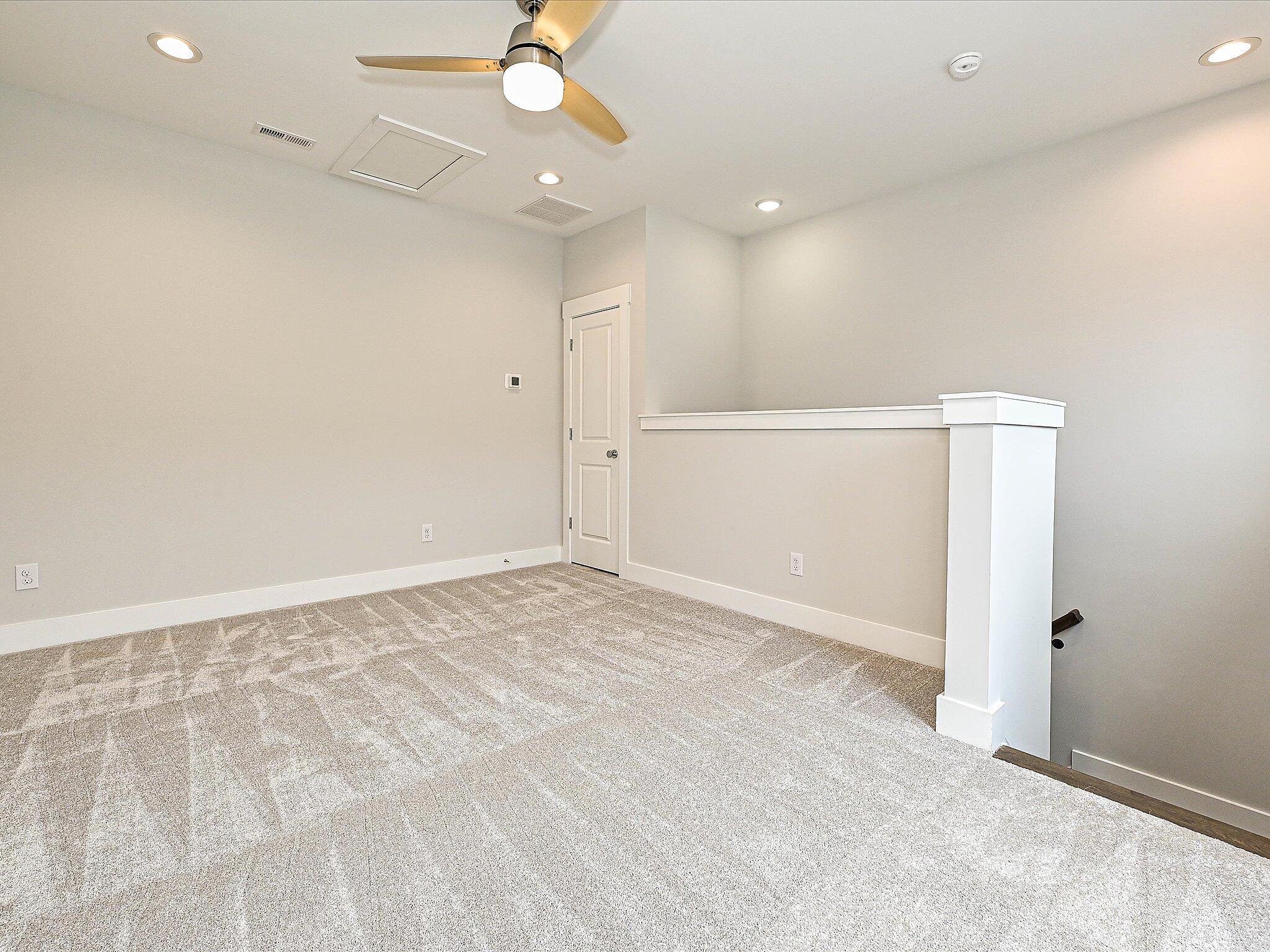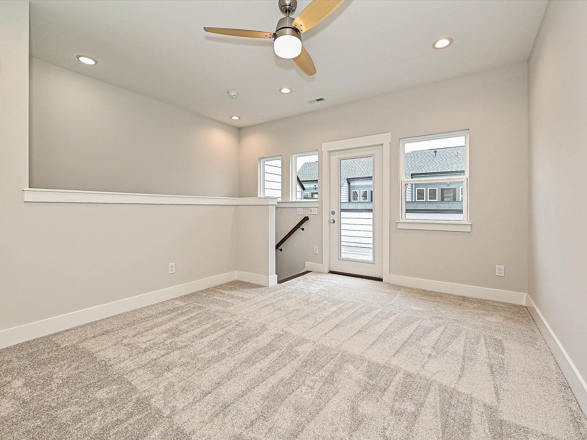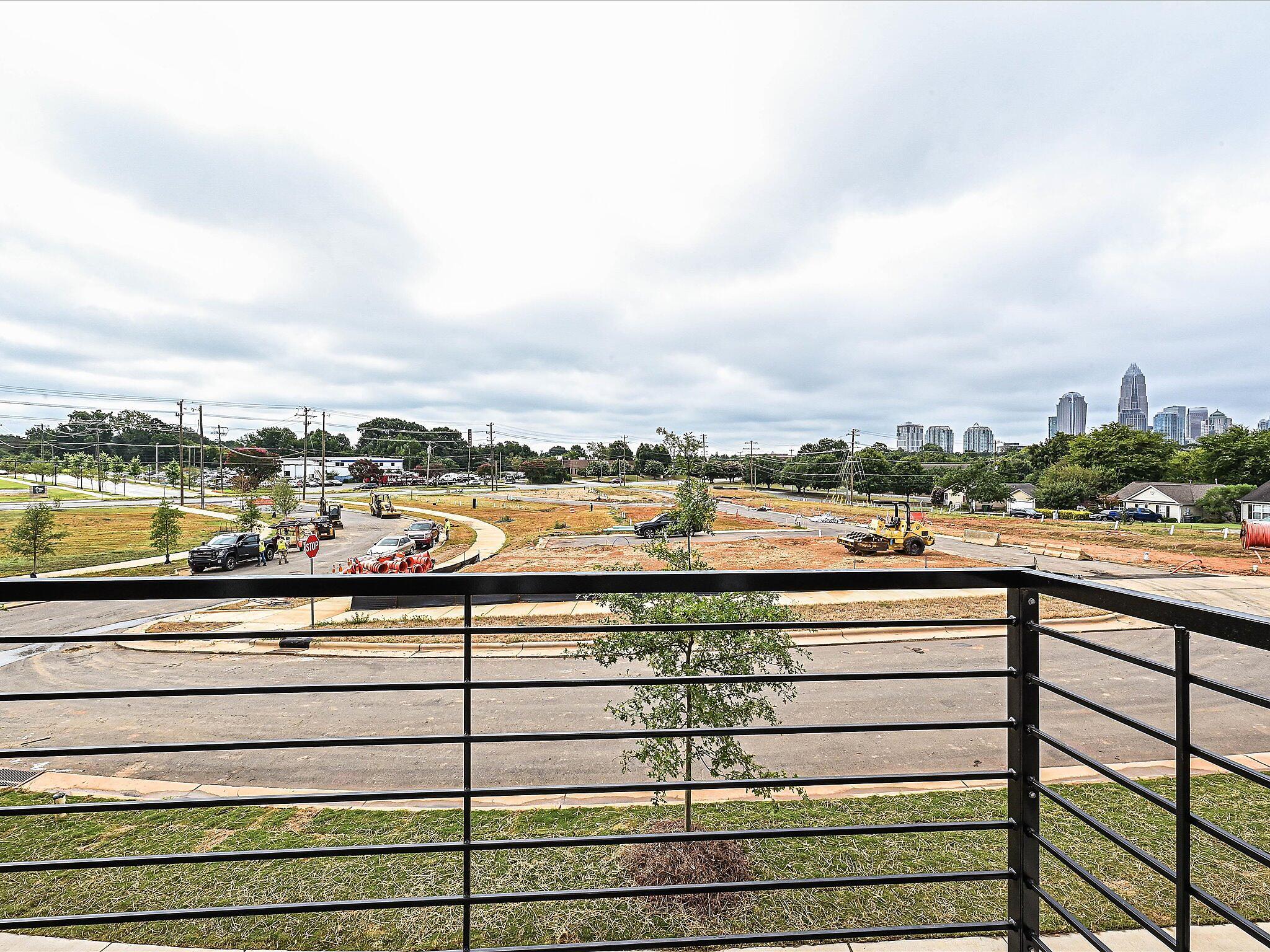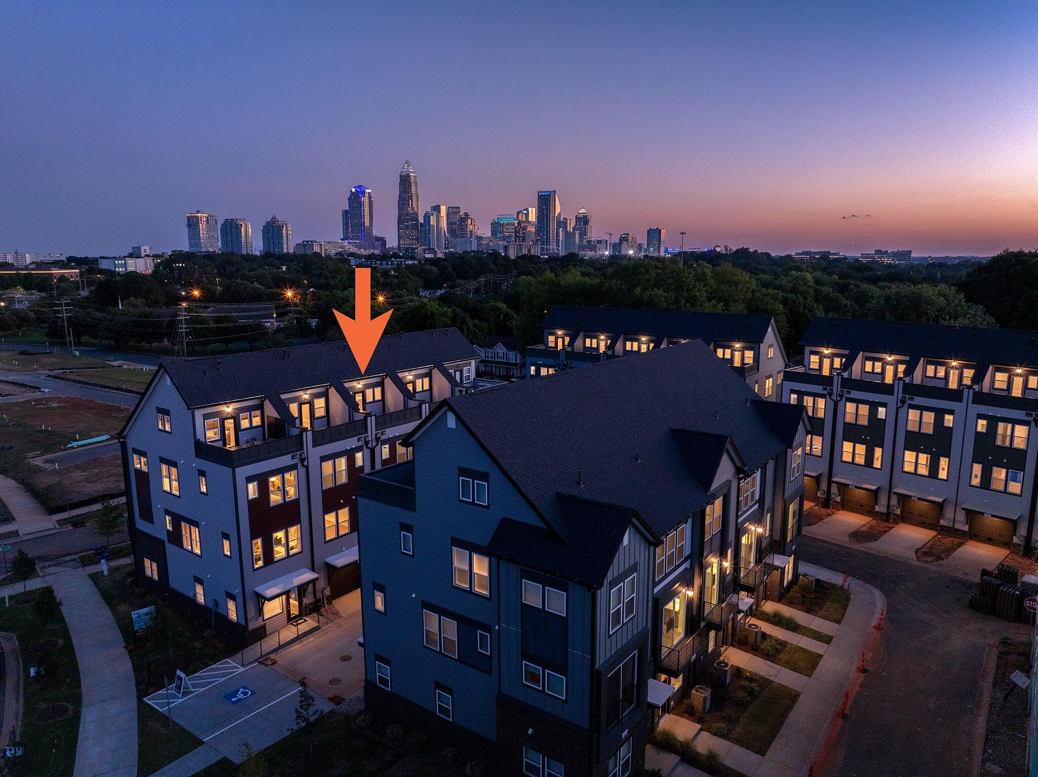 Want close proximity to Uptown Charlotte and Camp North End? This townhome offers that, 2 bedrooms, 2 full baths, 2 half baths, and much more. The 1st floor has a 1-car garage and Flex space with half bath, and the top floor has a Rec Room and a spacious rooftop terrace. The second floor has an open layout, plus a small deck off the kitchen. The Kitchen features 42″ light grey cabinets, LED under-cabinet lights, trash pullout, large undermount stainless sink, quartz counters, and GE stainless steel appliances with a gas range. The third floor hosts both bedrooms and the laundry closet with tiled floor. Full baths include quartz counters and white cabinets and tiled floors. The Premier Bath includes a tiled shower with semi-frameless surround and built-in shampoo niche. LVP flooring is throughout the first and second floors, plus third floor landing, with oak treads on all stairs and tile in the flex powder room. Ceiling fans are included in the flex, living room, premier suite and rec room. Walking distance to bars, restaurants, events, and more! Additional street parking is available.