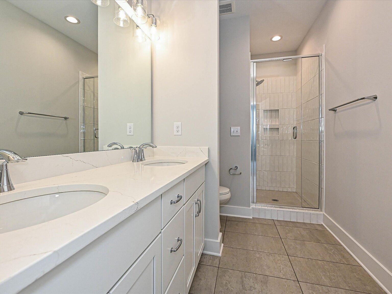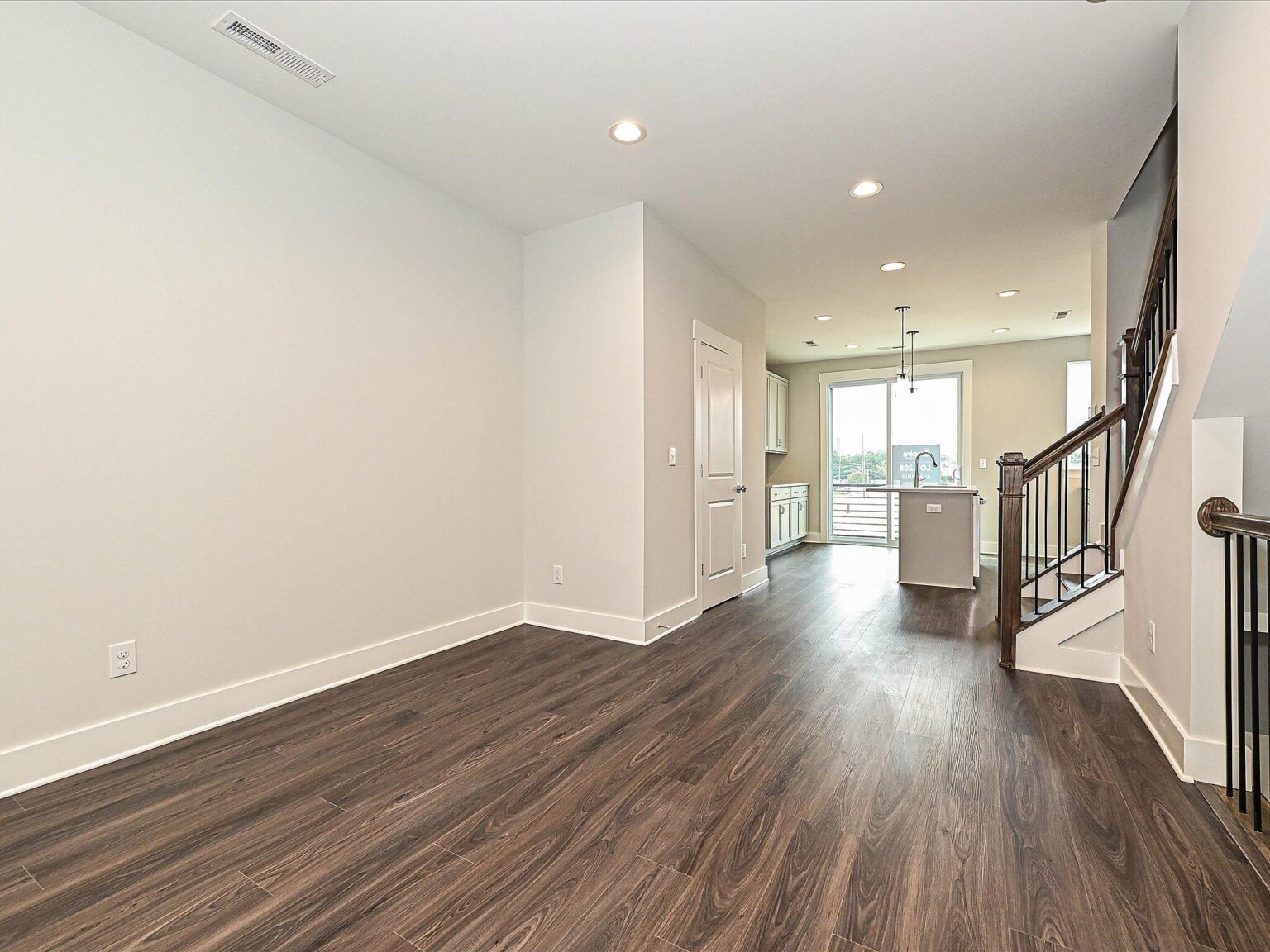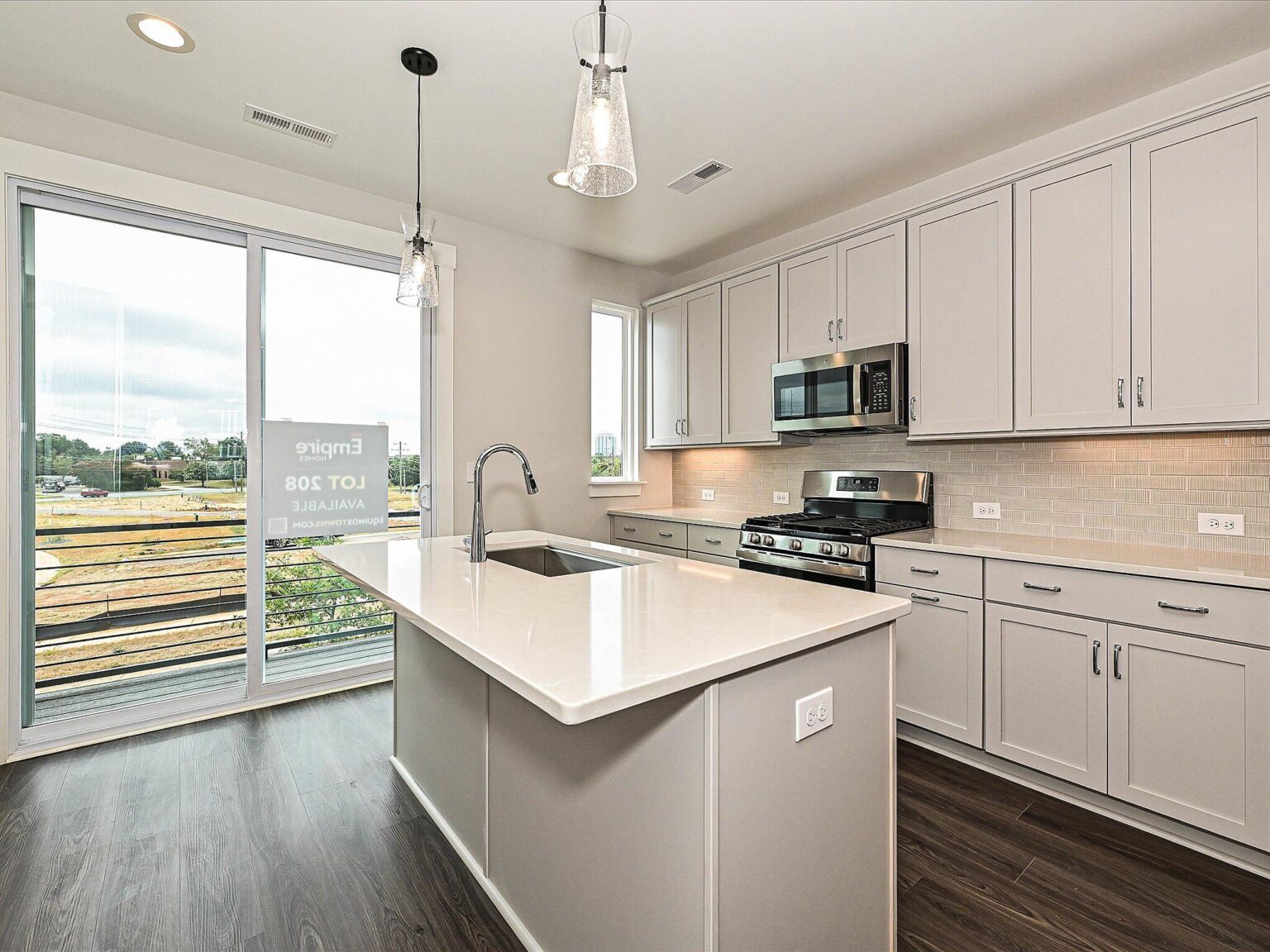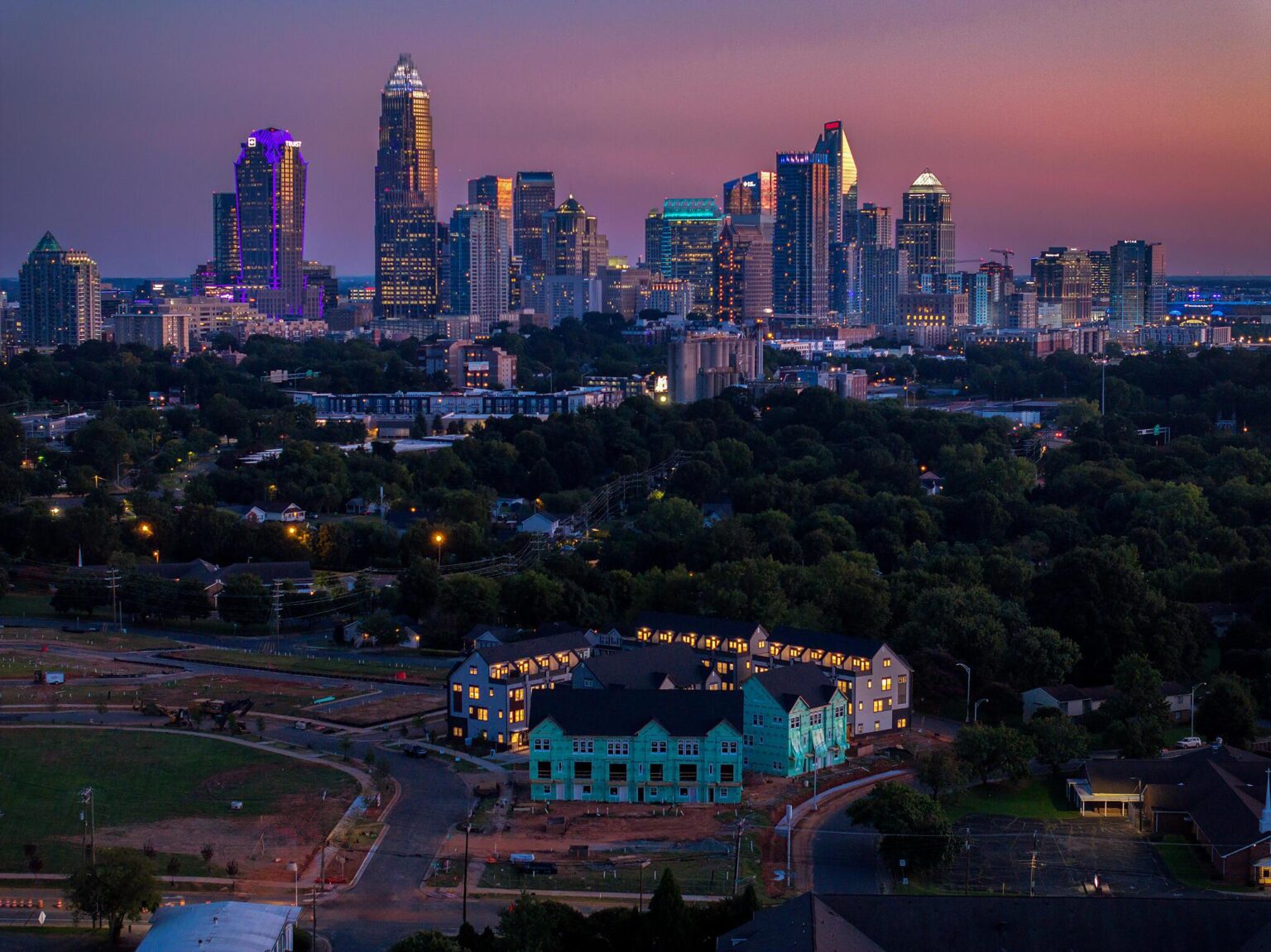 Want close proximity to Uptown Charlotte and Camp North End? This townhome offers that, 3 bedrooms, 2 full baths, 2 half baths, and much more. The 1st floor has a 1-car garage and Flex space with half bath, and the top floor has a bonus bedroom and a spacious rooftop terrace. The second floor has an open layout, plus a small deck off the kitchen. The Kitchen features 42" light grey cabinets, LED under-cabinet lights, trash pullout, large undermount stainless sink, quartz counters, and GE stainless steel appliances with a gas range. The third floor hosts both bedrooms and the laundry closet with tiled floor. Full baths include quartz counters and white cabinets and tiled floors. The Premier Bath includes a tiled shower with semi-frameless surround and built-in shampoo niche. LVP flooring is throughout the first and second floors, plus third floor landing, with oak treads on all stairs and tile in the flex powder room. Ceiling fans are included in the flex, living room, premier suite and bonus bedroom. Walking distance to bars, restaurants, events, and more! Additional street parking is available.