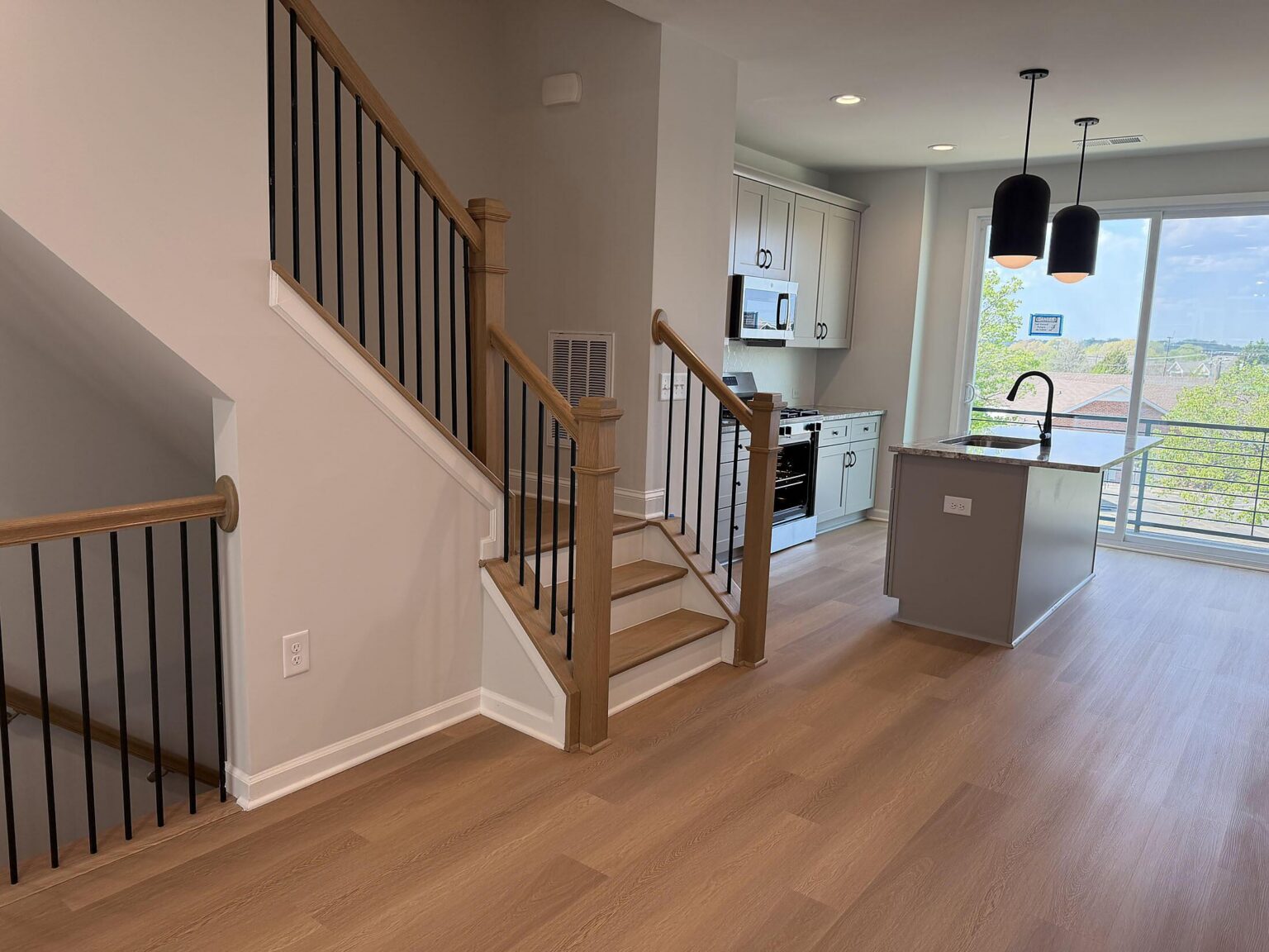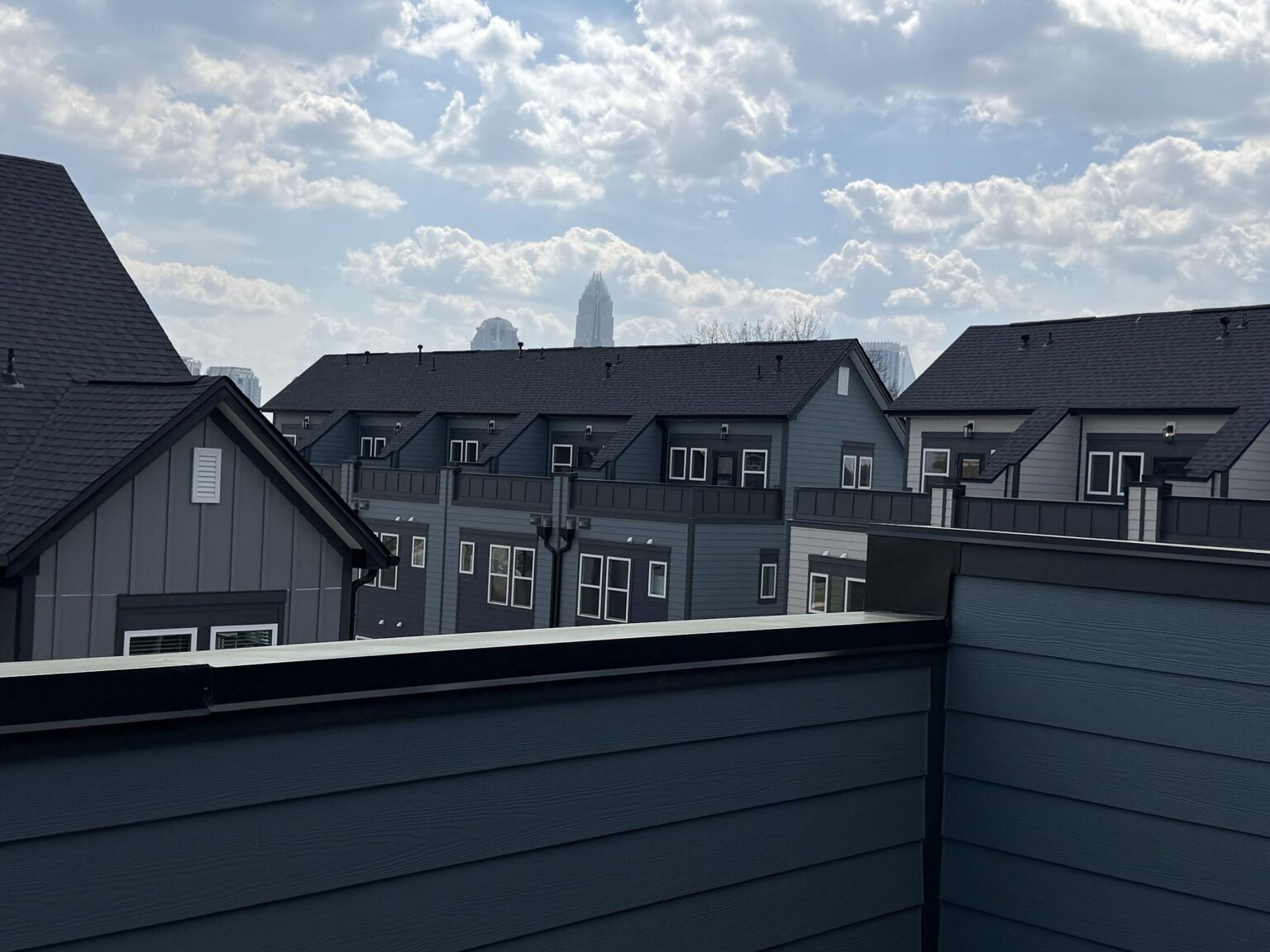 This townhome has a 2-car garage, 4th floor bedroom with a spacious rooftop terrace with a slight view of uptown. It's walking distance to Camp North End. Great open layout on the 2nd floor. Kitchen has 42" cabinets with matte black hardware, granite counters, trash pullout, GE SS appliances with a gas range. The 3rd floor hosts the laundry closet and two bedrooms. Premier bath includes quartz counters, tiled floor, & tiled shower with semi-frameless surround and built-in shampoo niche. Guest bath has quartz counters and tiled floor. Chrome hardware in baths. LVP floors throughout 1st & 2nd floors & 3rd floor landing, with oak treads on all stairs. Walking distance to bars, restaurants, events, and more! Additional street parking is available.