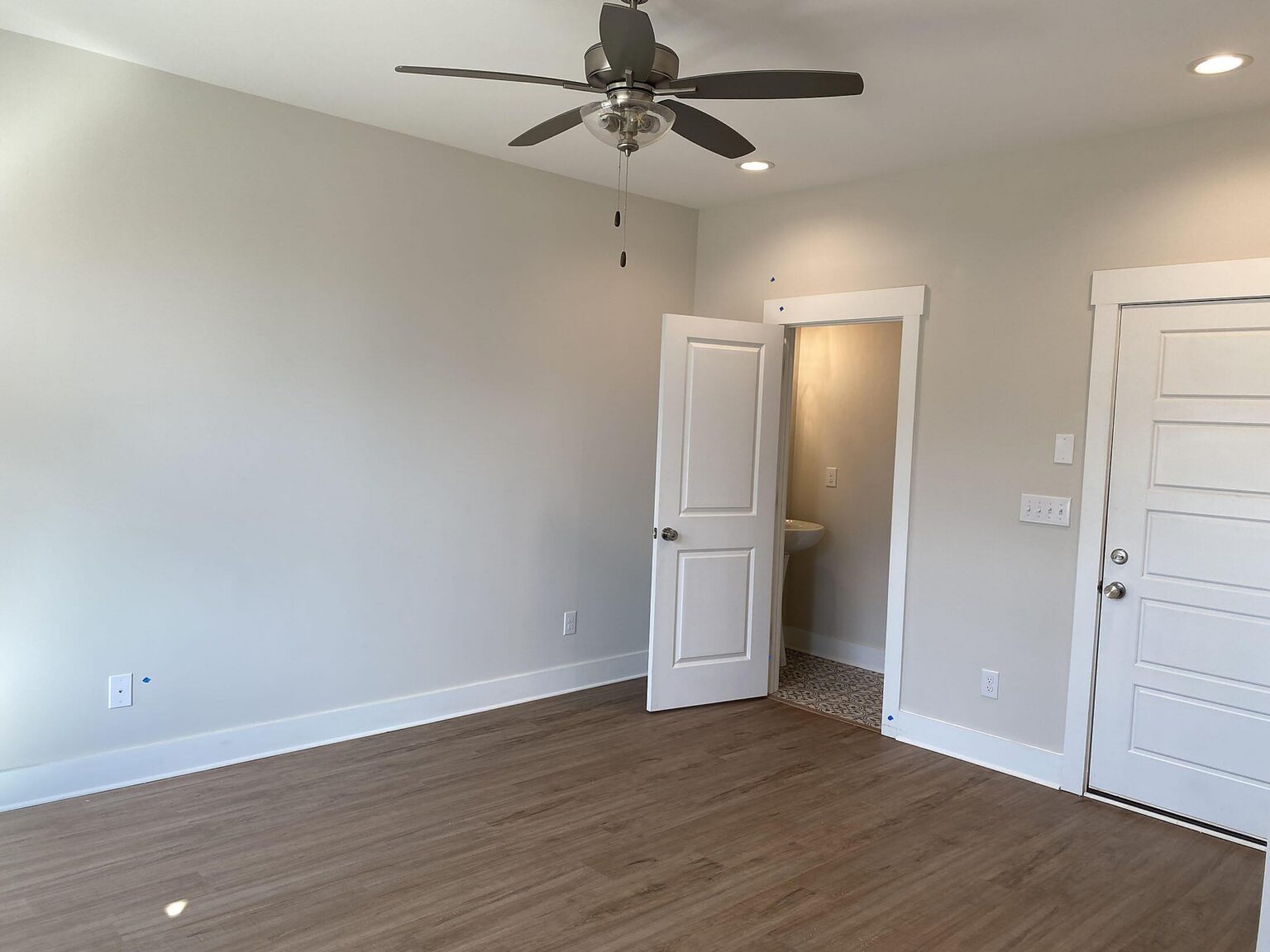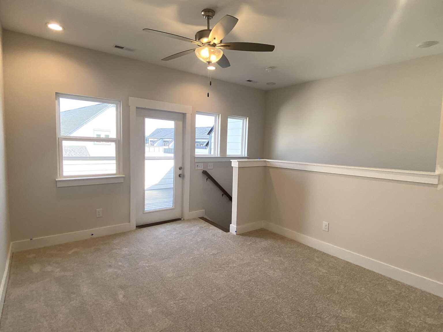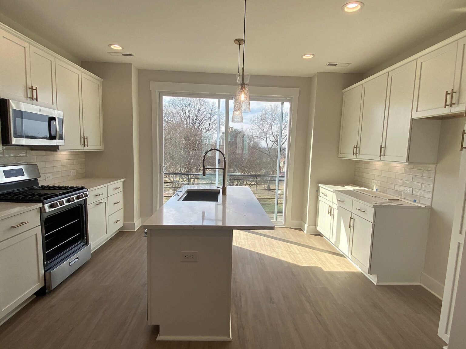 This is a versatile 4-story townhome, featuring a top floor Bonus bedroom and rooftop terrace, plus first floor Flex room with powder! The open layout of the second floor makes entertaining a snap, or meet friends at Camp North End just across the street. Off the kitchen is a small terrace with seasonal city skyline views. The Kitchen features 42″ white painted cabinets with brushed gold hardware, quartz counters, backsplash, under-cabinet lights, trash pullout, pantry cabinet, and GE stainless steel appliances with a gas range, plus large undermount stainless sink. Laundry is conveniently located on the 3rd floor w/ 2 bedrooms. Premier Bath has light grey painted cabinets, quartz counters, tiled floors and a tiled shower with semi-frameless glass. Guest hall bath includes white painted cabinets, quartz counter, and tiled floor. Low maintenance LVP floors are throughout the first and second floors, plus third floor hallway, with tile in full baths, 1st floor powder, & laundry. Oak treads are on the stairs. 52″ ceiling fans are in the flex, bonus bedroom, living and Premier bedroom. 9′ ceilings throughout; 1-car garage & driveway plus on-street parking is available. Enjoy close proximity to Uptown Charlotte.