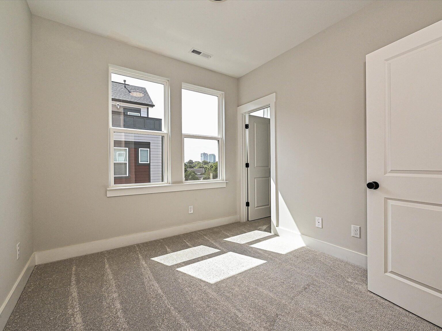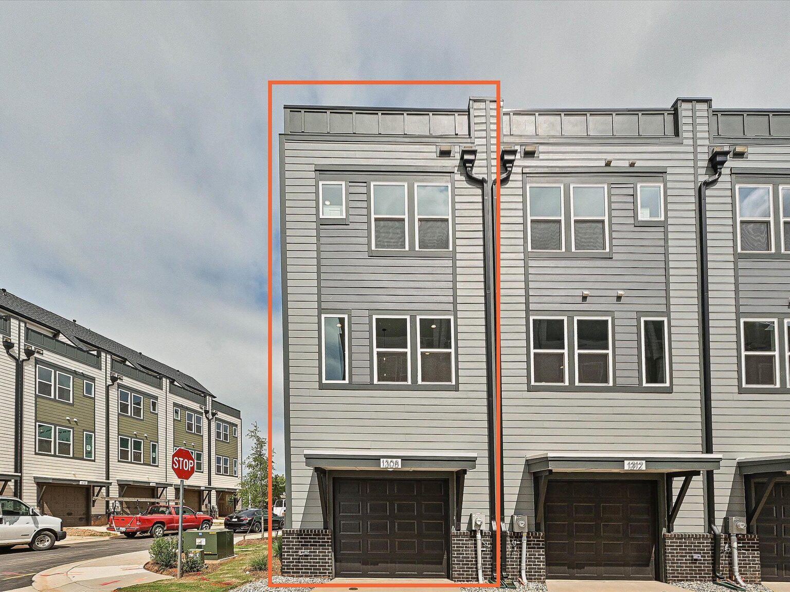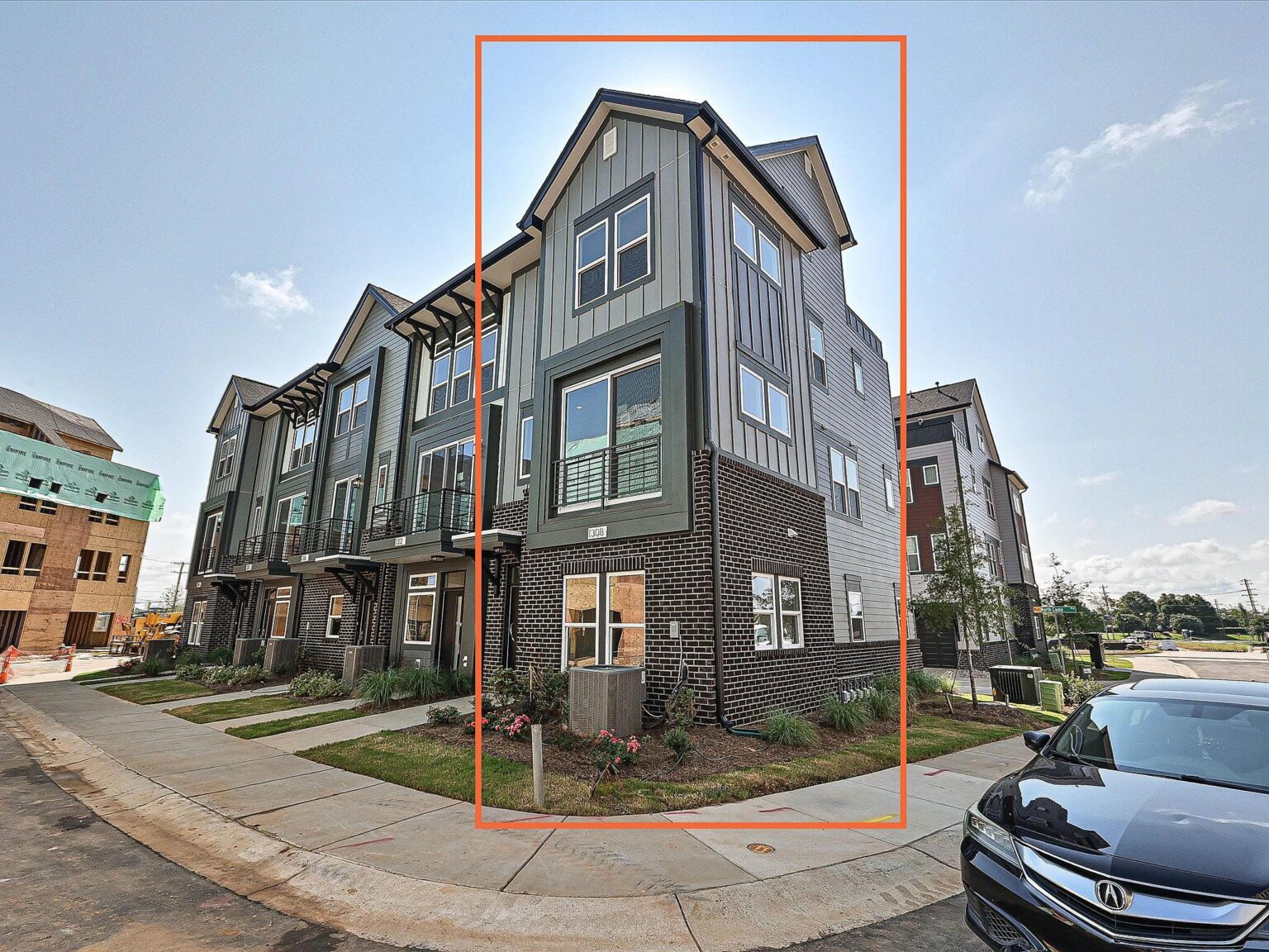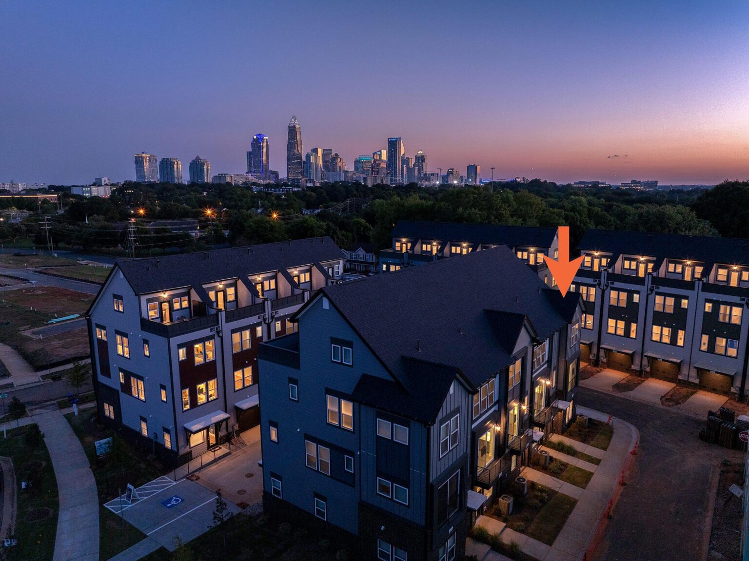 Fabulous end-unit townhome with a view of Uptown Charlotte skyline from the Rooftop Terrace and walking distance to Camp North End! This is one of the few 3-bedroom townhomes located in Equinox! Enjoy abundant windows, 9′ ceilings on all floors, and a first-floor guest suite with private bath. The Kitchen features quartz counters, 42″ white perimeter cabinets with nautical blue cabinets at the island, under-cabinet lights, trash pullout, large undermount stainless sink, and GE stainless steel appliances with a gas range. The Living Room has a Juliet balcony. The third floor hosts the two other bedrooms plus the laundry closet with tiled floor. Both secondary baths include quartz counters, white cabinets, and matte black hardware, plus tiled floors. The Premier bath features nautical blue cabinets, matte black hardware, a large tiled shower with semi-frameless shower door and shampoo niche. Versatile fourth floor has a spacious Rec Room with closet and Rooftop Terrace. LVP floors are throughout the first and second floors, plus third floor hall, with oak treads on all stairs. Living room, Rec Room and Premier Suite include a 52″ ceiling fan. Close proximity to Uptown Charlotte.