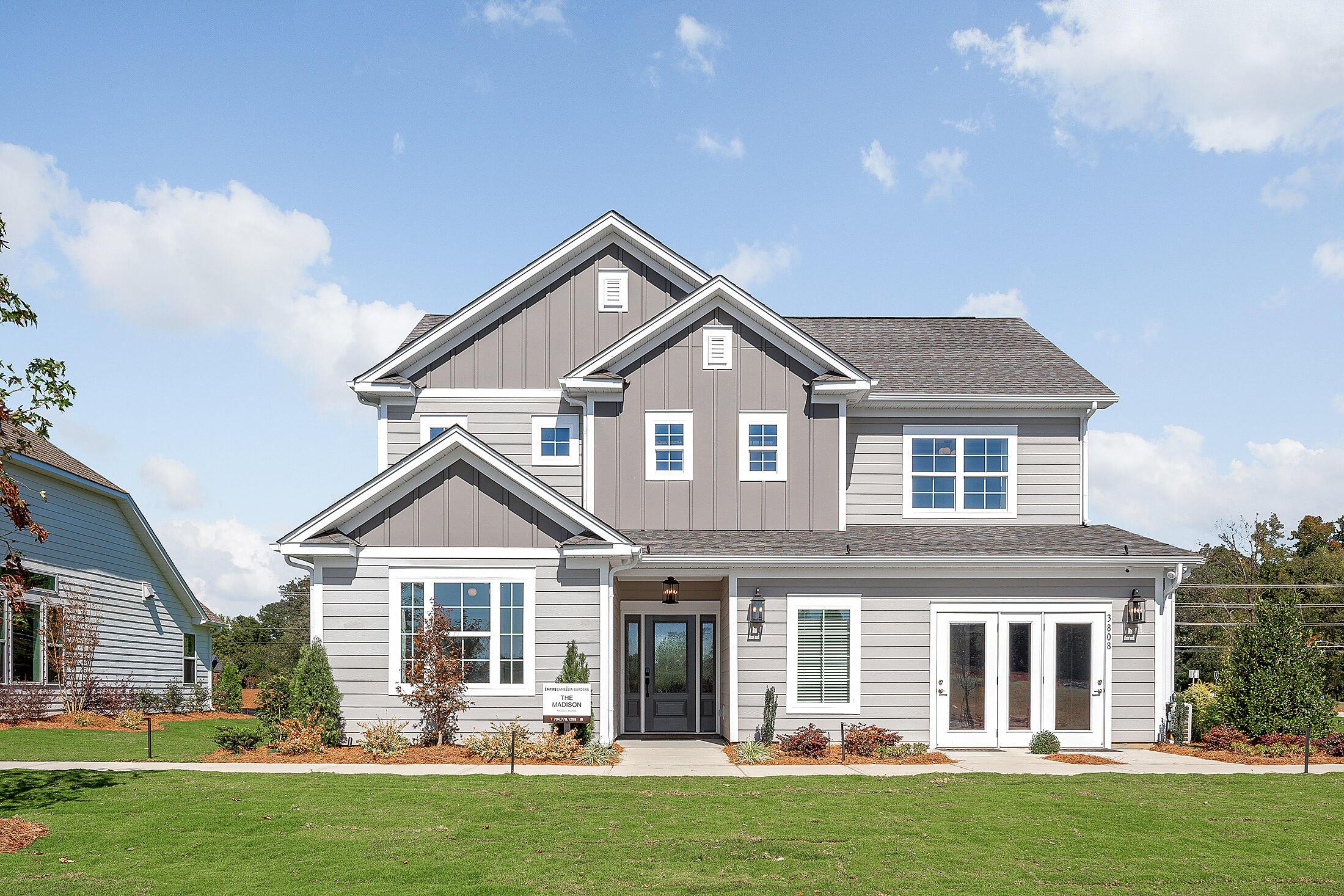 A smart use of space means the Madison plan provides plenty of options for a family to spread out in, from the loft and flex room, to the 4 bedrooms. Off the foyer is a guest bedroom with vaulted ceiling, and a Flex room where you can add French doors for a private space. Add a drop zone in the Mudroom for every day convenience. The kitchen includes a pantry closet and island, plus an L-shaped layout. The whole back of the home is a large, open layout, with the kitchen, dining and family room flowing together. The rear patio can be changed to a covered porch as well. Upstairs, a spacious loft greets you at the top of the steps. 2 bedrooms share a bathroom, plus there is a laundry room and the Premier Suite. This space enjoys two walk-in closets, a large shower, dual sinks, and a water closet. *The garage bumpout option is not available in this community. Tour our Madison model home at Camellia Gardens in Harrisburg.