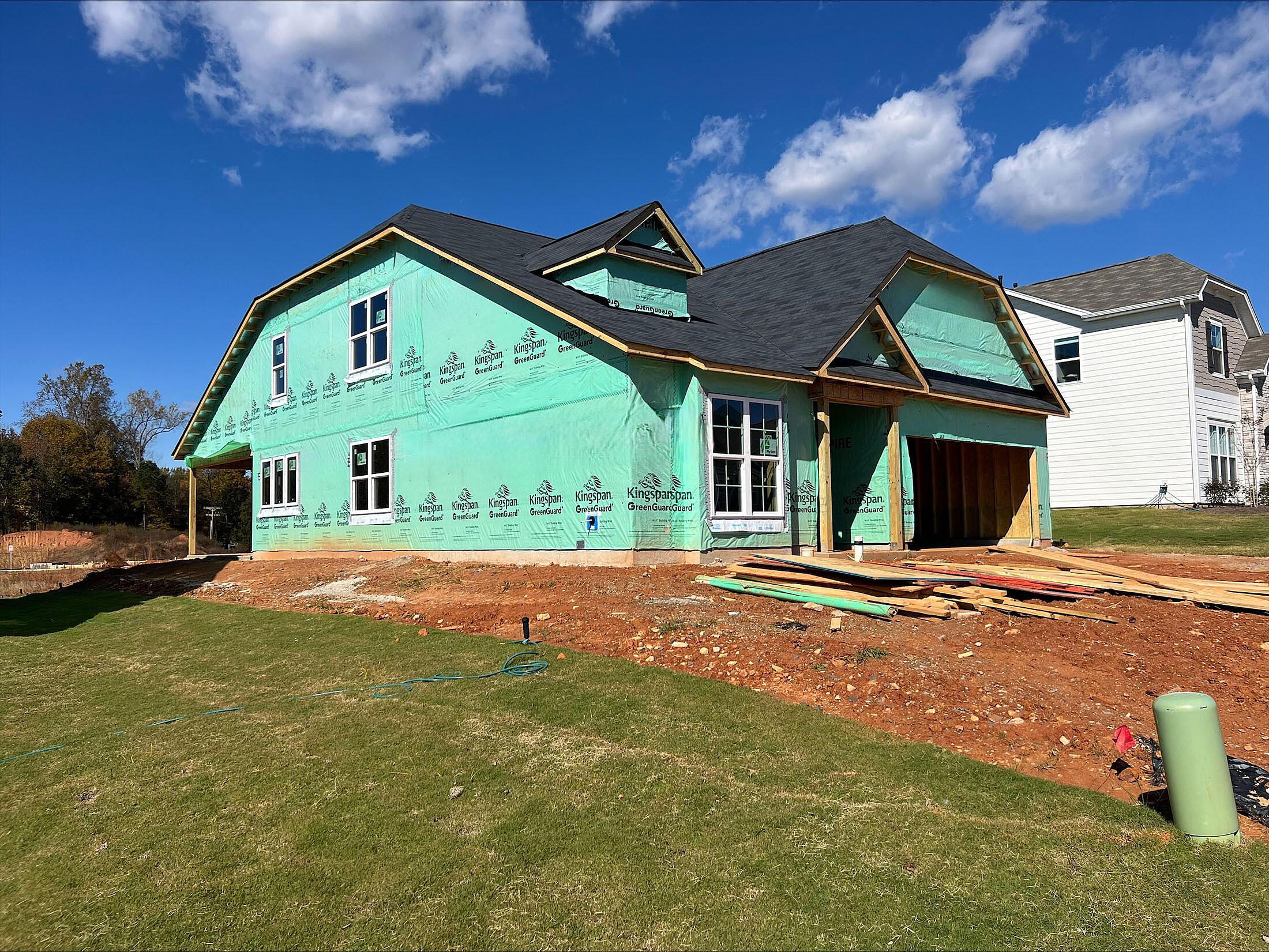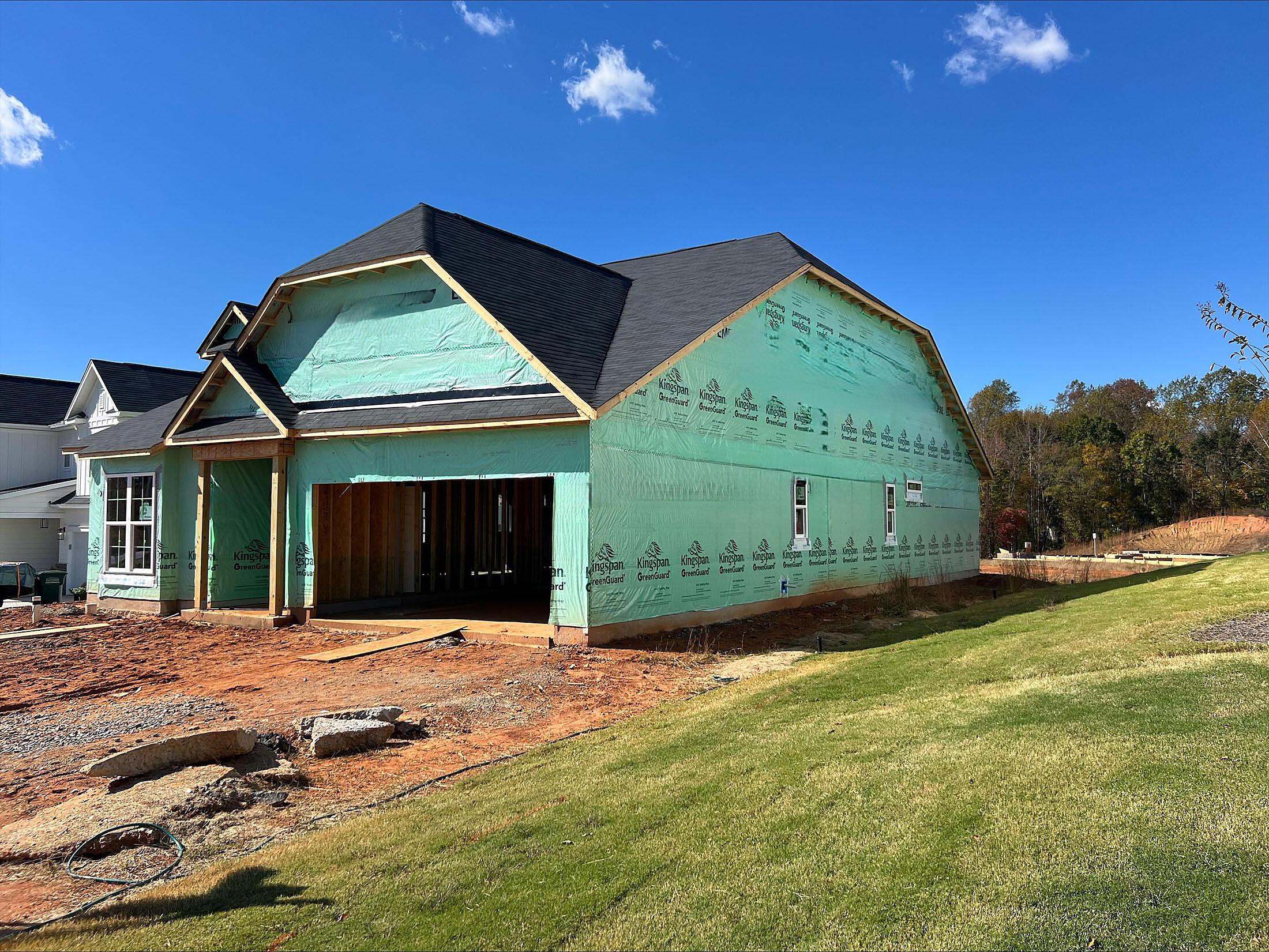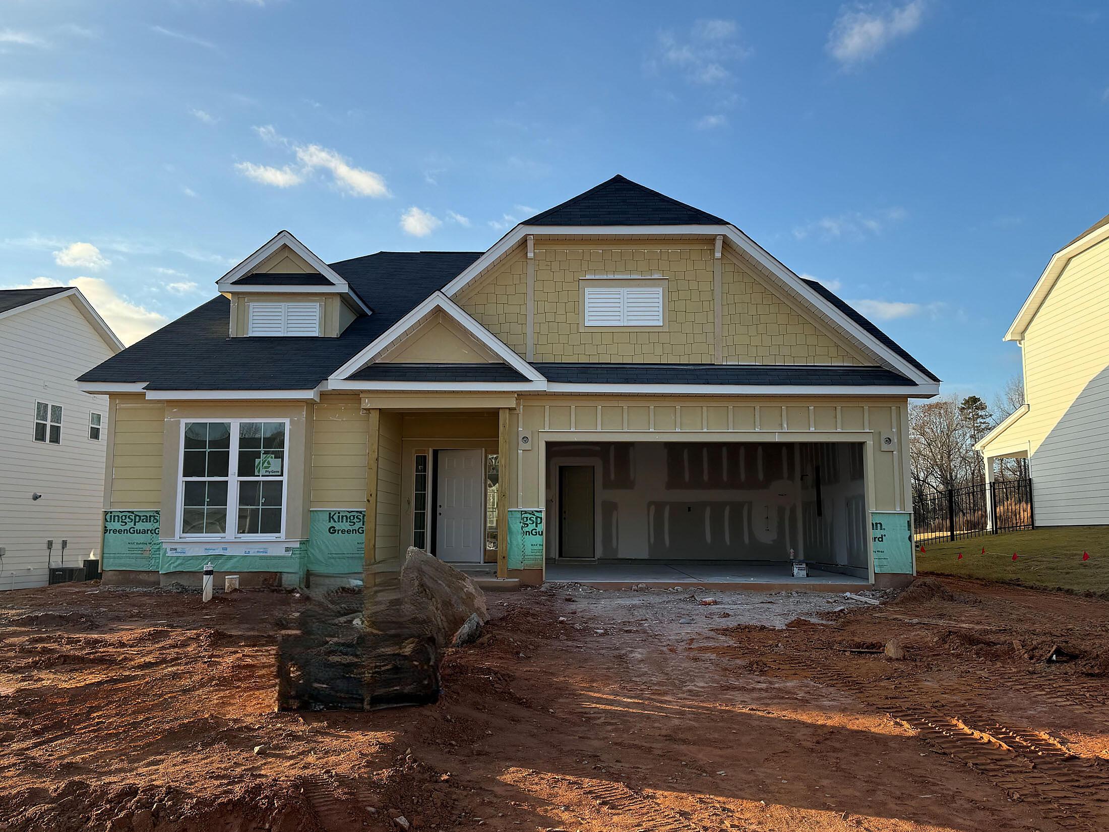 Enjoy first-floor living in this new 1.5-story home in Gastonia. The first floor has all the main living space, with a Rec Room, secondary bedroom and bath, plus unfinished storage space upstairs. Off the foyer is a guest bedroom and bath plus a Flex room. Beautiful, open-concept living with abundant windows for natural light; with the kitchen overlooking the dining area and family room. Kitchen features quartz counters, tile backsplash, GE stainless steel split cooking appliances with a 36″ gas cooktop and extraction hood, with dark graphite-stained cabinets at the perimeter and white cabinets at the island. Off the kitchen is a Butler’s Pantry which is great for entertaining, and a walk-in pantry. The Family room boasts a vaulted ceiling and gas fireplace with side niche. Enjoy the weather from the rear covered porch! Premier Suite has a tray ceiling, walk-in closet, and bathroom with large tiled shower with semi-frameless glass, quartz counters, and 12×24″ floor tiles. Full baths feature quartz counters and dark-stained cabinets. LVP flooring throughout most of the first floor, with oak treads on the stairs. The laundry room is tucked away off the mudroom, which features a built-in drop zone. Home includes energy-saving features of a tankless hot water heater and radiant barrier sheathing. Community pool and tot lot! Easy access to Uptown Charlotte and the airport.
