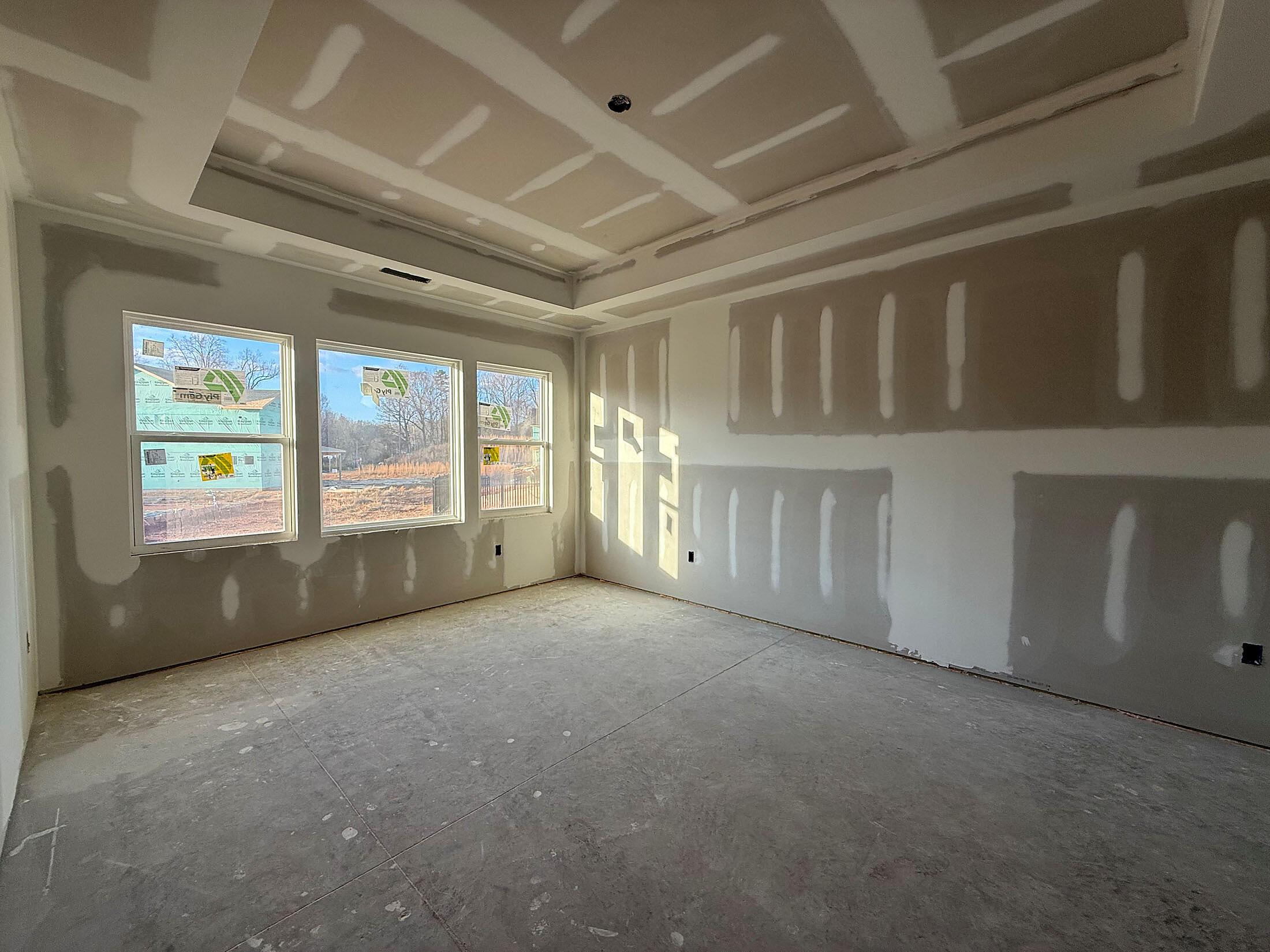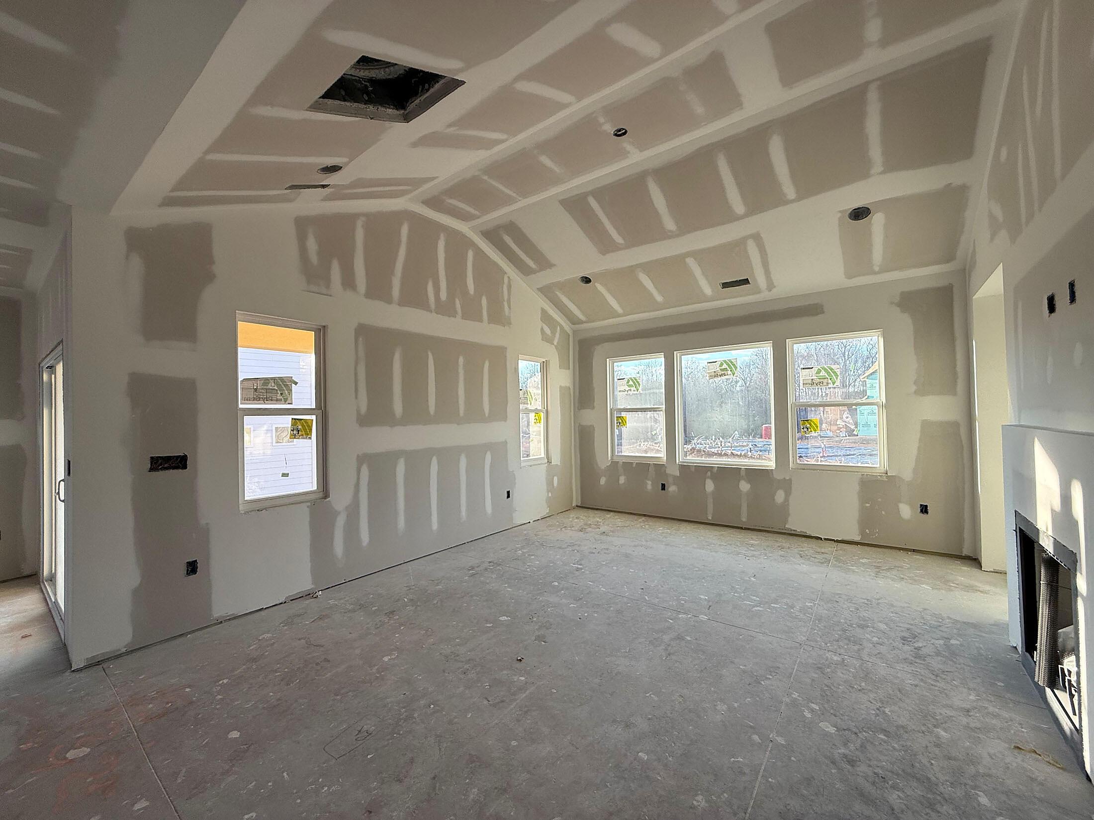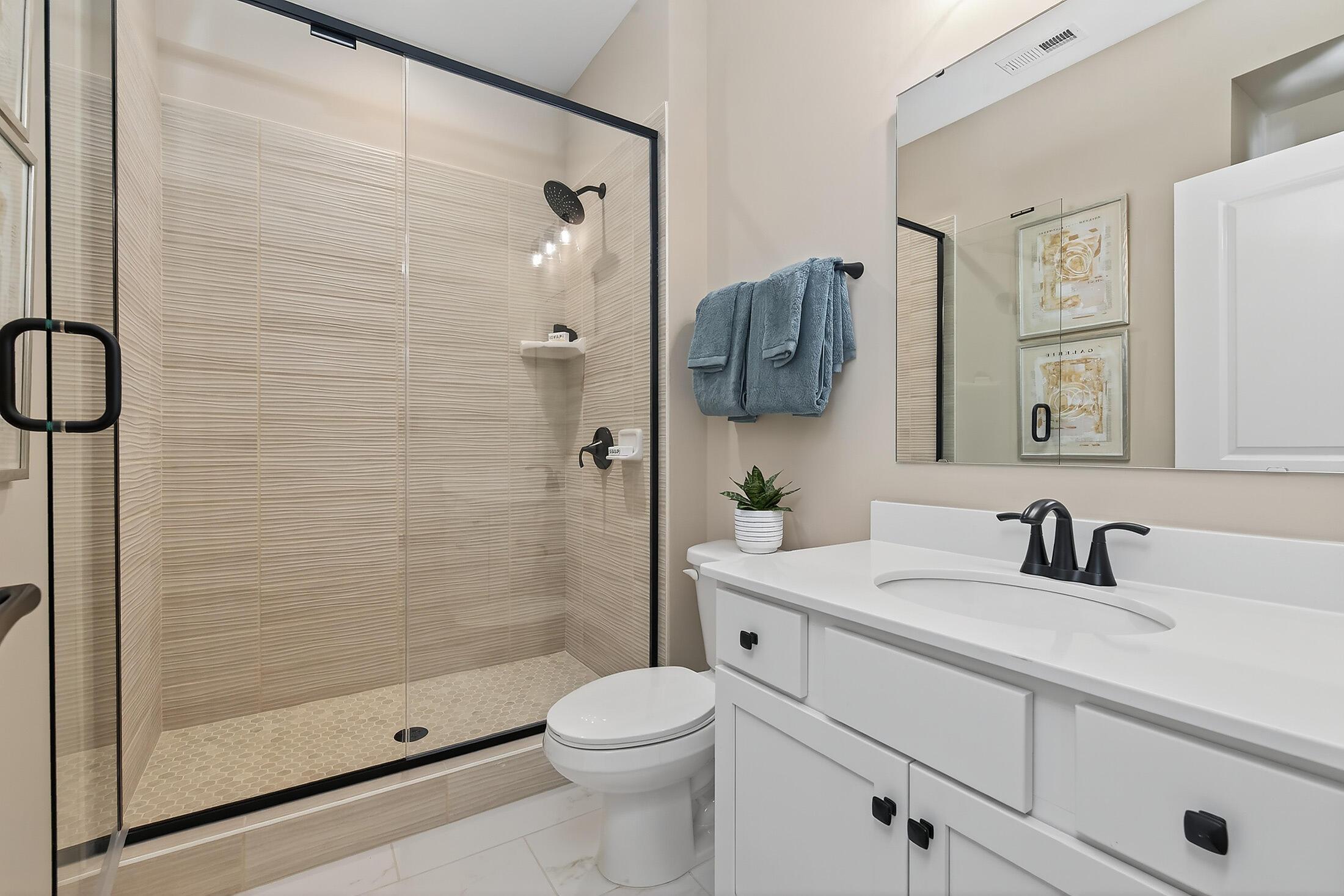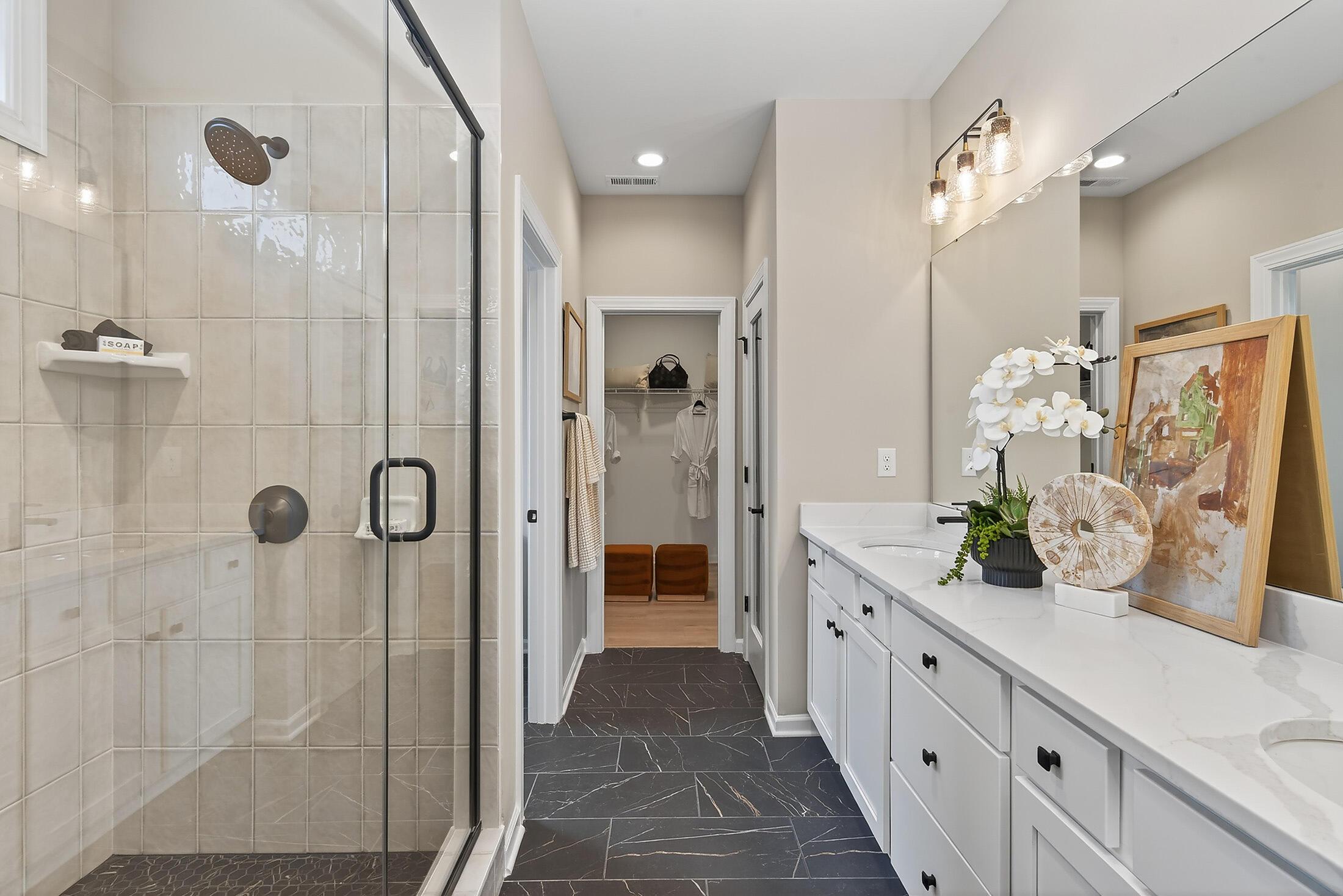 Enjoy first-floor living in this new 1.5-story home in Gastonia. The first floor has all the main living space, with a Rec Room, secondary bedroom and bath, plus unfinished storage space upstairs. Off the foyer is a guest bedroom and bath plus a Flex room. Beautiful, open-concept living with abundant windows for natural light; with the kitchen overlooking the dining area and family room. Kitchen features quartz counters, tile backsplash, GE stainless steel split cooking appliances with a 36″ gas cooktop and extraction hood, with dark graphite-stained cabinets at the perimeter and white cabinets at the island. Off the kitchen is a Butler’s Pantry which is great for entertaining, and a walk-in pantry. The Family room boasts a vaulted ceiling and gas fireplace with side niche. Enjoy the weather from the rear covered porch! Premier Suite has a tray ceiling, walk-in closet, and bathroom with large tiled shower with semi-frameless glass, quartz counters, and 12×24″ floor tiles. Full baths feature quartz counters and dark-stained cabinets. LVP flooring throughout most of the first floor, with oak treads on the stairs. The laundry room is tucked away off the mudroom, which features a built-in drop zone. Home includes energy-saving features of a tankless hot water heater and radiant barrier sheathing. Community pool and tot lot! Easy access to Uptown Charlotte and the airport.