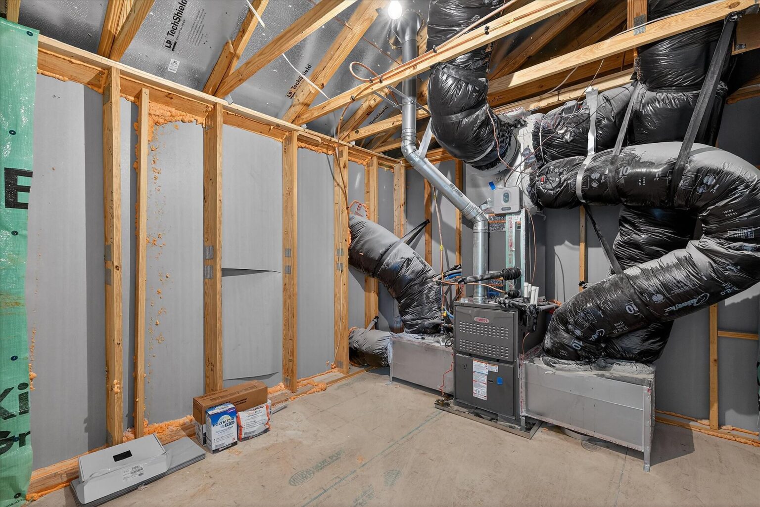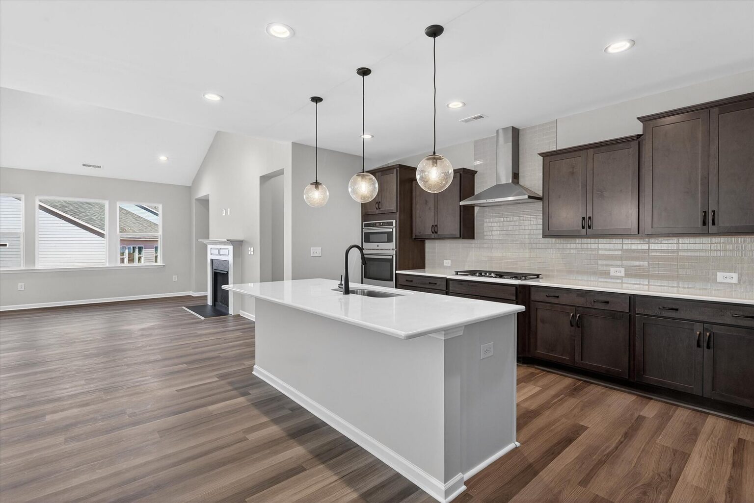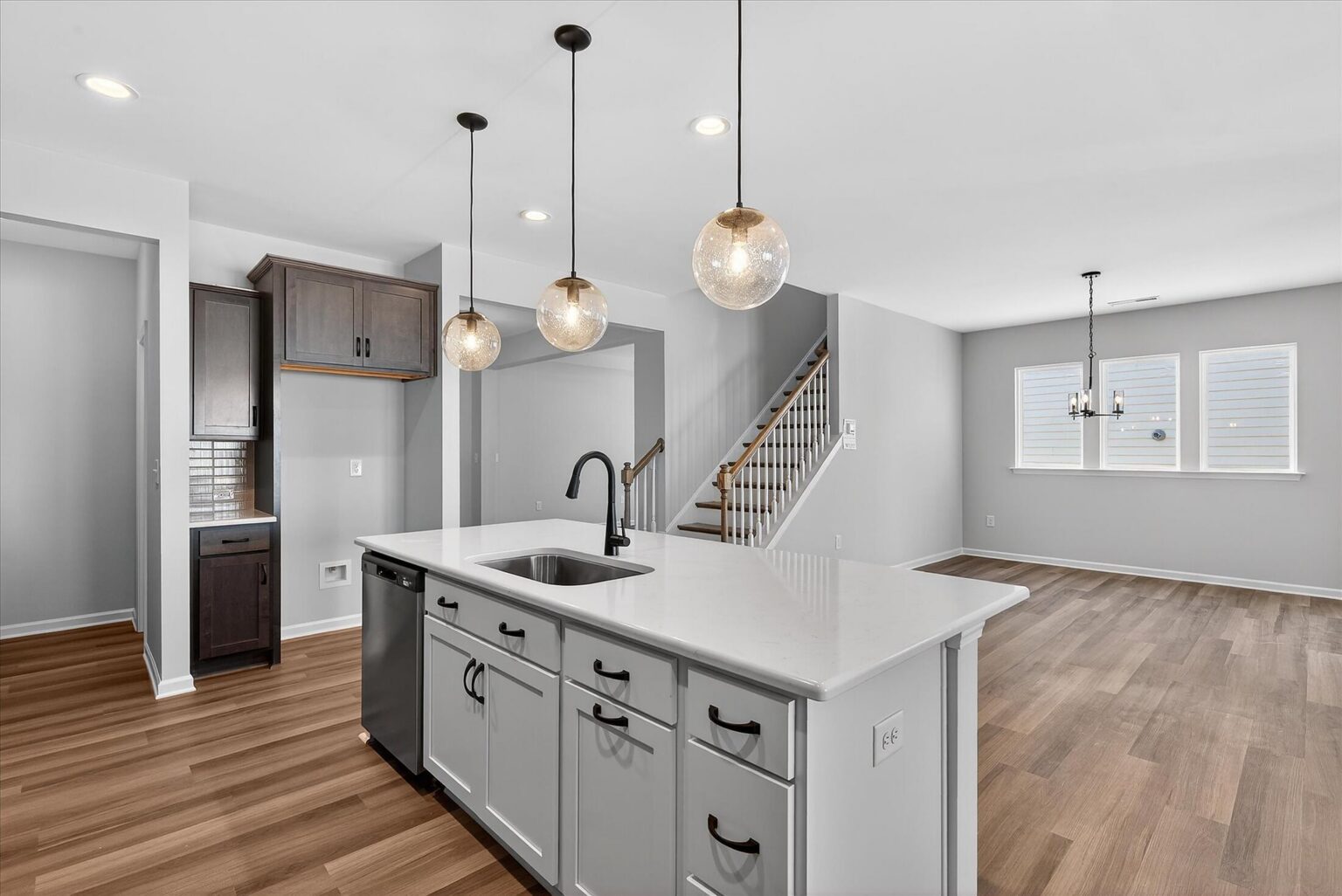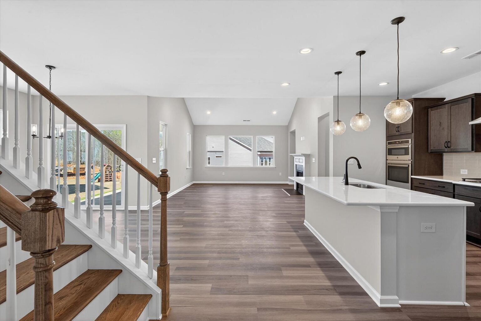 Enjoy first-floor living in this new 1.5-story home in Gastonia. The first floor has all the main living space, with a Rec Room, secondary bedroom and bath, plus unfinished storage space upstairs. Off the foyer is a guest bedroom and bath plus a Flex room. Beautiful, open-concept living with abundant windows for natural light; with the kitchen overlooking the dining area and family room. Kitchen features quartz counters, tile backsplash, GE stainless steel split cooking appliances with a 36" gas cooktop and extraction hood, with dark graphite-stained cabinets at the perimeter and white cabinets at the island. Off the kitchen is a Butler's Pantry which is great for entertaining, and a walk-in pantry. The Family room boasts a vaulted ceiling and gas fireplace with side niche. Enjoy the weather from the rear covered porch! Premier Suite has a tray ceiling, walk-in closet, and bathroom with large tiled shower with semi-frameless glass, quartz counters, and 12x24" floor tiles. Full baths feature quartz counters and dark-stained cabinets. LVP flooring throughout most of the first floor, with oak treads on the stairs. The laundry room is tucked away off the mudroom, which features a built-in drop zone. Home includes energy-saving features of a tankless hot water heater and radiant barrier sheathing. Community pool and tot lot! Easy access to Uptown Charlotte and the airport. Estimated Completion: March
