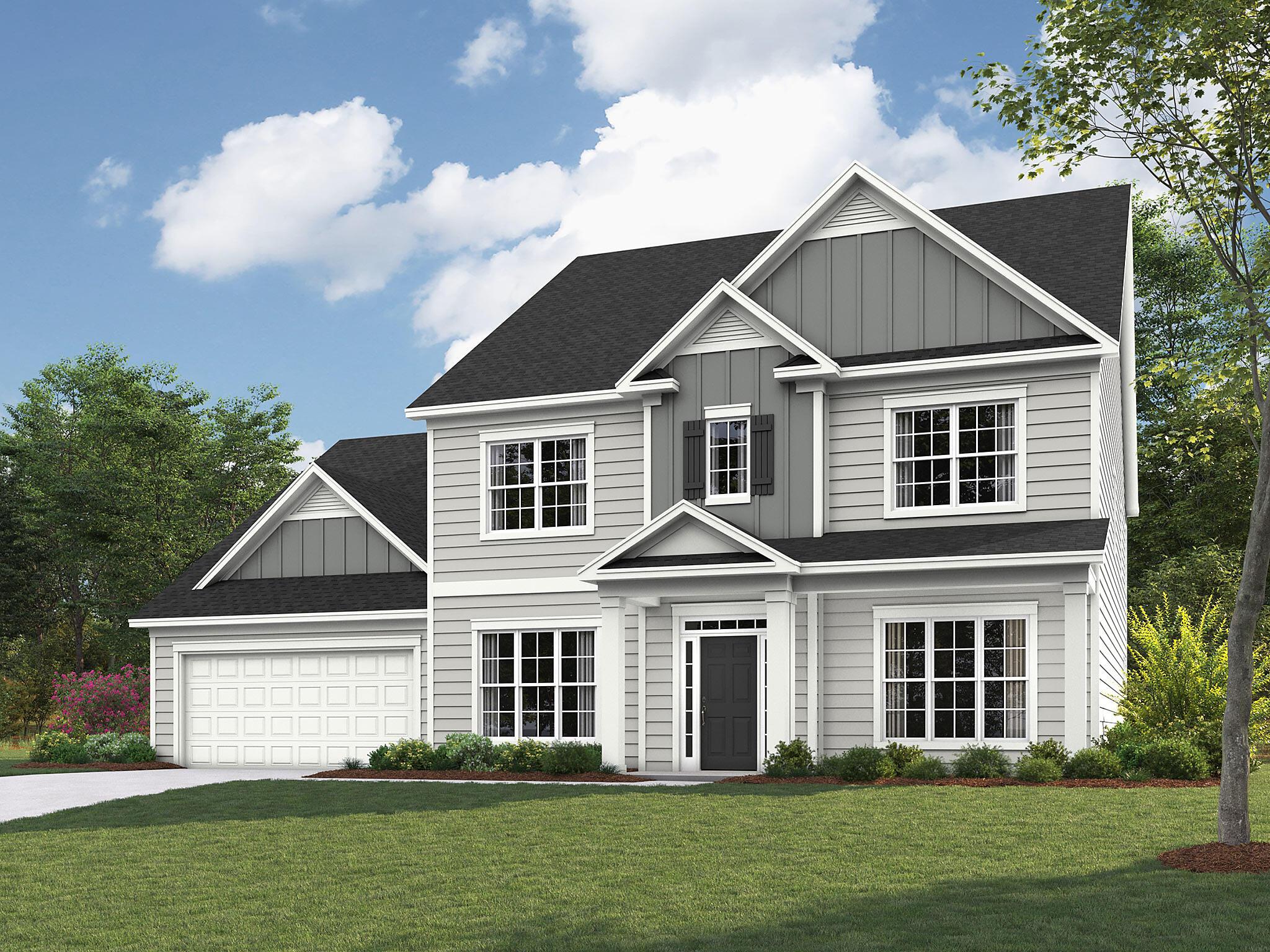 The Chandler offers versatile spaces. Off the 2-story foyer is a formal Living Room which may have French doors added. Opposite that is a large Dining Room, able to host large gatherings. A walk-through Butler’s Pantry leads to the kitchen; cabinets may be added here, and there is also a large walk-in pantry. This space may be converted to a Planning room, to have a small office off the Kitchen. The Kitchen offers an island and abundant counter and cabinet space; it flows into the Breakfast room which is wrapped in windows and leads to the rear patio, or make this a covered porch. The Family Room includes a gas fireplace and two niches for built-ins. The first floor is rounded out with a Mudroom and a first-floor guest suite with private bath. Upstairs is a Rec Room which may be converted into a 5th bedroom with private bath. Also included are the laundry room and two secondary bedrooms which share a Jack & Jill bath. The Premier suite offers a tray ceiling option; the bathroom has a large vanity with double sinks, soaking tub, large shower, and an extensive walk-in closet. There is space to add unfinished walk-in storage or a Bonus Room over the garage. **All homes at Camellia Gardens will have front entry garages.