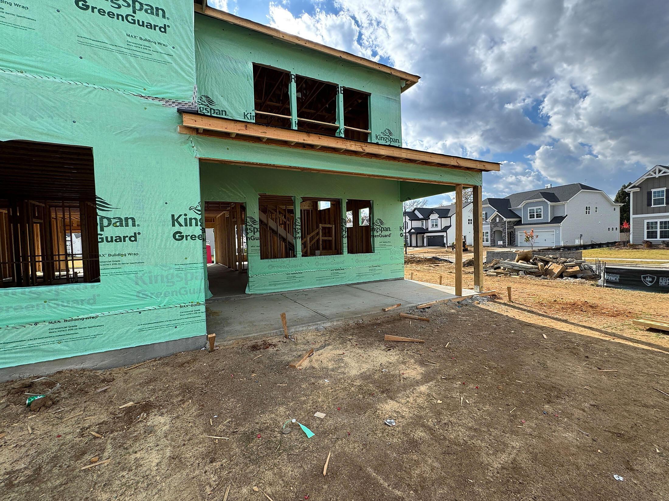 With 5 bedrooms and 4 baths, this spacious new home in Harrisburg is situated on a .29 acre corner homesite, not far from the community clubhouse, pool, tot lot, and walking trails. It offers a first-floor guest bedroom and full bath with walk-in tiled shower, with a second-floor Primary Suite. Lovely open layout is great for entertaining, with the large Kitchen overlooking the living and dining space, and large windows for natural light. Kitchen features 42″ light grey perimeter cabinets, with stained cabinets at the island, quartz counters, tile backsplash, soft close doors and drawers, double trash pullout, and GE Profile stainless steel 36″ gas cooktop with extraction hood, plus wall oven and microwave, large undermount stainless sink, and sleep matte black Moen faucet. Off the kitchen is a large walk-in pantry and mudroom with built-in drop zone. The Family room has a gas fireplace flanked by 2 cabinets, and the dining room flows to the large rear covered porch. Upstairs is a spacious Loft. The Premier Suite includes a tray ceiling and very large walk-in closet; roomy bathroom features quartz counters, stained cabinets, tiled floor, and large tiled shower with matte black hardware. Nice-sized secondary bedrooms; 2 share a Jack & Jill bath, plus there is a hall bath. Secondary baths include quartz counters, stained cabinets, and tiled floors. LVP flooring is throughout most of the main floor and the Loft, with oak treads on the stairs. The Craftsman-style exterior offers painted Hardie fiber cement siding with stone and shake accents, plus a carriage-style garage door. Community is located across the street from Stallings Road Park, and is very convenient to I-85.