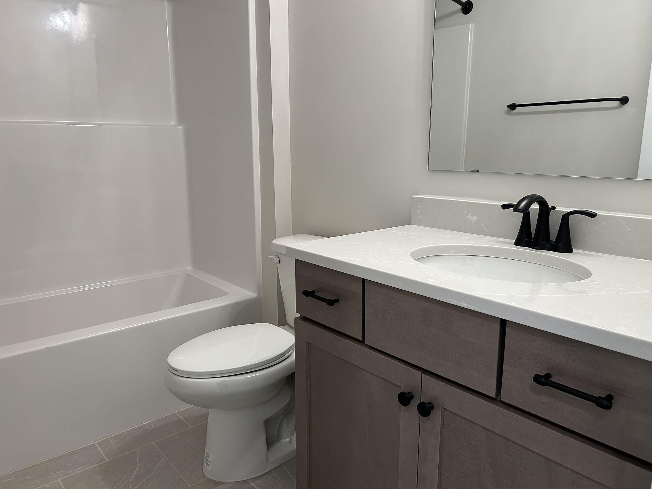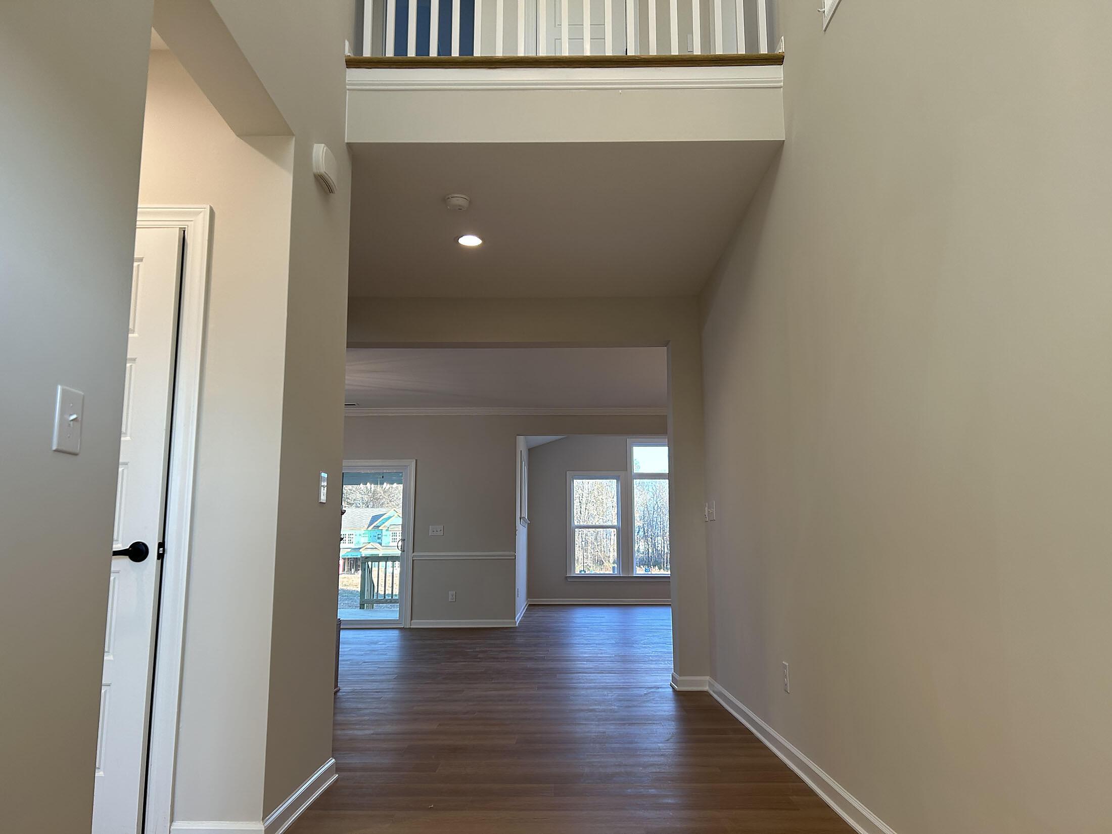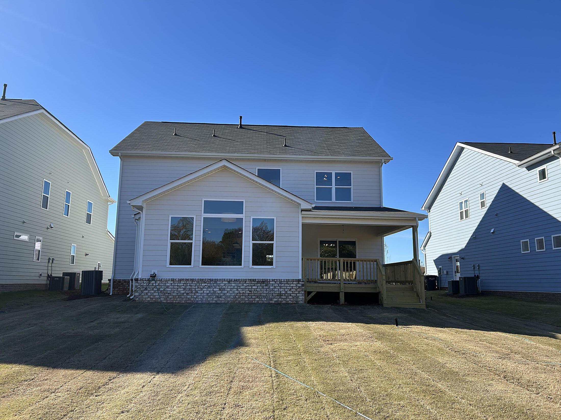 Charming home with a 2-story foyer and Craftsman-style exterior featuring Hardie® plank siding with board & batten and stone accents. It is situated on a .22 acre west-facing homesite with a spacious grassy rear yard, walking distance from the amenity center, which is under construction. Off the foyer is a guest bedroom and full bath with a tiled walk-in shower. The large dining area leads to the rear covered deck, and the Family room has a vaulted ceiling and gas fireplace. Nicely upgraded Kitchen includes quartz counters, pearl mosaic tile backsplash, 42″ cream painted shaker perimeter cabinets with warm gray stained wood cabinets at the island, soft-close doors & drawers, double trash pullout, and drawer stack, plus GE stainless steel appliances with a 36″ Profile gas cooktop and wall oven/microwave. Tucked off the kitchen is a mudroom with walk-in pantry and built-in drop zone, plus space to add a desk. Upstairs, you’ll find a long Rec Room and the Premier Suite, with tray ceiling and walk-in closet. The bath has a soaking tub and separate tiled shower, quartz counter, white cabinets, matte black hardware, and tiled floors. Secondary baths feature quartz counters, warm gray stained cabinets, matte black hardware, and tiled floors. Low maintenance light warm-toned LVP flooring is thoughout most of the main floor plus second floor hallway, with tile in all baths and laundry room. Stairs have oak-stained treads.