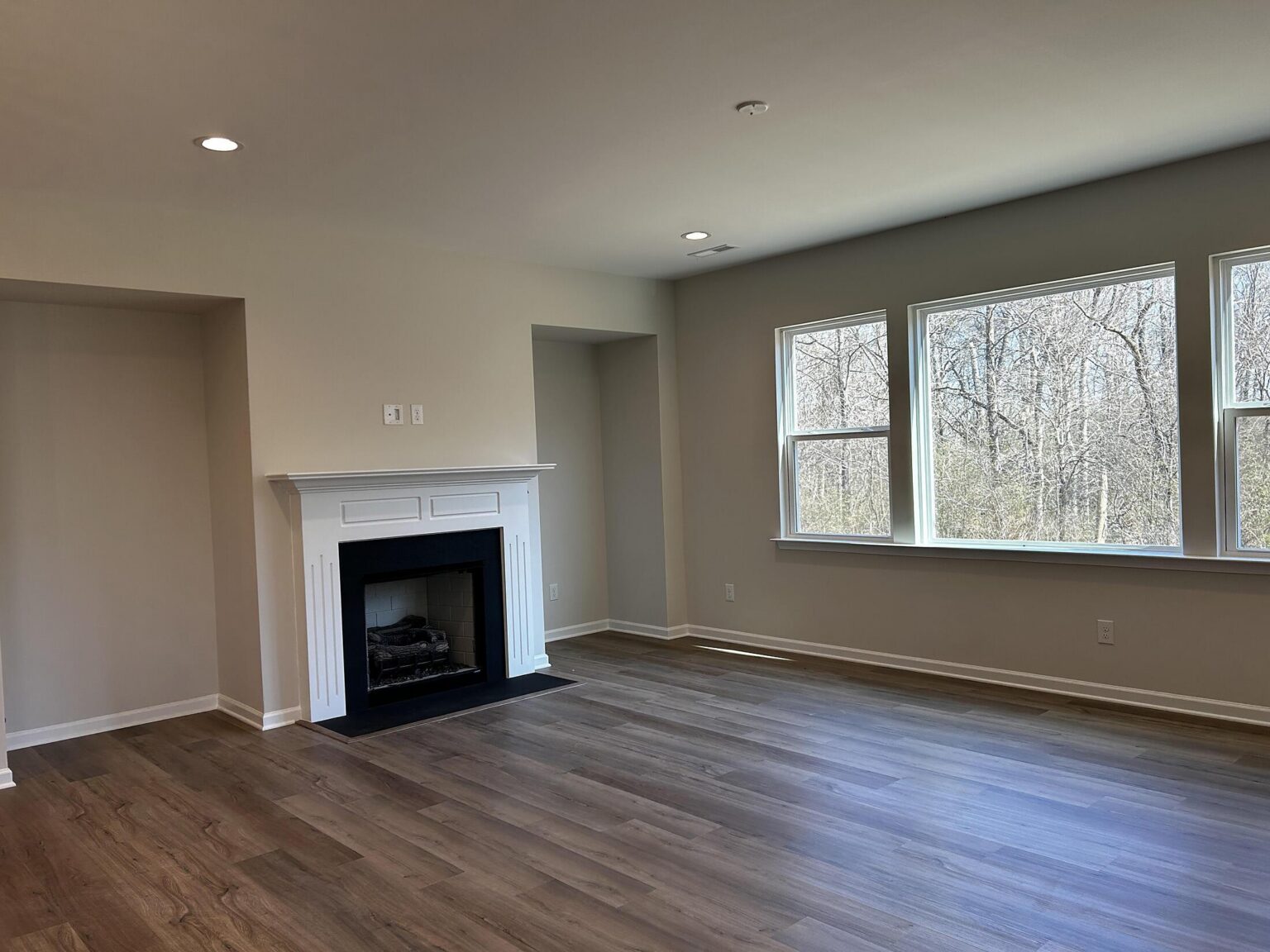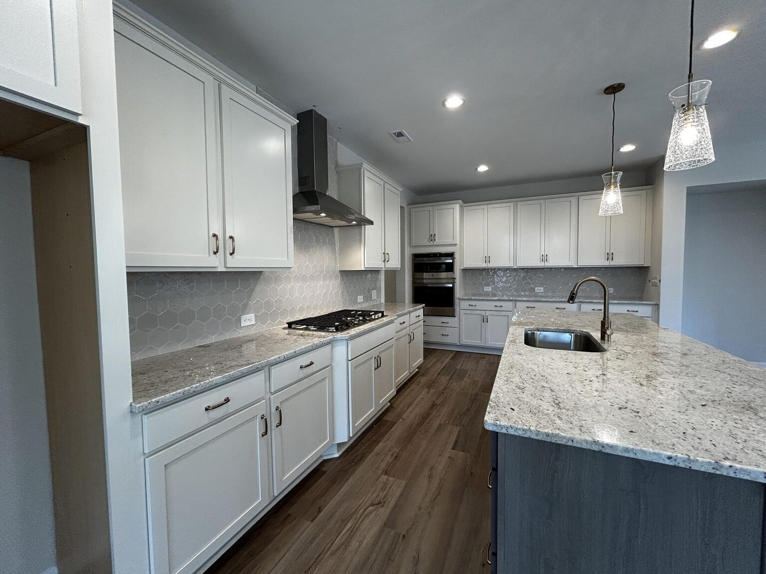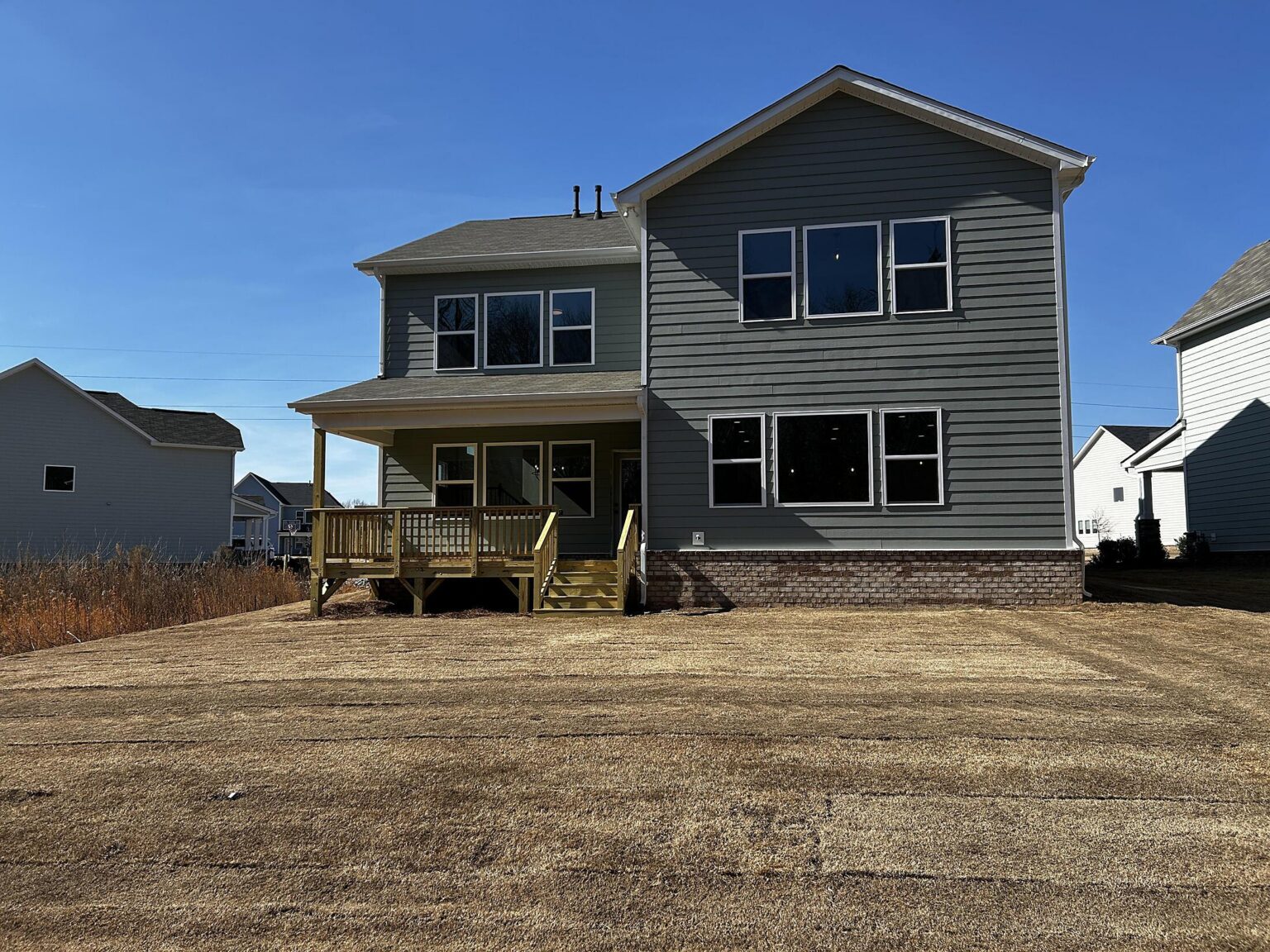 This spacious home has a large, private rear yard backing up to mature trees, with common open space on one side, and a pocket park across the street. It’s a short walk to the natural walking trails and amenity center, which opens in 2026. Charming Craftsman-style home features Hardie® cement siding with brick accents and a carriage-style garage door with a window panel. The open layout makes this home ideal for entertaining. The kitchen overlooks the Family room, which has a gas fireplace, and the Dining area flows to the rear covered porch. Behind the kitchen is a mudroom with built-in drop zone plus a large walk-in pantry. Gourmet kitchen features 42” light painted perimeter cabinets with stained cabinets at the island, soft close doors and drawers, double trash pullout, Colonial White granite countertops, tile backsplash, and a large undermount sink, plus GE stainless steel split cooking appliances with a 36” gas cooktop and extraction hood vented outside. Off the foyer is a guest bedroom and bath with walk-in tiled shower. Upstairs you’ll find a large primary suite with tray ceiling, huge walk-in closet, and bathroom with tiled shower, separate soaking tub, quartz counter, and stained cabinets. 2 bedrooms share a Jack & Jill bath. Spacious loft provides additional gathering space. Secondary baths have quartz counters and stained cabinets. Warm medium-toned LVP flooring throughout most of the first floor, Loft, and secondary baths. Stairs feature stained oak treads and wrought iron balusters. Community is around the corner from Porter Ridge Schools, with easy access to the Hwy 74 Bypass.