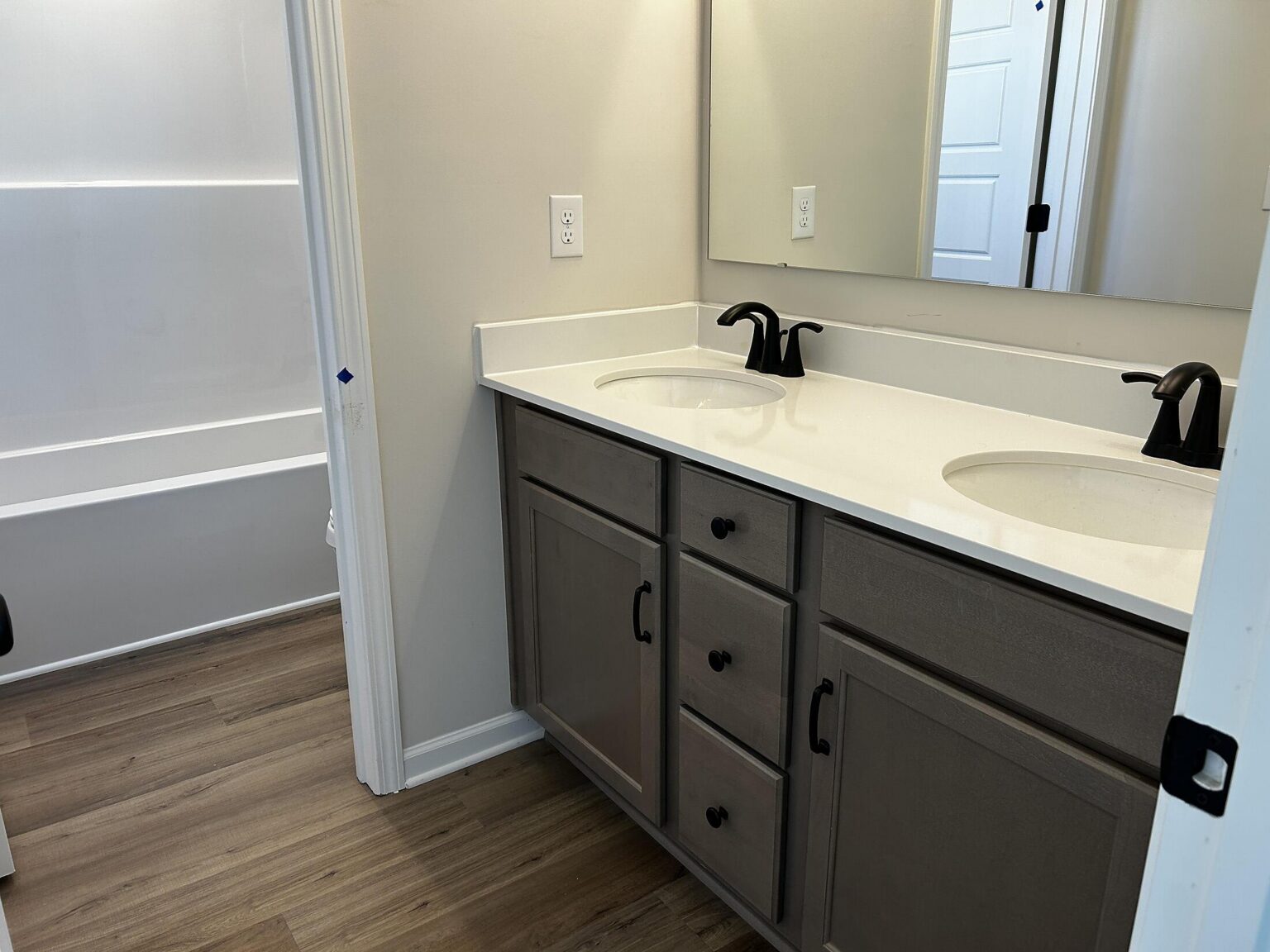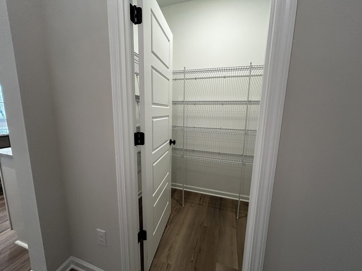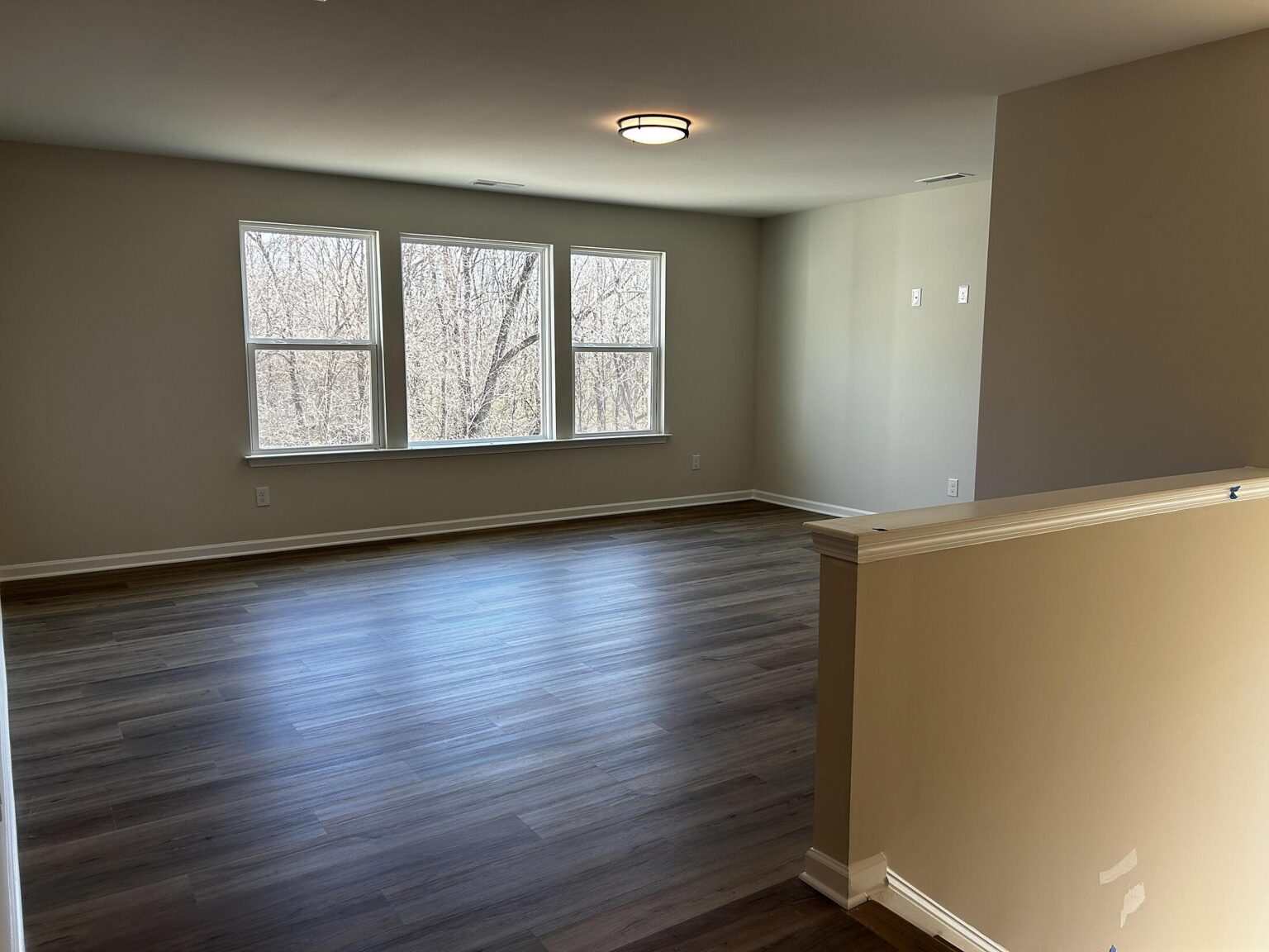 This spacious home has a large, private rear yard backing up to mature trees, with common open space on one side, and a pocket park across the street. It’s a short walk to the natural walking trails and amenity center, which opens in 2026. Charming Craftsman-style home features Hardie® cement siding with brick accents and a carriage-style garage door with a window panel. The open layout makes this home ideal for entertaining. The kitchen overlooks the Family room, which has a gas fireplace, and the Dining area flows to the rear covered porch. Behind the kitchen is a mudroom with built-in drop zone plus a large walk-in pantry. Gourmet kitchen features 42” light painted perimeter cabinets with stained cabinets at the island, soft close doors and drawers, double trash pullout, Colonial White granite countertops, tile backsplash, and a large undermount sink, plus GE stainless steel split cooking appliances with a 36” gas cooktop and extraction hood vented outside. Off the foyer is a guest bedroom and bath with walk-in tiled shower. Upstairs you’ll find a large primary suite with tray ceiling, huge walk-in closet, and bathroom with tiled shower, separate soaking tub, quartz counter, and stained cabinets. 2 bedrooms share a Jack & Jill bath. Spacious loft provides additional gathering space. Secondary baths have quartz counters and stained cabinets. Warm medium-toned LVP flooring throughout most of the first floor, Loft, and secondary baths. Stairs feature stained oak treads and wrought iron balusters. Community is around the corner from Porter Ridge Schools, with easy access to the Hwy 74 Bypass.