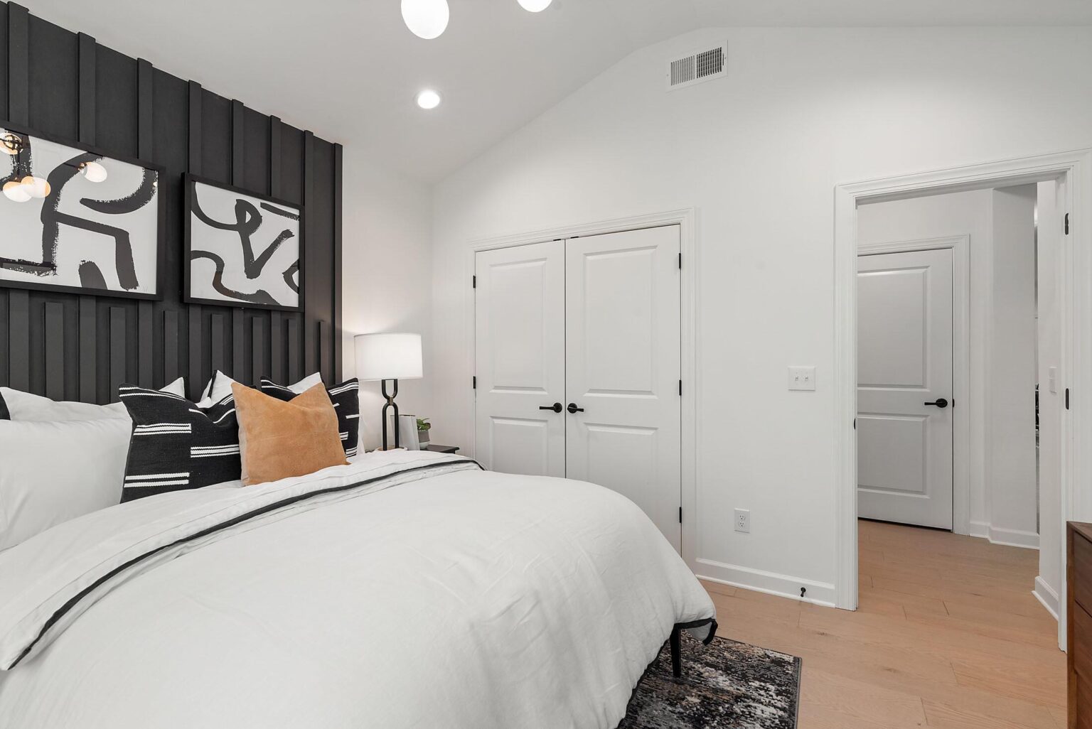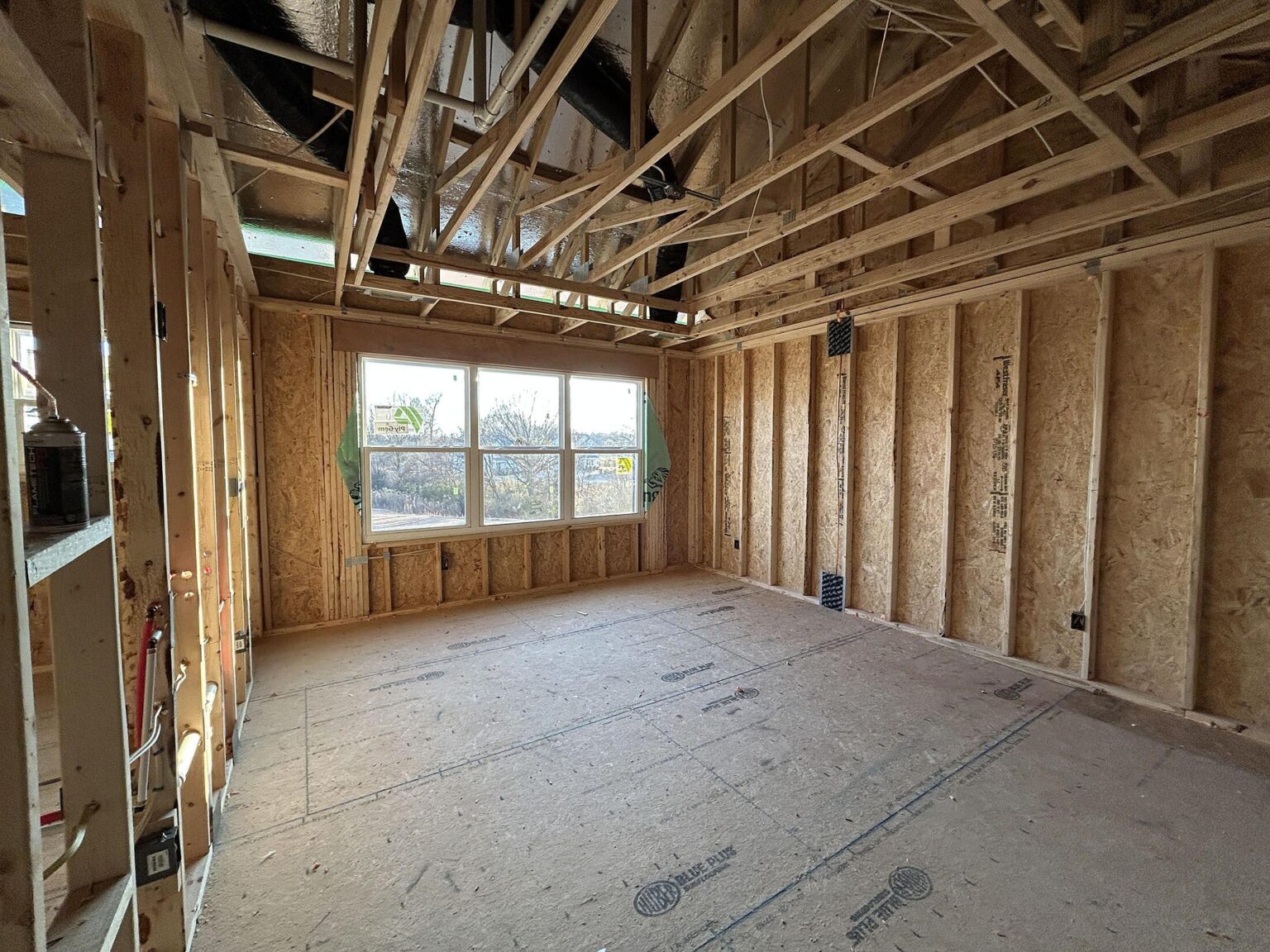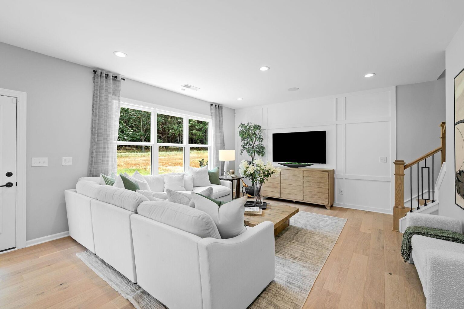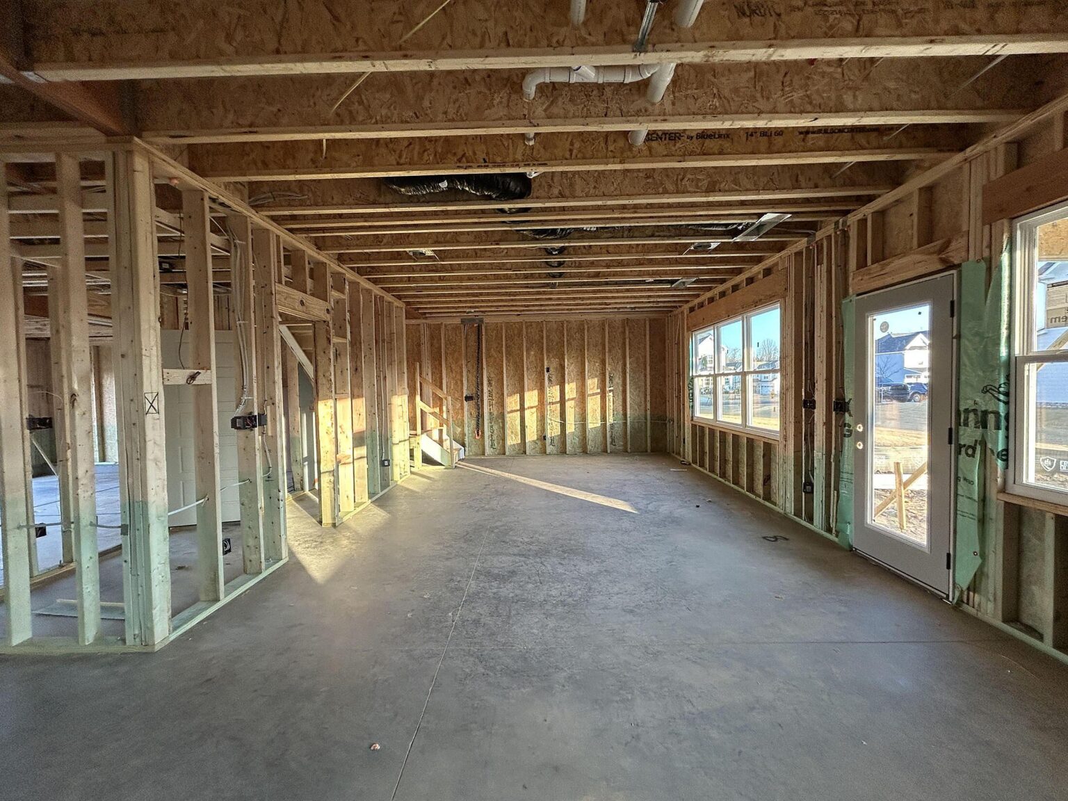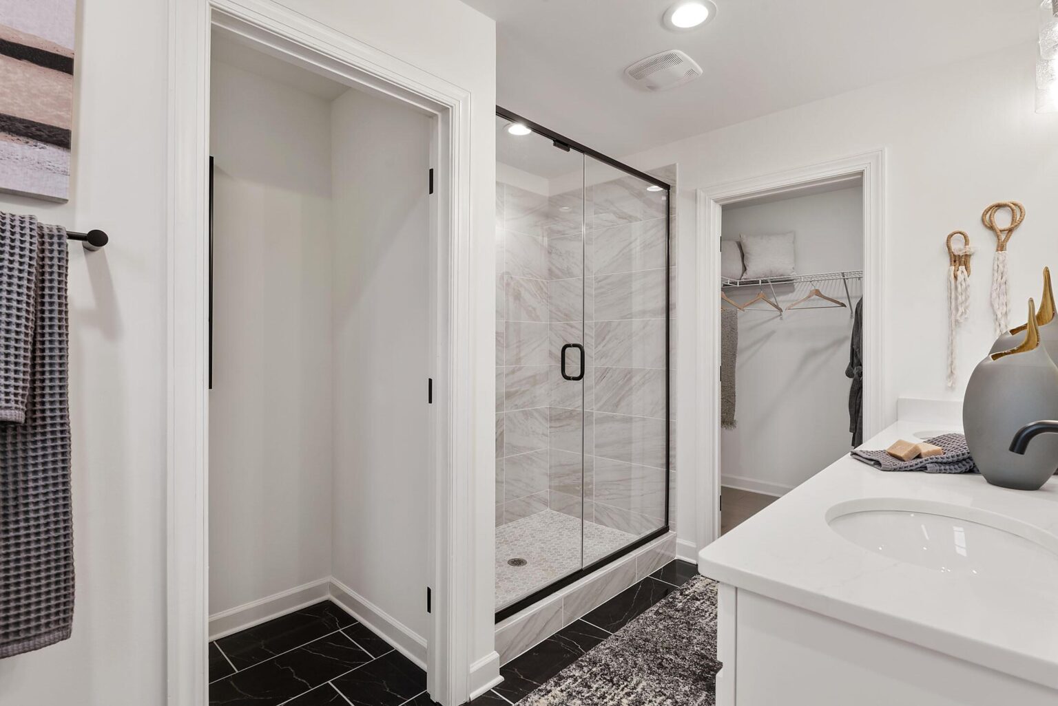 New home in Indian Trail assigned to Porter Ridge schools! It is located across from the community pool and tot lot, which opens this year. This versatile home has plenty of space, with a first-floor guest bedroom with a vaulted ceiling and bathroom with walk-in shower, a flex room with French doors, and a rear covered deck overlooking the spacious, mostly flat backyard. Open layout at the back of the home is great for entertaining. The Kitchen features a pantry closet, 42″ stained shaker-style cabinets with soft-close doors and drawers, a trash pull-out cabinet, quartz counters, tile backsplash, large stainless undermount sink, matte black hardware with a Moen faucet, and GE stainless steel appliances with a 36″ Profile gas cooktop, extraction hood vented outside, and Profile wall oven and microwave. The mudroom has a long storage closet tucked away under the stairs. Upstairs you’ll find a spacious Loft for additional gathering space, 2 secondary bedrooms, and the laundry room. The Premier Suite includes a tray ceiling, two walk-in closets, and bathroom with quartz counter, stained shaker-style cabinets, large tiled shower with 12″ x 24″ tiles, tiled floor, and brushed nickel hardware. Medium-toned LVP flooring is throughout most of the first floor, Loft, secondary baths and laundry, with oak treads on the stairs. The exterior of the home includes Hardie cement siding with brick accents and a covered front porch, plus carriage-style garage doors with a window panel. Home is just down the street from the community natural walking trails.
