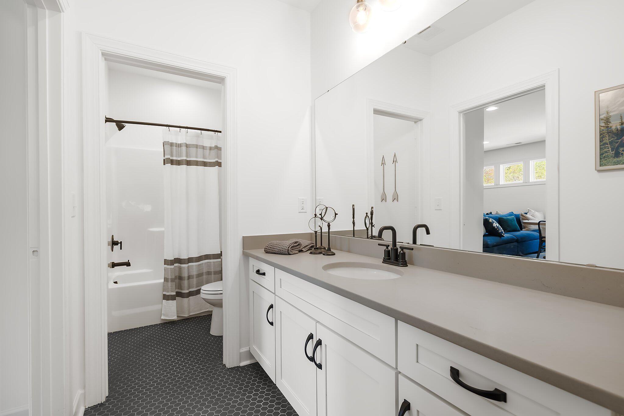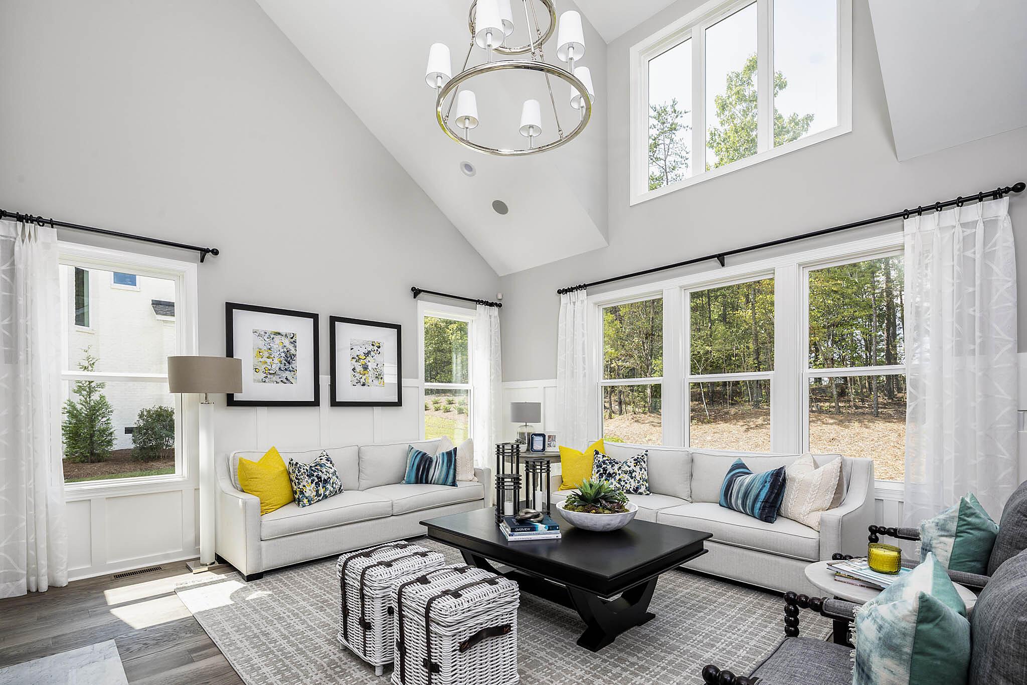 Elegant details and large gathering spaces make the Alpine a great home for family and friends. Archways lead from the foyer, past the Dining room, Study, and staircase, and on to the expansive Family/Morning room. This beautiful room features a vaulted ceiling, fireplace in the Family room, and the option to add one in the Morning room. The abundance of windows creates an open, airy feel, full of natural light. The open kitchen includes a built-in bar and overlooks this space, which is a fabulous area for gatherings, large and small. A convenient Butler’s Pantry connects the Dining room to the Kitchen. Take entertaining outdoors by adding a large covered porch off the Morning room. The first floor features a Premier Suite with two walk-in closets, two vanities, soaking tub and shower. Off the garage entry is a generous Hobby/Laundry room. Upstairs, 2 bedrooms share a Jack & Jill bath, and another secondary bedroom has an adjoining full bath. The Teen room overlooks the Morning room and can have a built-in workstation with desks. The Bonus room includes unfinished storage; you may extend the Bonus room or add a large Guest suite. Basement options are available. Tour our Alpine model home at River Reserve in Greer, SC.