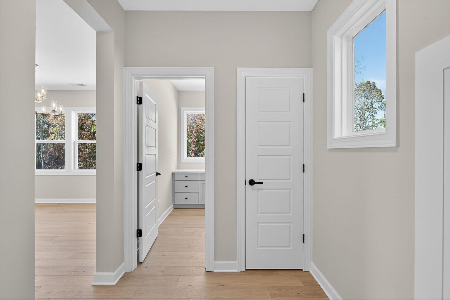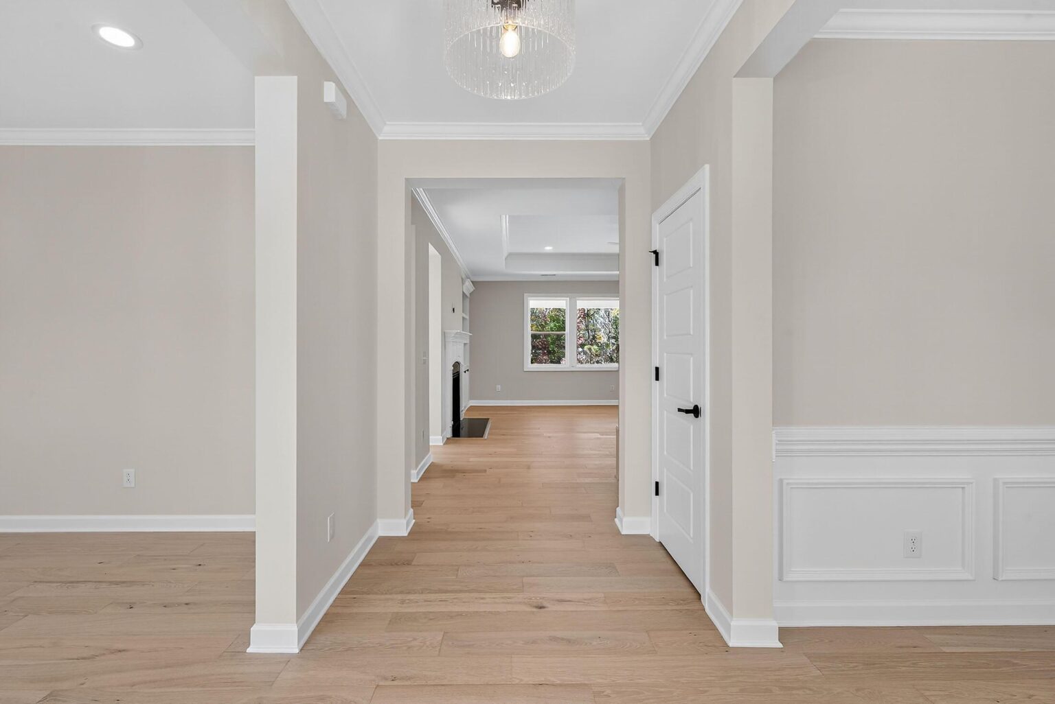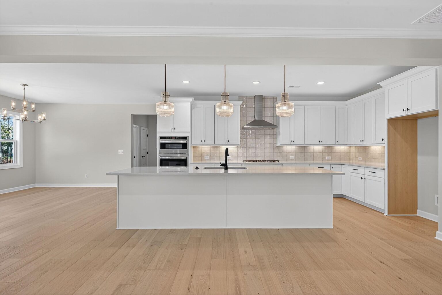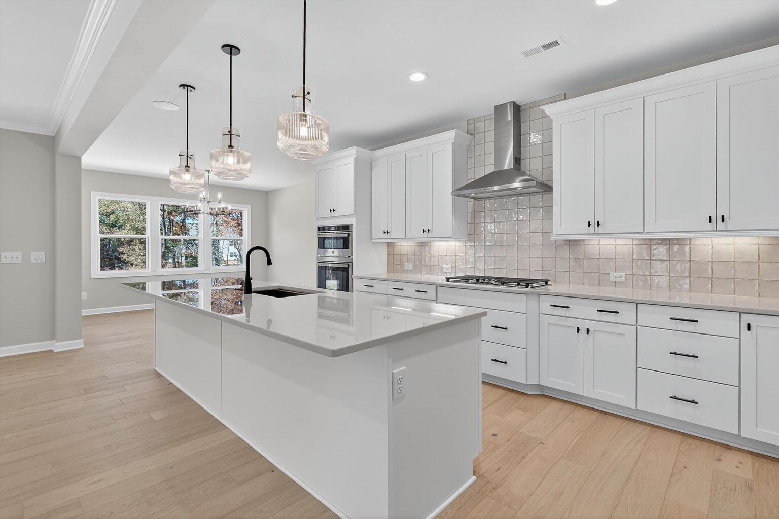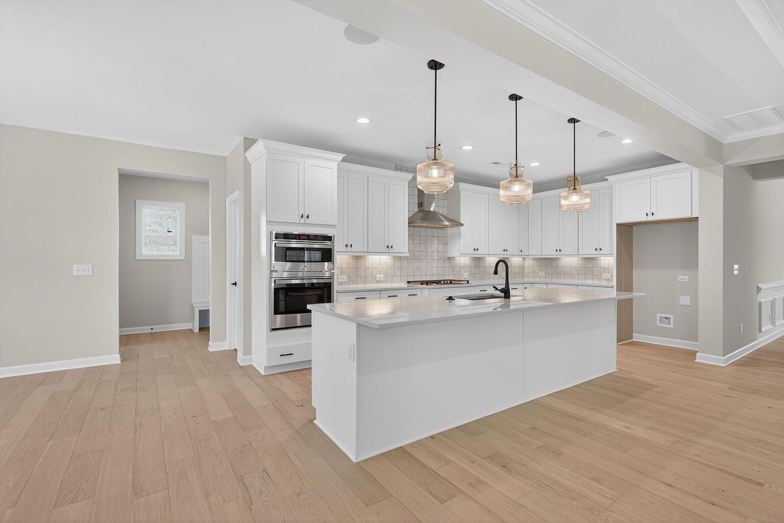 Welcome to this stately home in Mint Hill with 4 bedrooms and 3.5 baths, where surprises await throughout. The .46 acre homesite backs up to mature trees. The 3-car garage also includes extra storage space and has a side service door. Off the foyer are two formal rooms and a half bath. The Family Room has a tray ceiling and double-sided fireplace with marble surround and media cabinet plus two floating shelves; the fireplace is shared with the Sunroom, which is tucked away at the back of the home. The long Kitchen includes 42″ white cabinets, soft-close doors & drawers, GE Profile stainless steel appliances with a 36″ gas cooktop and extraction hood vented outside, quartz counters, tile backsplash, large undermount stainless sink, and matte black hardware. It flows into the Breakfast Room, which leads to the rear covered porch. Just off the kitchen is a walk-in pantry and mudroom with built-in drop zone, and a separate office with built-in desk. Upstairs, two bedrooms share a Jack & Jill bath, and a third bedroom has a private bath with walk-in shower. A large Rec Room offers additional gathering space. And of course, there is a generous Premier Suite with tray ceiling and two walk-in closets. The bathroom includes quartz counters, a soaking tub, and large tiled shower with semi-frameless glass surround, shampoo niche, and matte black hardware. Laundry is conveniently located on the second floor. Secondary baths include quartz counters and stained cabinets, with tiled floors. 6.5″ French Oak hardwoods are in the main living areas, with oak treads and iron balusters on the stairs. Close to I-485 and downtown Mint Hill, with easy access to Matthews and Uptown Charlotte.