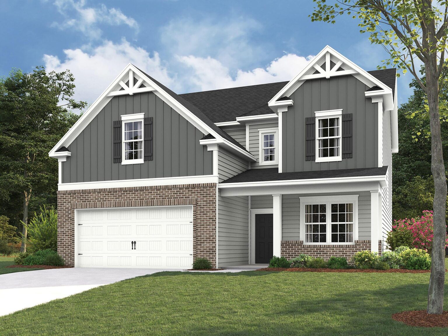 The Bradbury includes spaces for life today, including a first-floor Flex room (home office, formal dining, etc), Mudroom with space for a drop zone, and large walk-in kitchen pantry. The Bonus room above the garage offers extra space for gathering! When the weather changes, enjoy the optional gas fireplace in the Family room and the optional covered porch at the rear of the home. The Kitchen includes an island, and overlooks the Breakfast area and Family room. Upstairs is a spacious Premier Suite with optional tray ceiling, walk-in closet, and and 4-piece bath with large shower, double sink vanity and water closet. Both secondary bedrooms have walk-in closets. Laundry is conveniently located on the second floor. Stop by our Camber Woods neighborhood in Gastonia to tour our Bradbury model.
