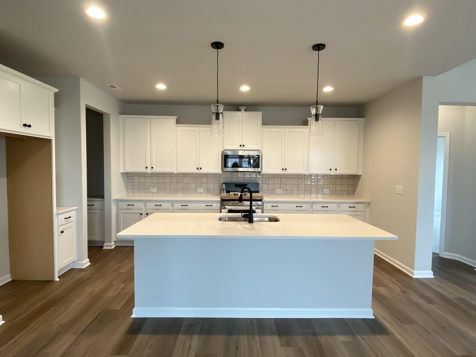 Beautiful 1.5-story home with most of the living space on the 1st floor. The exterior features Hardie® siding with brick accents, a carriage-style garage door, and a rear covered porch. Flex room offers space for a home office/play room. Kitchen features quartz counters, tile backsplash, white cabinets with trash pullout, stainless steel undermount sink, GE stainless steel appliances with gas range, microwave vented outside, & walk-in pantry. Butler’s pantry has base cabinets for more storage. Premier Suite includes a tray ceiling, walk-in closet, quartz counters, tiled floor, and large tiled shower with bench seat. Spacious Family room features a vaulted ceiling and gas fireplace with niche. Mudroom drop zone included! The second floor has a Rec Room, guest bed & full bath. Home has plenty of storage options and energy-saving features, such as a tankless gas hot water heater, attic tent for pull-down stairs, and radiant barrier sheathing. LVP floors throughout most of the first floor, with oak treads on the stairs. Community pool, clubhouse, tot lot, and dog park! Only 2 miles from downtown Mooresville.
