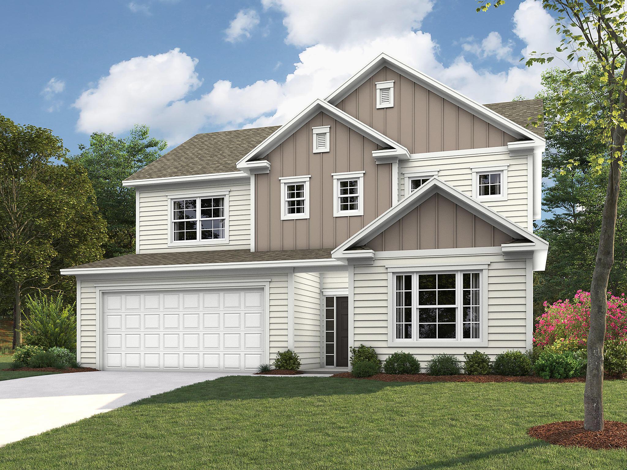 A smart use of space means the Madison plan provides plenty of options for a family to spread out in, from the loft and flex room, to the 4 bedrooms. Off the foyer is a guest bedroom with vaulted ceiling, and a Flex room where you can add French doors for a private space. Add a drop zone in the Mudroom for every day convenience. The kitchen includes a pantry closet and island, plus an L-shaped layout. The whole back of the home is a large, open layout, with the kitchen, dining and family room flowing together. The rear patio can be changed to a covered porch as well. Upstairs, a spacious loft greets you at the top of the steps. 2 bedrooms share a bathroom, plus there is a laundry room and the Premier Suite. This space enjoys two walk-in closets, a large shower, dual sinks, and a water closet. *The garage bumpout option is not available in this community. Tour our Madison model home at Camellia Gardens in Harrisburg.