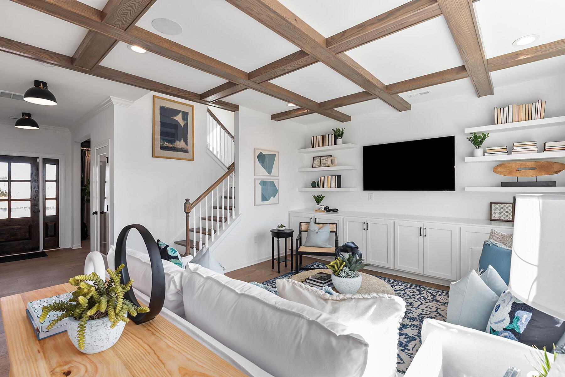 The Bradbury includes spaces for life today, including a first-floor Flex room (home office, formal dining, etc), Mudroom with space for a drop zone, and large walk-in kitchen pantry. The Bonus room above the garage offers extra space for gathering! When the weather changes, enjoy the optional gas fireplace in the Family room and the optional covered porch at the rear of the home. The Kitchen includes an island, and overlooks the Breakfast area and Family room. Upstairs is a spacious Premier Suite with optional tray ceiling, walk-in closet, and and 4-piece bath with large shower, double sink vanity and water closet. Both secondary bedrooms have walk-in closets. Laundry is conveniently located on the second floor. Stop by our Camber Woods neighborhood in Gastonia, NC to tour our Bradbury model home.