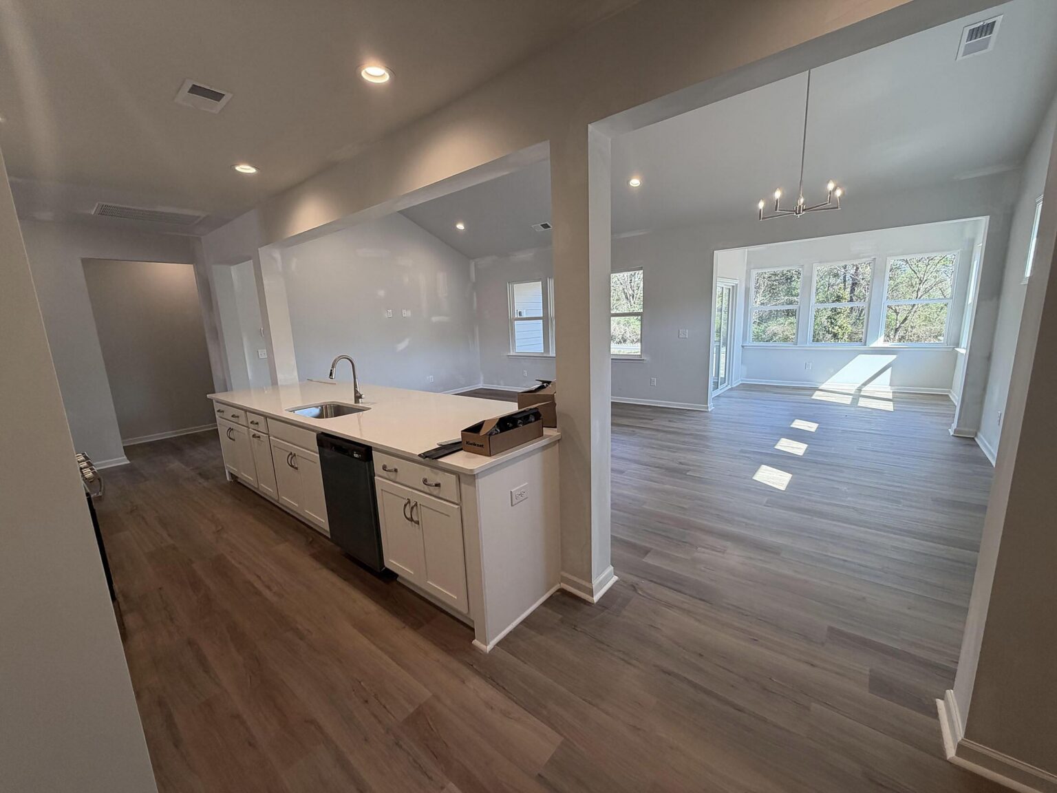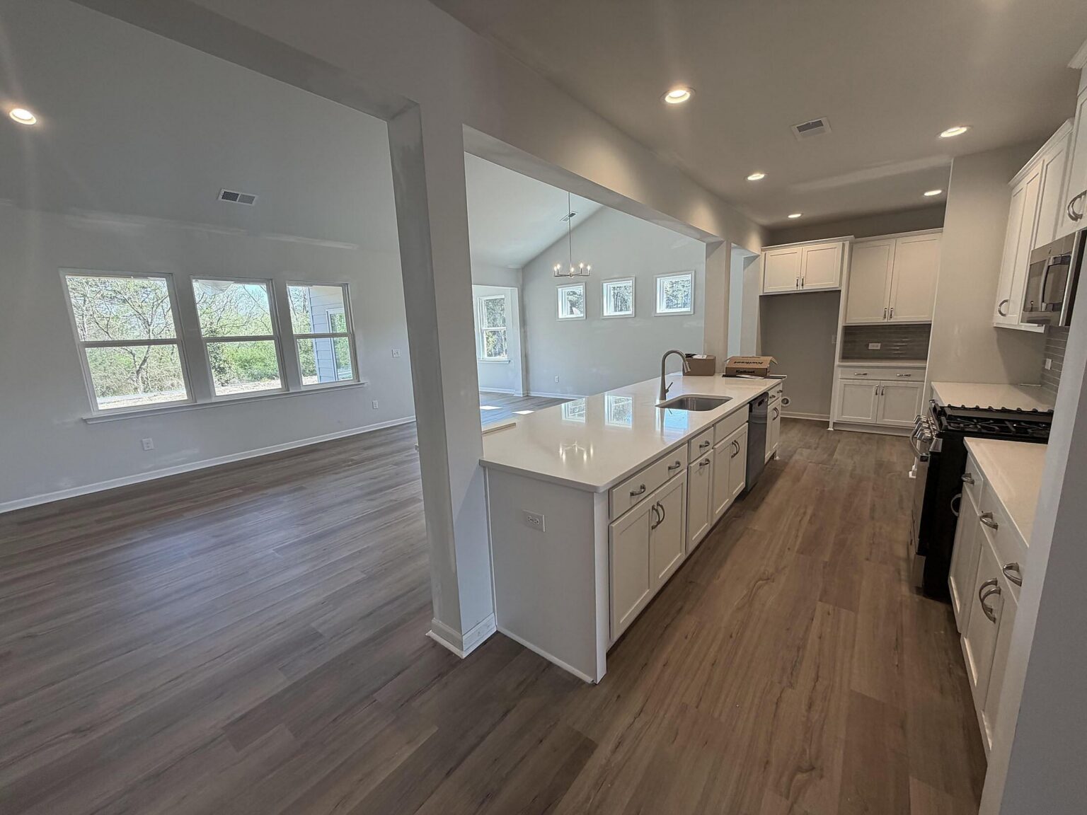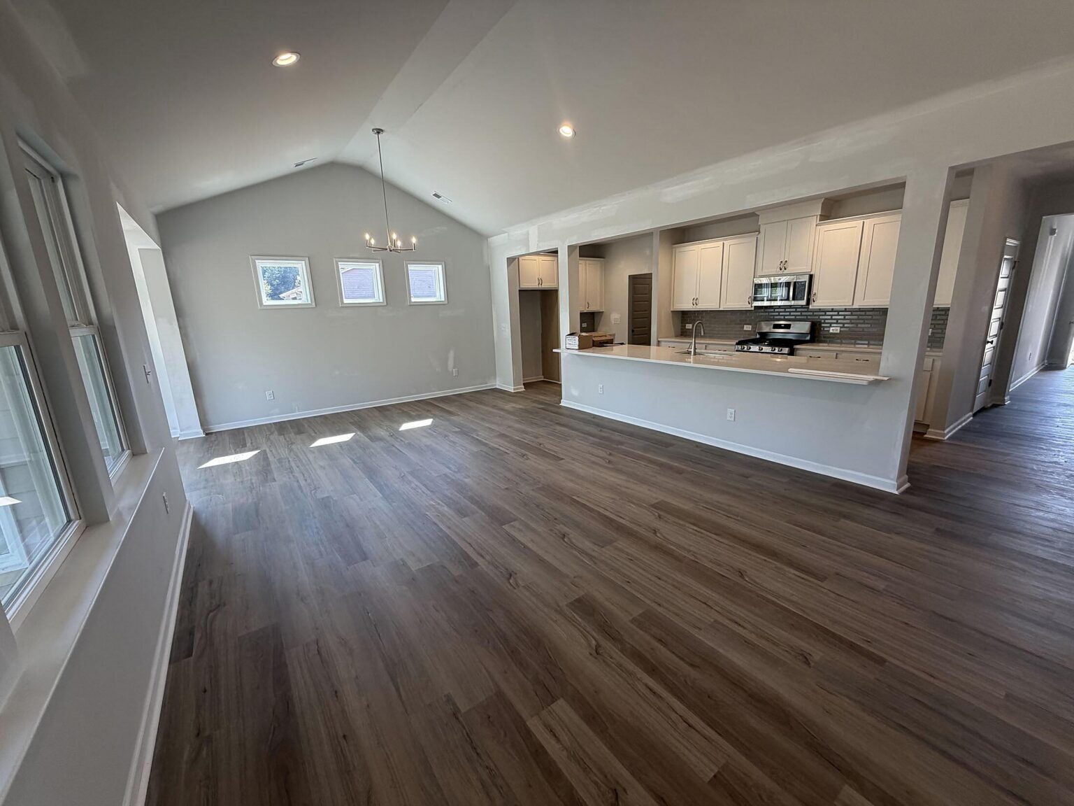 Enjoy open-concept 1-story living in Pendleton, SC. This new home is packed with gorgeous details and spacious rooms and is minutes from downtown Pendleton, with easy access to Clemson, Anderson. and I-85. There are 9' ceilings throughout, with a tray ceiling in the foyer, and a vaulted ceiling in the main living space. Off the foyer are two bedrooms and a full bath. The Kitchen overlooks the breakfast and family rooms with a vaulted ceiling. The kitchen features quartz counters, mosaic tile backsplash, Moen Sleek stainless steel faucet, painted cabinets, soft-close doors and drawers, double trash pullout, and GE stainless steel appliances with a gas range and a microwave vented outside. Tucked off the kitchen is a mudroom with a pantry and built-in drop zone, plus the spacious laundry room. At the back of the home is a cozy sunroom wrapped in windows, which leads to a rear covered porch. The Primary Suite includes a walk-in closet and bathroom with large tiled shower with semi-frameless glass, painted cabinets, quartz counters, double-sink vanity, water closet, and tiled floors. LVP flooring is throughout the main living areas, secondary bathroom, and laundry, with carpet in the bedrooms. The charming Craftsman-style exterior includes Hardie® cement siding with shake and stone accents, plus 25-year shingles. Save on energy costs with the tankless gas hot water heater, radiant barrier sheathing, and an attic tent for the pull-down stairs. Community pool opens this Summer, and there will be natural walking trails.