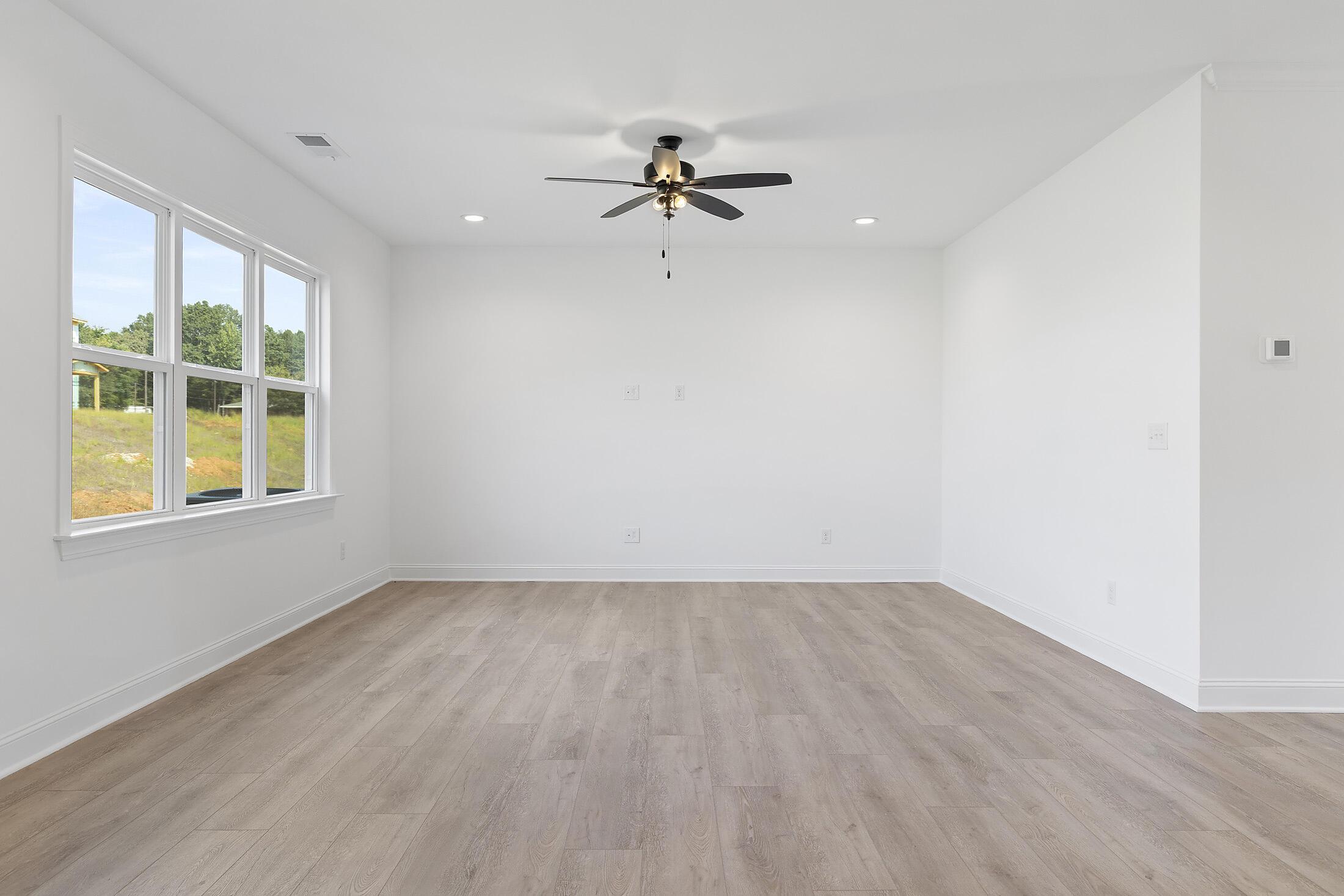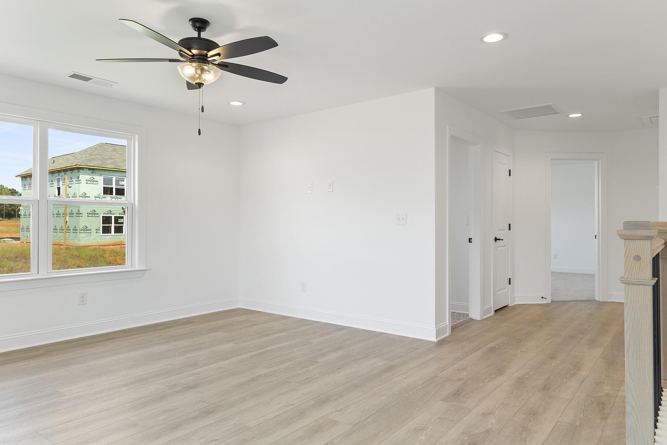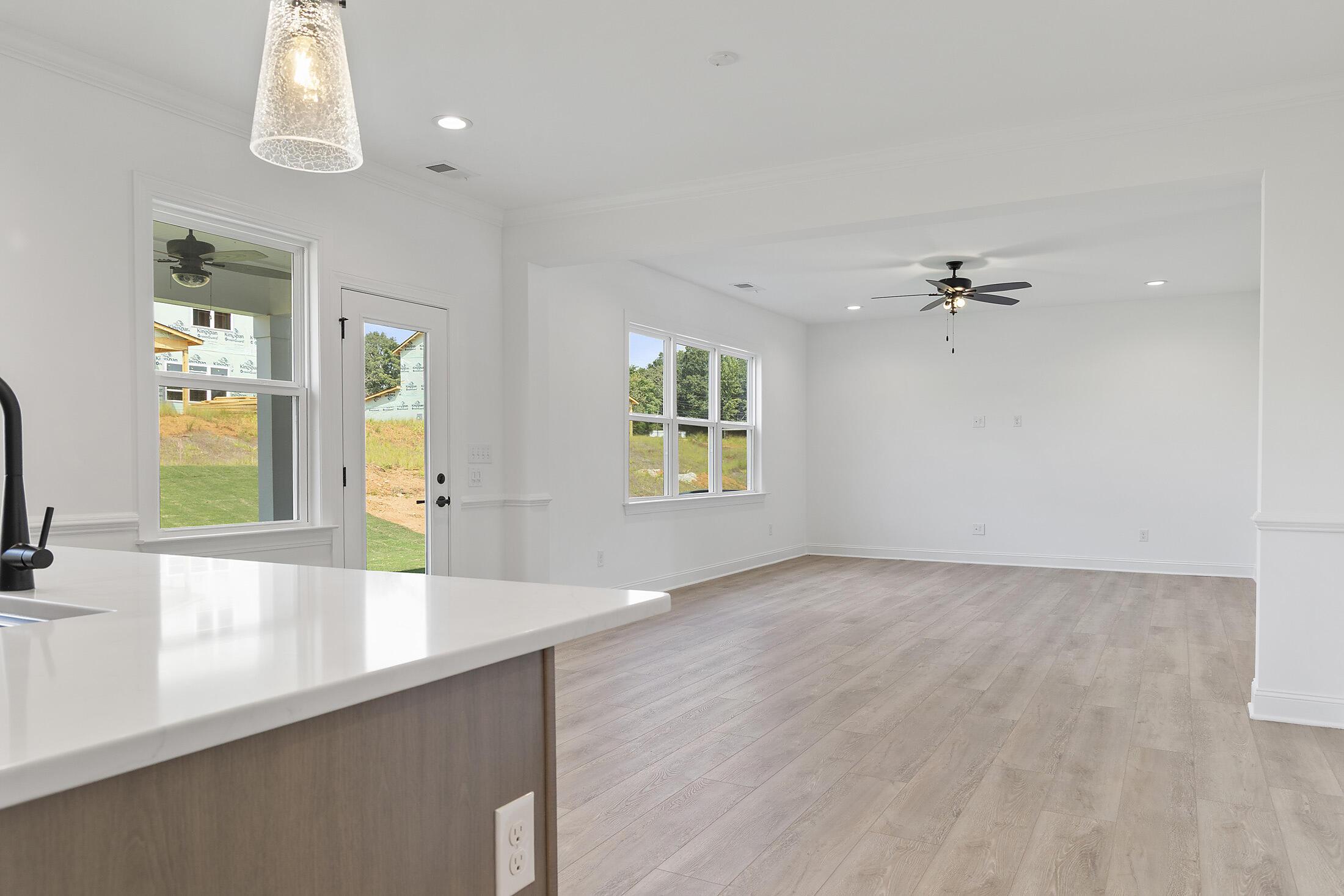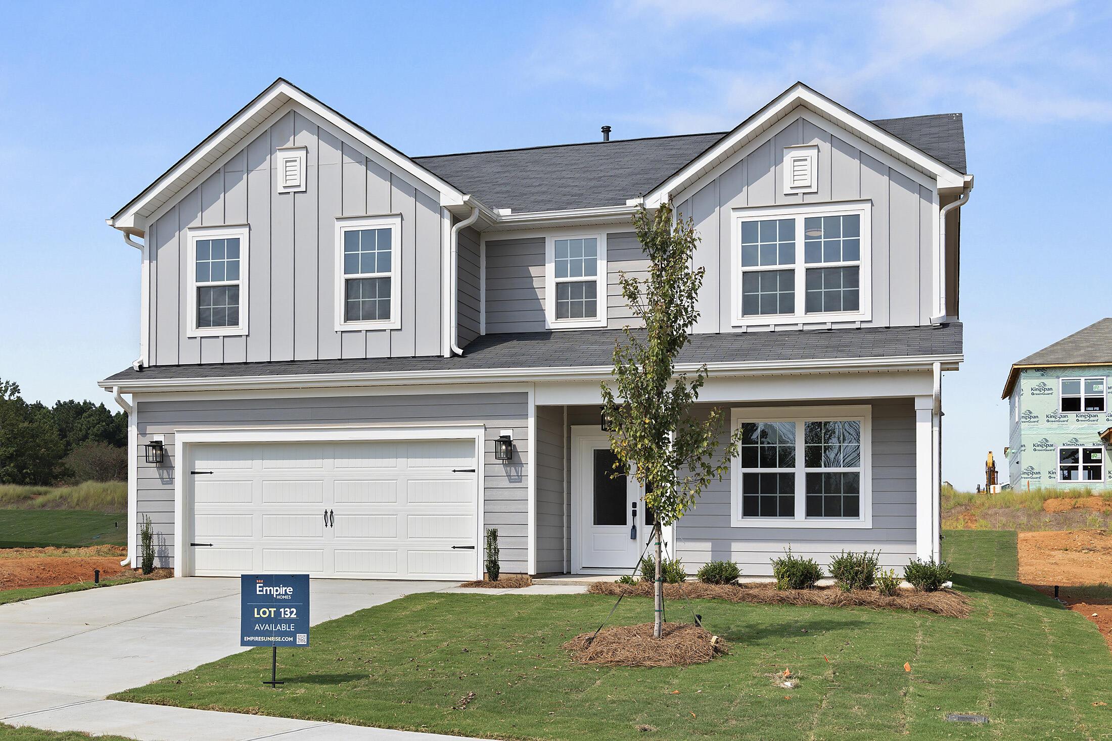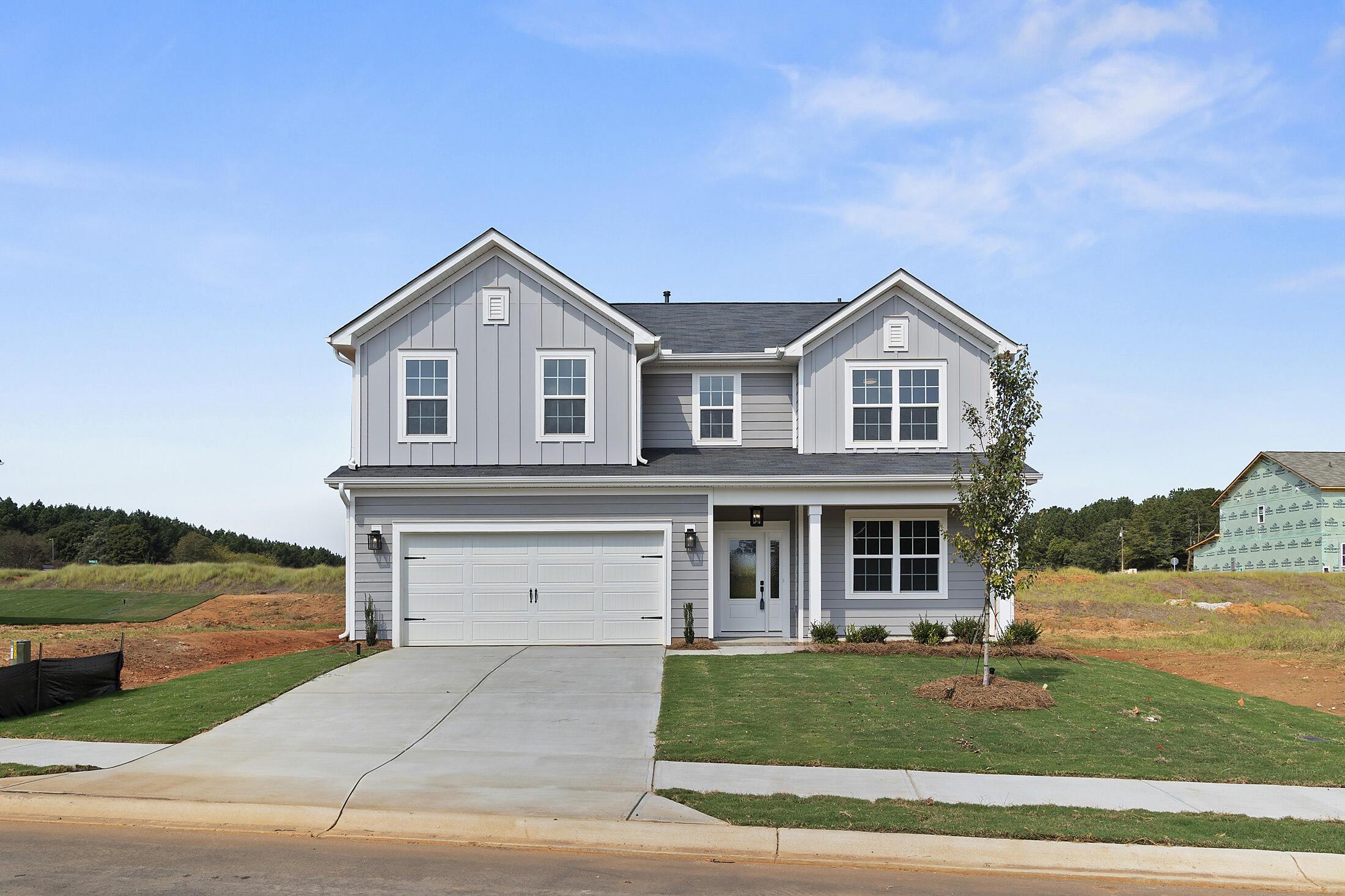 Welcome to a home where every inch of space has been thoughtfully planned for how we live today. You are greeted by a covered front porch and Hardie® siding with board and batten accents. Inside, a guest bedroom and full bath with walk-in shower is located off the foyer, great for guests or a home office/play room. The closet under the stairs has been extended for maximum storage space. Nice open concept layout, with your kitchen, dining and family rooms flowing together. The Kitchen features quartz counters, tile backsplash, 42″ cabinets with a hidden double trash pullout cabinet, GE Cafe appliances with a gas range, and large undermount stainless sink with Moen faucet, plus there is a nice-sized walk-in pantry. Dining area has a long niche, great for adding a buffet table, cabinets, or floating shelves for additional storage. The Mudroom has a built-in drop zone for life’s essentials. Rear covered porch lets you take advantage of the beautiful Carolina weather! Upstairs features a spacious Loft and Laundry room. The Premier Suite has two walk-in closets and bathroom with quartz counter, large tiled shower with built-in shampoo niche and semi-frameless glass, tiled floor, and separate water closet. Two secondary bedrooms share a hall bathroom. LVP floors flow throughout the main living spaces on the first floor, plus the Loft, with tile in all baths and laundry. The stairs have oak treads with modern iron balusters. Thoughtful upgrades include 5″ baseboards throughout, front door side lights, and a carriage-style garage door. Pool and walking trail amenities planned; pool is under construction! Energy-saving features include 25-year shingles, a tankless gas hot water heater, attic tent for pull-down stairs, and radiant barrier sheathing.