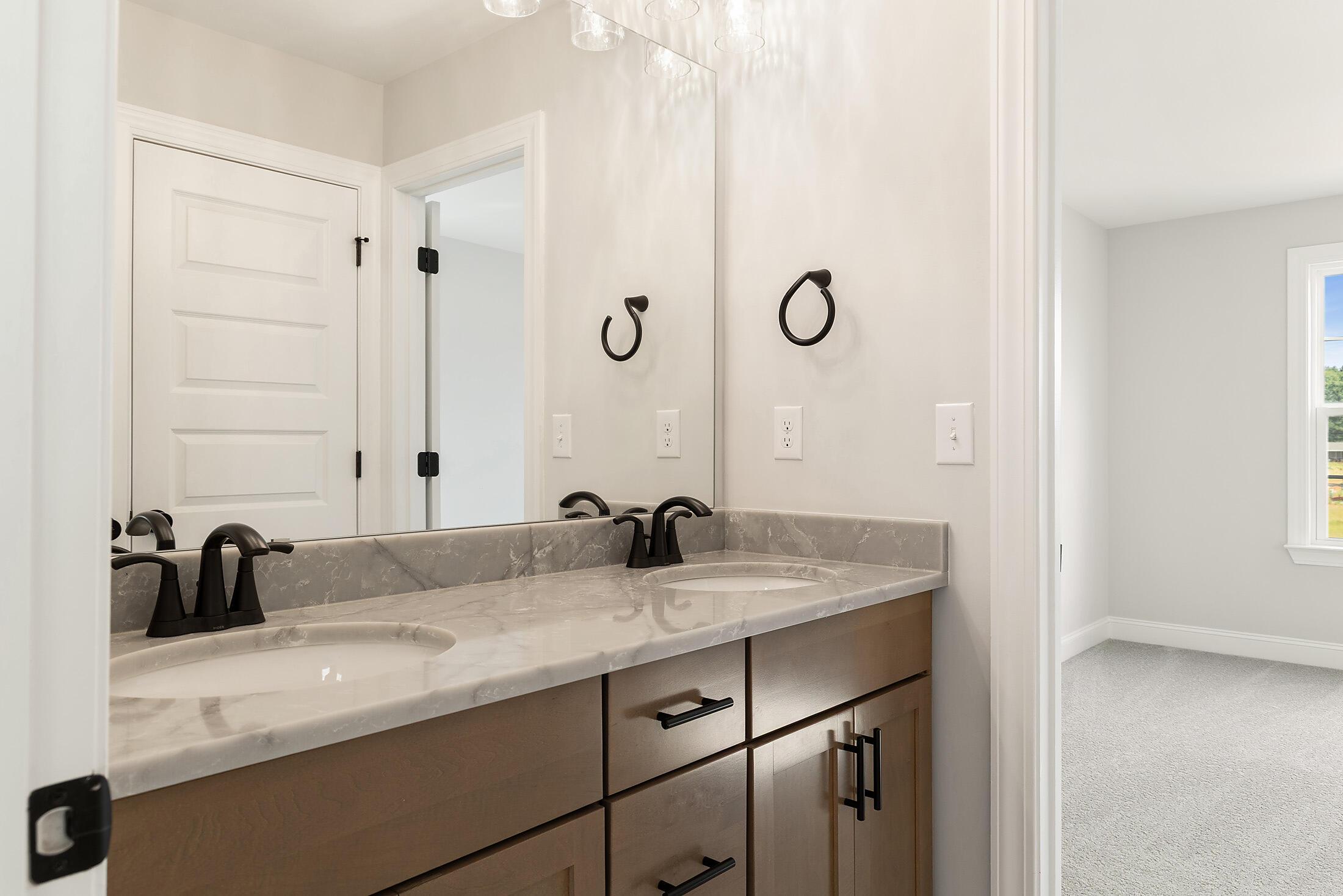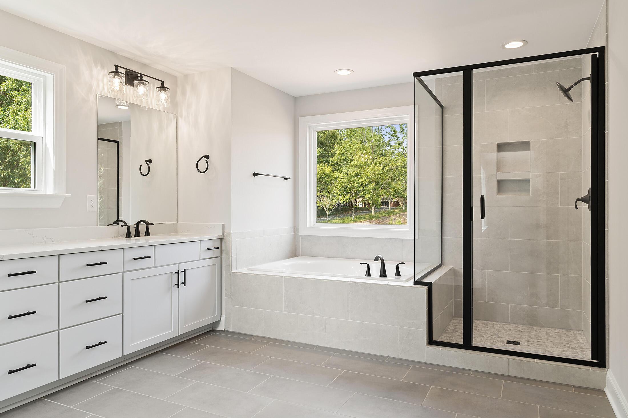 This is a lovely, spacious home located walking distance from the pool amenity, which is under construction. Enjoy the view of the lush, wooded community perimeter from the large rear covered porch! The first floor offers a guest bedroom and full bath with walk-in shower, plus a Flex room with French doors. Enjoy an open plan at the back of the home, with the Family Room, Breakfast area and Kitchen flowing together. The Family Room has a gas fireplace flanked by cabinets. The Breakfast room is wrapped in windows. The highlight of the space is the kitchen, with a large island with grey painted cabinets, 42″ white perimeter cabinets, quartz counters, tile backsplash, double trash pullout, a handy drawer stack at the cooktop, and GE Profile split cooking appliances with a 36″ gas cooktop and an extraction hood vented outside. Behind the kitchen is a mudroom with built-in drop zone plus a walk-in pantry. Upstairs, you’ll find a large Rec Room and Laundry room with sink and tiled floor. Two bedrooms share a Jack & Jill bath. A spacious Premier Suite boasts an oversized walk-in closet and bathroom with soaking tub and separate tiled shower with quartz counters and tiled floor. Secondary baths all have quartz counters and tiled floors. Low-maintenance LVP floors throughout the main living spaces on the first floor plus the second floor hallway, with oak treads on the stairs. Enjoy modern touches throughout, such as matte black plumbing, hardware and lighting, and iron balusters on the stairs. Planned pool and walking trail amenities! Energy-saving features include 25-year shingles, tankless gas hot water heater, attic tent for pull-down stairs, and radiant barrier sheathing. 2 miles from Pendleton High.
