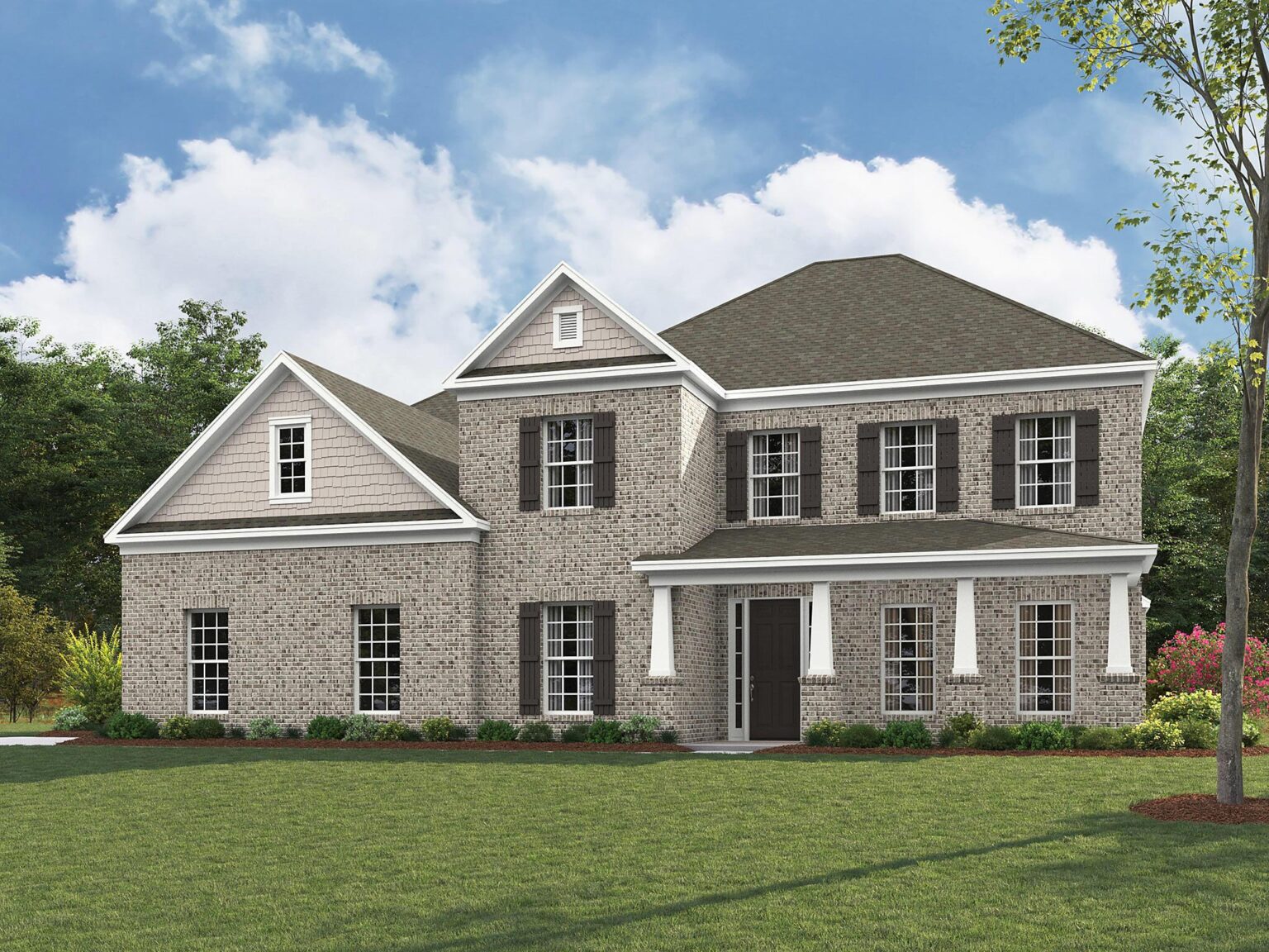Elegant details and large gathering spaces make the Alpine a great home for family and friends. Archways lead from the foyer, past the Dining room, Study, and staircase, and on to the expansive Family/Morning room. This beautiful room features a vaulted ceiling, fireplace in the Family room, and the option to add one in the Morning room. The abundance of windows creates an open, airy feel, full of natural light. The open kitchen includes a built-in bar and overlooks this space, which is a fabulous area for gatherings, large and small. A convenient Butler’s Pantry connects the Dining room to the Kitchen. Take entertaining outdoors by adding a large covered porch off the Morning room. The first floor features a Premier Suite with two walk-in closets, two vanities, soaking tub and shower. Off the garage entry is a generous Hobby/Laundry room. Upstairs, 2 bedrooms share a Jack & Jill bath, and another secondary bedroom has an adjoining full bath. The Teen room overlooks the Morning room and can have a built-in workstation with desks. The Bonus room includes unfinished storage; you may extend the Bonus room or add a large Guest suite. Stop by River Reserve to tour our Alpine model home. Basement options available.