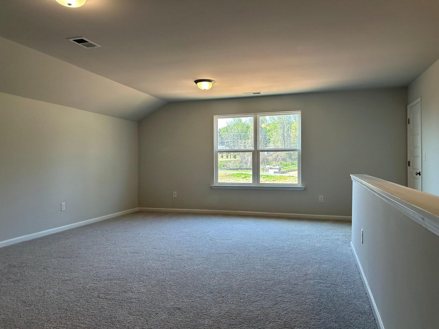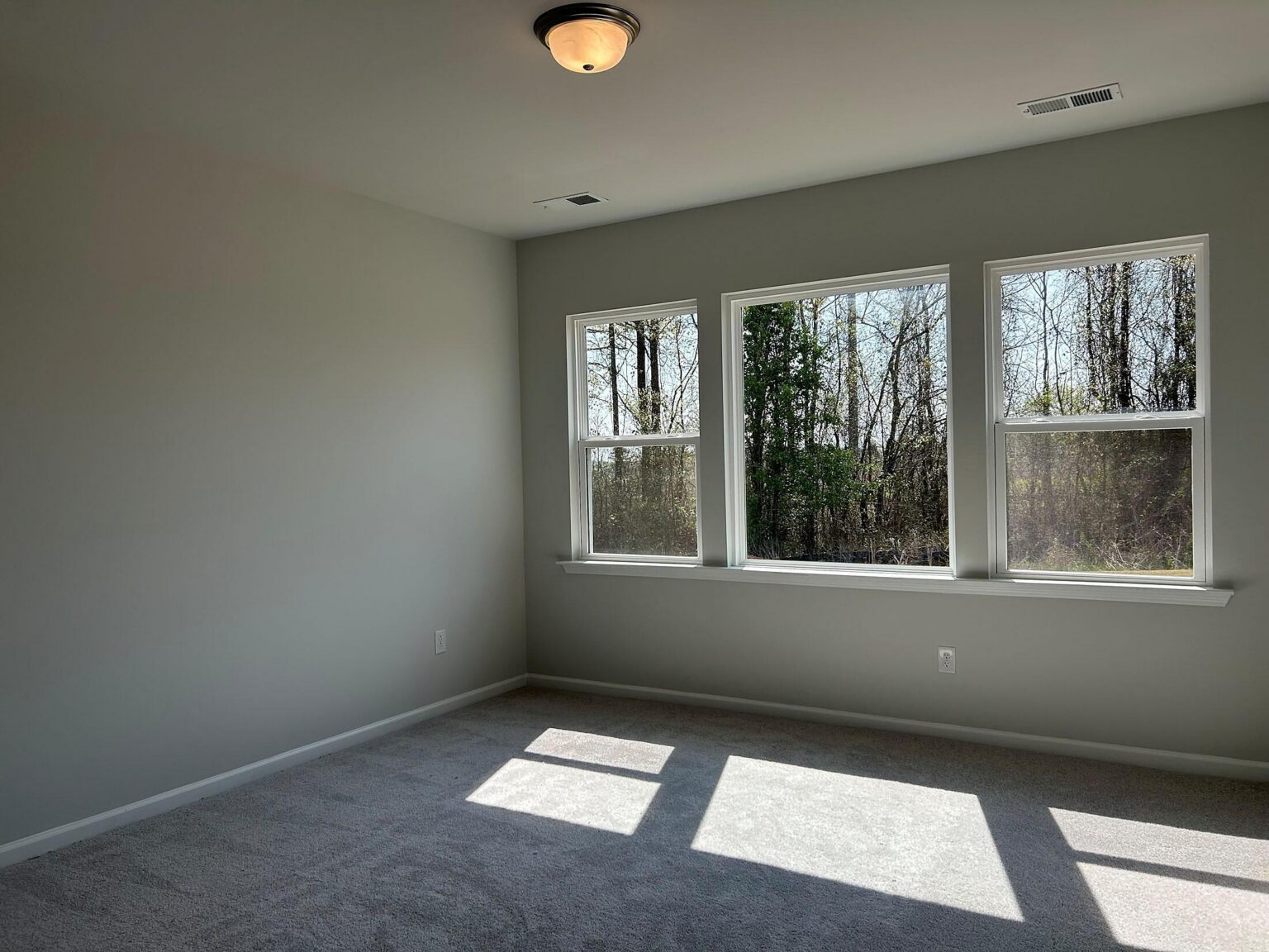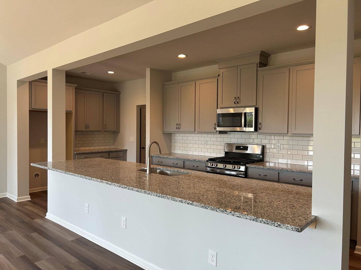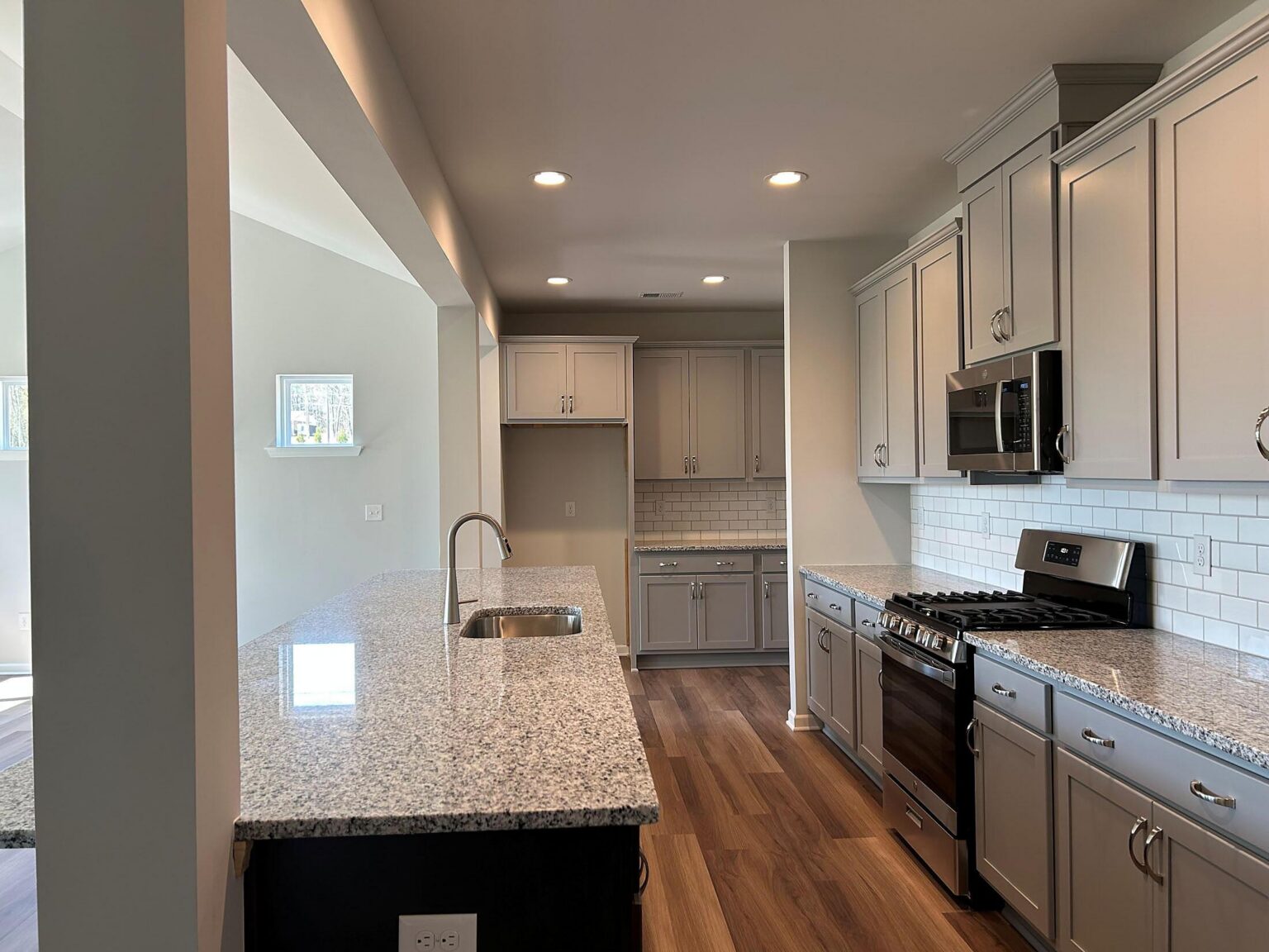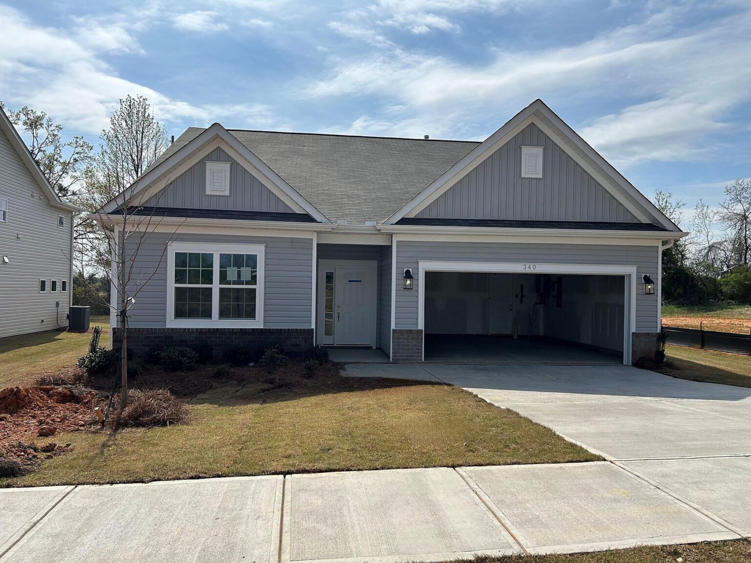 Welcome to main-floor living in historic Inman, SC, minutes from Spartanburg. This 1.5-story home backs up to trees for privacy, and offers most of your living space on the first floor. Fall in love with the vaulted ceiling in the family/dining space, which flows immediately into the nicely-appointed Kitchen. This space features 42" cabinets with crown which are painted on the perimeter and stained at the long island, soft-close doors, double trash pullout, granite counters, 3" x 6" tile backsplash, Moen Sleek stainless faucet, and GE stainless steel appliances with a gas range. Tucked behind the kitchen is a mudroom with pantry, closet, space for a drop zone, and a large laundry room. Enjoy the fabulous Carolina weather from your rear covered porch! The convenient first-floor Primary Suite includes a walk-in closet, double sink vanity with quartz counter and charcoal-stained cabinets, a large tiled shower, and 12" x 24" floor tiles. Two bedrooms and a full bath with walk-in shower are off the foyer, which features a tray ceiling. Upstairs, find a Loft, full bath, and fourth bedroom with walk-in closet and study nook. Secondary baths have quartz counters. Low-maintenance warm-toned LVP flooring is throughout most of the first floor and upstairs full bath, with stained oak treads on the stairs. Other features of this home include 9' ceilings on the first floor, a tankless hot water heater, and energy-saving radiant barrier sheathing. Community includes a tot lot and gazebo with fireplace for gatherings.