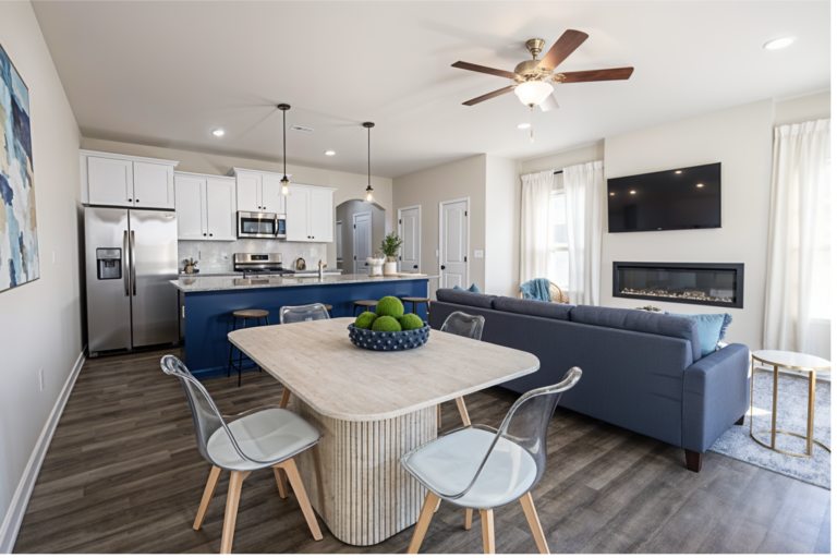 At Abershire, every home is designed with real life in mind. Open-concept main floors create an easy flow between the kitchen, dining, and living areas—perfect for both quiet nights in and casual get-togethers. Modern kitchens feature Shaker-style cabinetry in designer color options, white granite countertops, stainless steel appliances, and generous storage. Upstairs, spacious bedrooms provide flexibility for family, guests, or a home office, while owner’s suites offer a private retreat with walk-in closets and spa-inspired baths. Select plans include a versatile loft, adding even more room to live your way.
