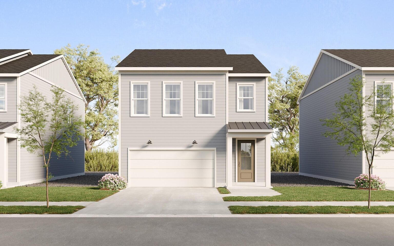 The Zinnia features 1,954 square feet of elegant living space. The open first floor includes a chef-inspired kitchen, dining room, and family area opening to the rear patio. Upstairs, the primary suite boasts dual walk-in closets and a luxurious ensuite bath. Two additional bedrooms, a full bath, laundry room, and flex space complete the upper level, offering a perfect balance between function and comfort.