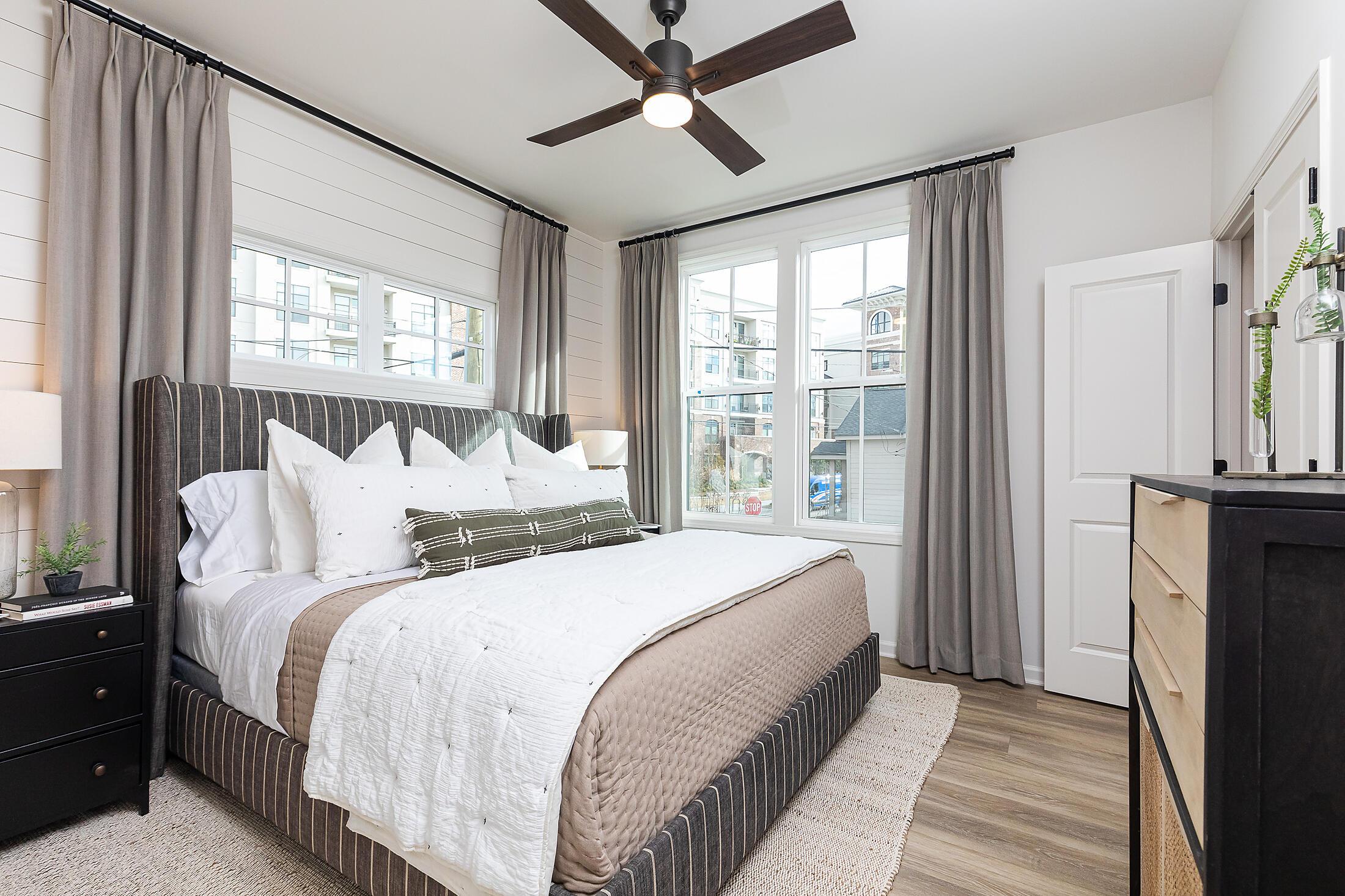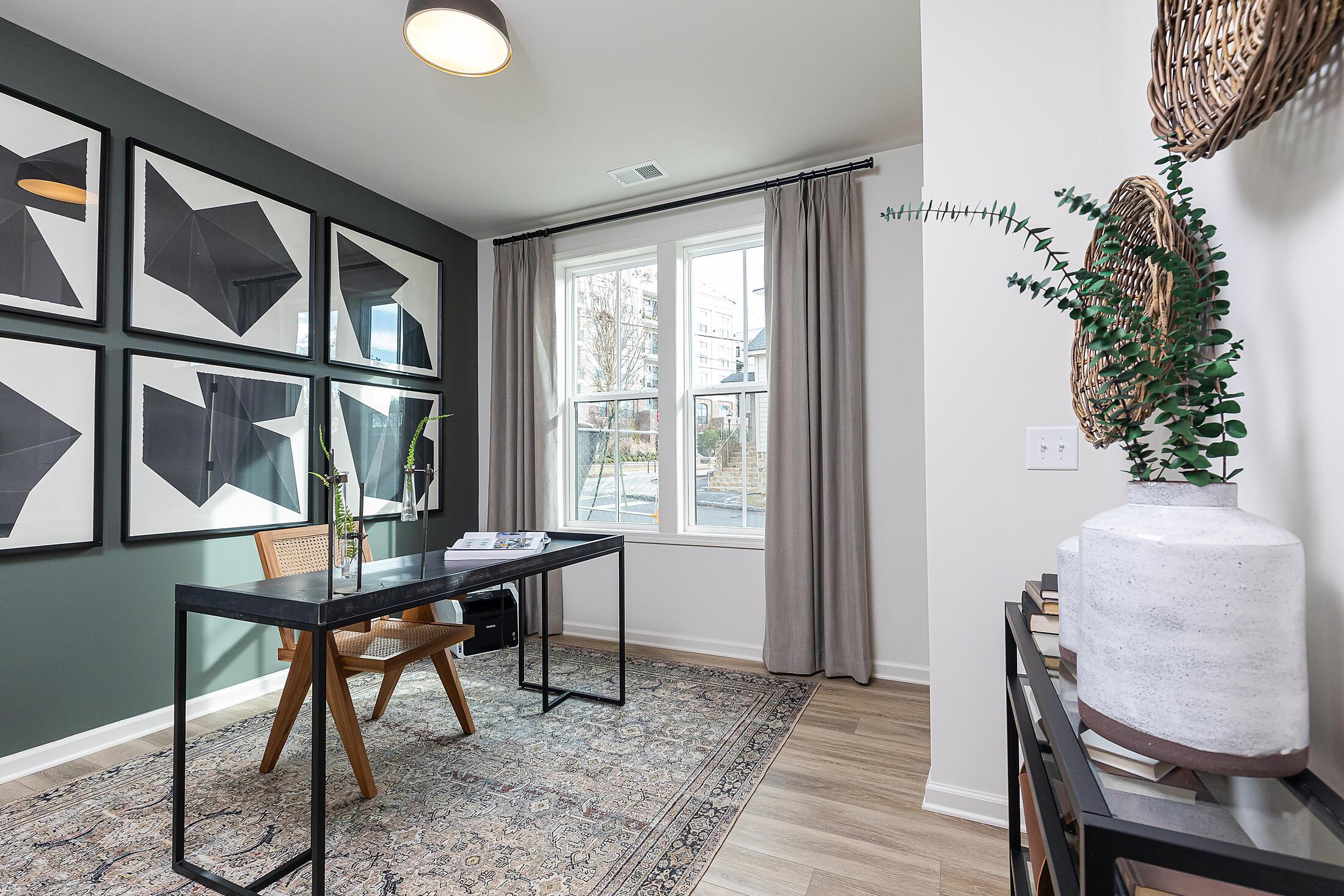 The Welkin floor plan showcases our exclusive TOP-FLOOR LIVING™, designed with premium features to elevate your living experience. Enjoy the grandeur of vaulted ceilings and the brilliance of oversized casement windows that flood the space with natural light and offer stunning city views in select units. The gourmet kitchen, equipped with an oversized island and luxurious quartz countertops, seamlessly extends into the top-floor living areas, opening onto a covered loggia perfect for outdoor entertaining. Elegant hardwood stair treads and durable hard surface flooring grace the main living spaces, creating a cohesive and stylish environment. The middle floor is dedicated to comfort, featuring two spacious bedrooms and two well-appointed baths, while the first floor provides a flex room and a convenient garage.