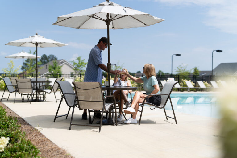 Chastain brings the past into the present with a refreshingly unpolished take. More than half the land here is intentionally left untouched—meaning every trail winds through old-growth trees, native wildflowers, and the kind of quiet you just can’t get downtown. A repurposed open-air barn doubles as an event space, while the grassy paddock invites neighborly hangs and impromptu games of tag. The farmhouse-style clubhouse—complete with a wraparound porch and pool—is as good for summer splashing as it is for sunset chats. And don’t miss “Corkspin,” Chastain’s very own pickleball wine club, where cabanas and cemented horseshoes prove leisure here has personality.