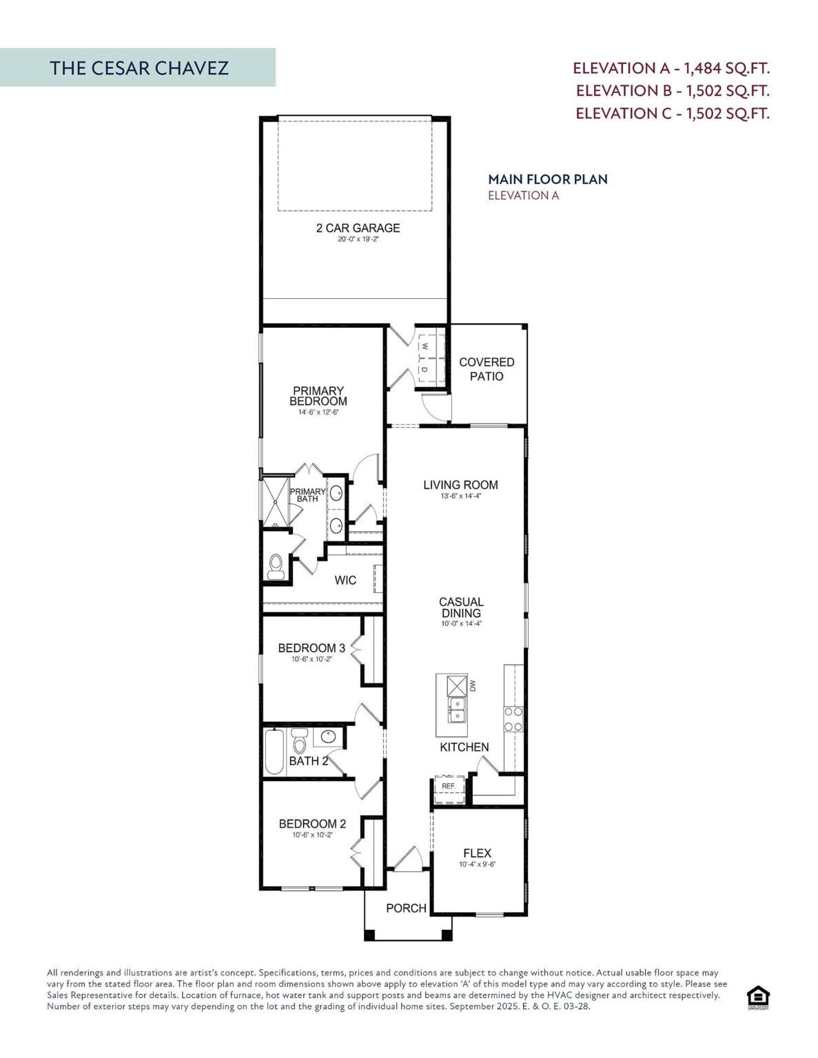 The Cesar Chavez floor plan offers 1,484 sq. ft. of well-designed, one-story living space that perfectly balances style and functionality. This home features three generously sized bedrooms and two full baths, making it ideal for families or those seeking extra space for guests or a home office. The open-concept layout seamlessly connects the kitchen, dining, and living areas, creating a warm and inviting space for gatherings and daily living. The primary suite boasts a private ensuite bathroom and a spacious walk-in closet for added convenience and luxury. A two-car garage provides ample storage and secure parking. With modern finishes and a smart, efficient layout, the Cesar Chavez floor plan is designed to meet your needs and exceed your expectations. It’s the perfect place to create lasting memories.